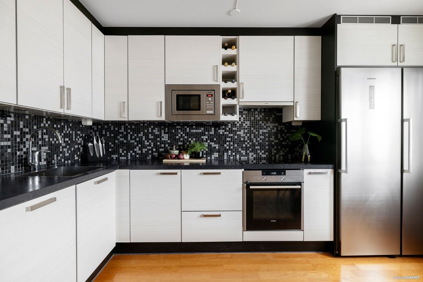 Från detta plan nås även bostadens insynsskyddade uteplats i bästa solläge. Uteplatsen har trädäck över hela ytan och erbjuder gott om plats för loungemöbler, matgrupp och sommarens alla stunder utomhus.