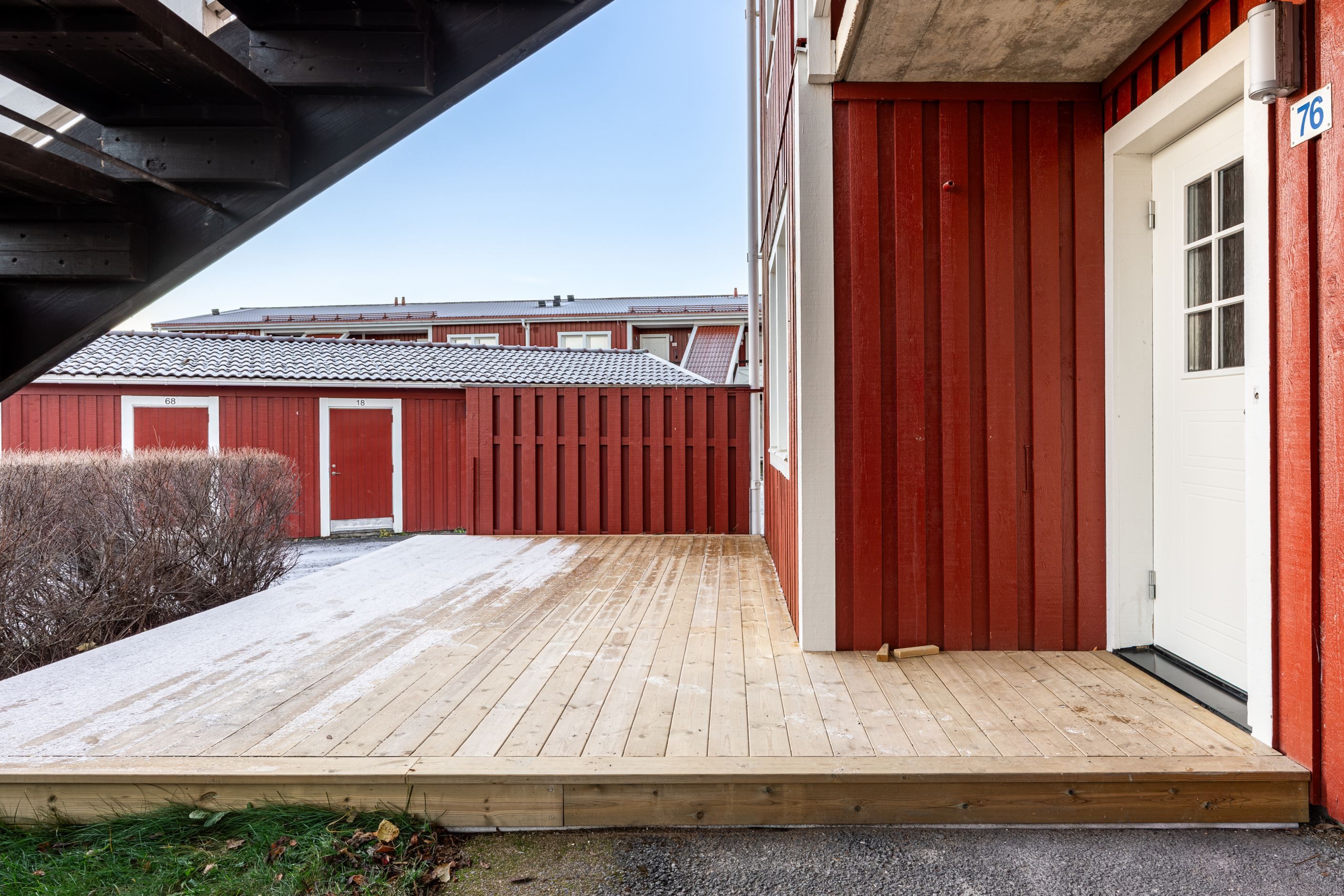 Läget på markplan ger en påtaglig huskänsla med smidig access och en naturlig närhet till utomhusmiljön. Med två uteplatser, varav en med soligt läge, blir detta en självklar del av vardagen och som skapar fina möjligheter för avkoppling, sociala stunder och härliga dagar med dessa två privata oaser precis utanför dörren.