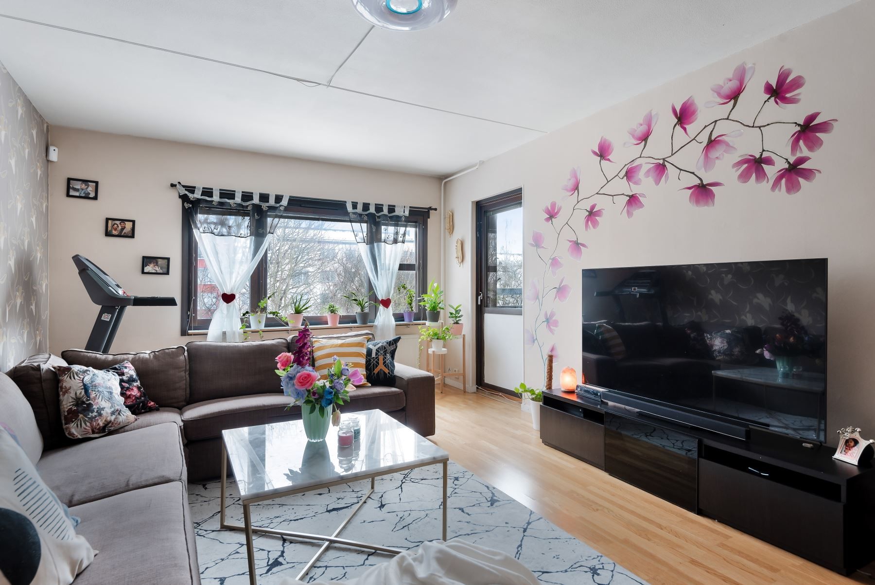 - Omtyckt planlösning med separat arbetskök och matsal som rymmer stora sällskap. Vardagsrum av större modell med härlig utsikt och invändigt ryms större möbelgrupper och möjlighet för matsalsmöbler även här. Helkaklat badrum med klinkergolv och tvättmaskin + torktumlare. Badrummet rymmer badkar och ett praktiskt vädringsfönster. 2 förråd/klädkammare finns i bostaden samt plats för garderober i sovrummen. Utöver bostadens härliga terrass finns även en entrébalkong på framsidan som kan möbleras med utemöbler eller nyttjas som uppställningsplats för cyklar eller barnvagn!