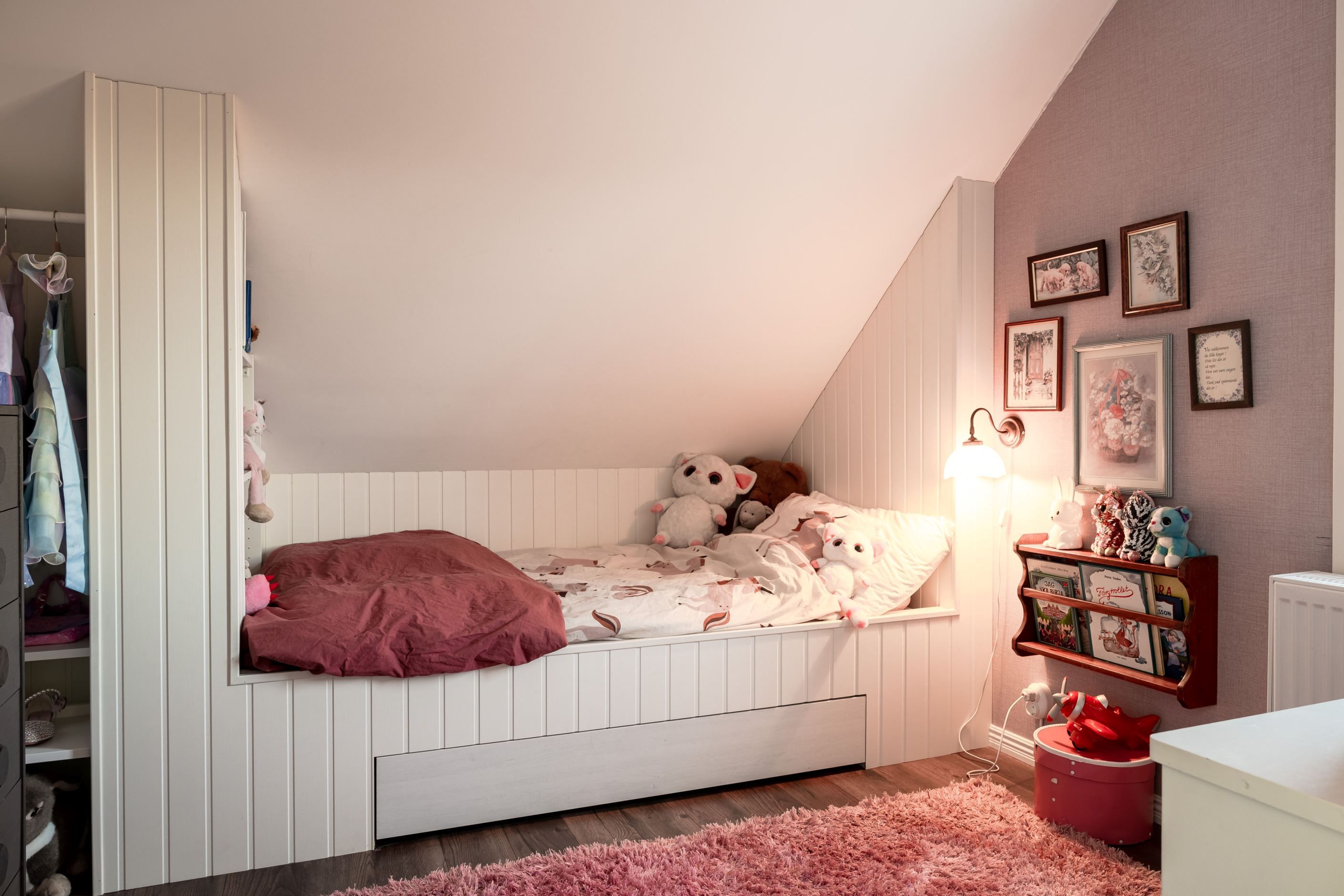 En trappa upp väntar den lugna familjevåningen med hela fyra sovrum, vilket gör att alla i familjen får sitt eget utrymme. Här finns även en praktisk walk-in-closet samt ett nyrenoverat badrum, vilket underlättar morgonrutinerna. Rummen är ljusa och väl tilltagna, med plats för både säng, skrivbord och förvaring – perfekt för både barnfamilj och den som arbetar hemifrån.