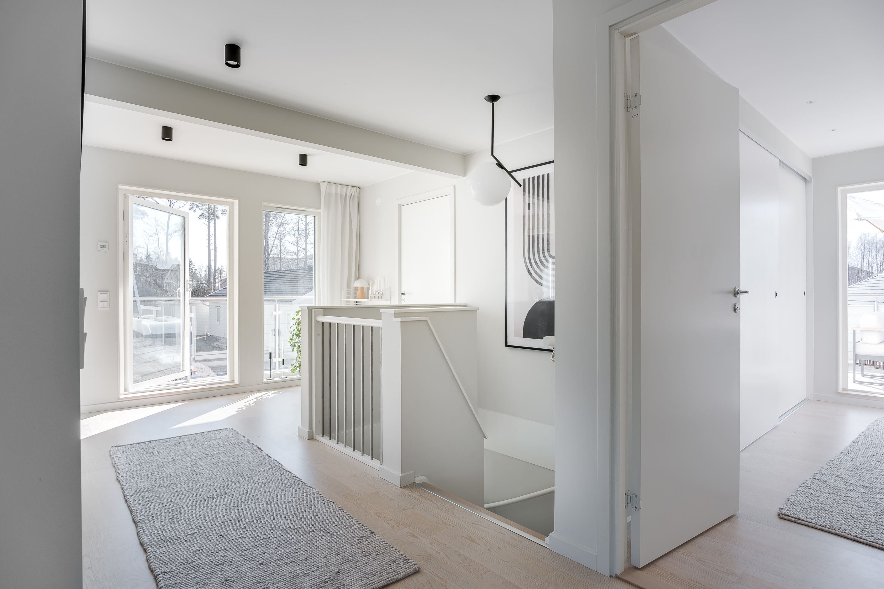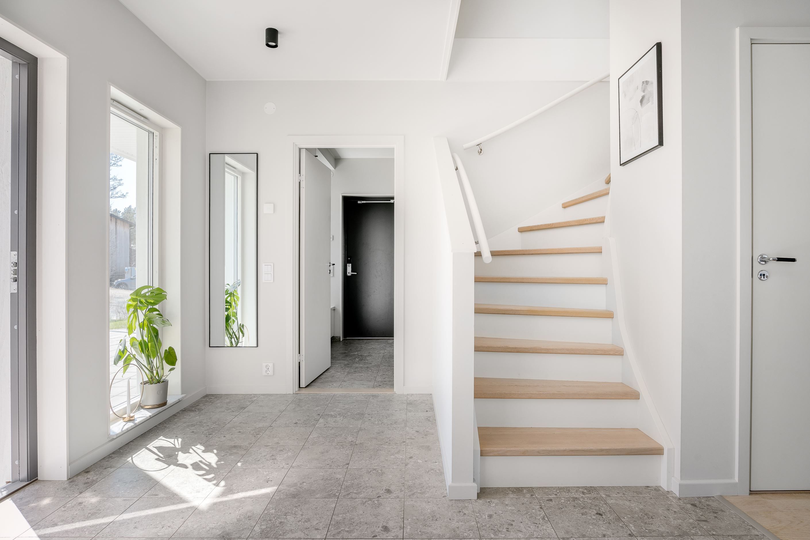 Här bor du i ett hus av modell Bymarken från Eksjöhus, med genomgående påkostade materialval och stilren design som möter funktion i perfekt balans. Redan i hallen möts du av ett härligt ljusinsläpp från stora fönsterpartier och en generös takhöjd om ca 2,6 meter på entréplan, vilket ger en luftig och inbjudande känsla.