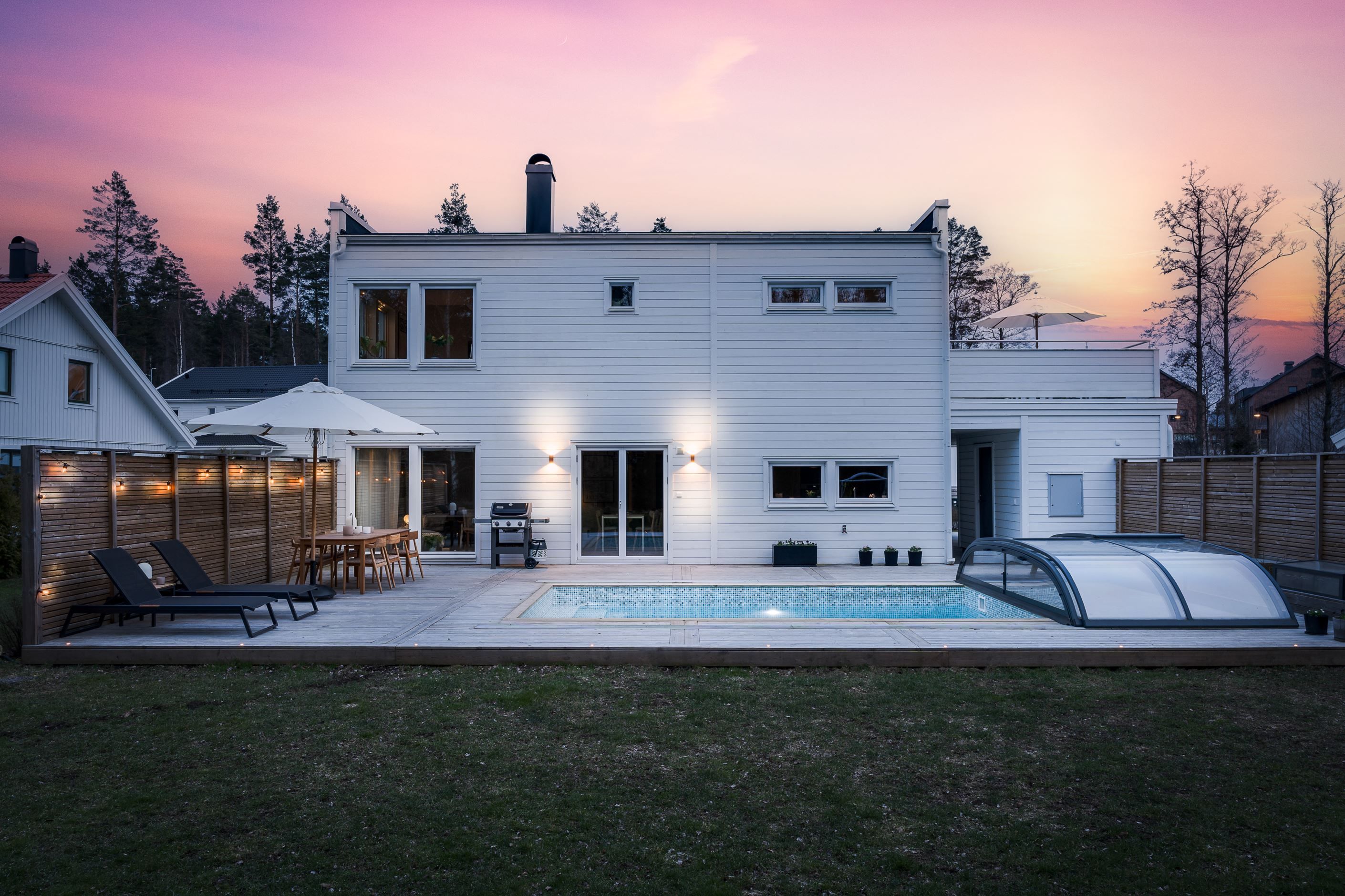 Modernt drömhem med pool, bergvärme och påkostade materialval