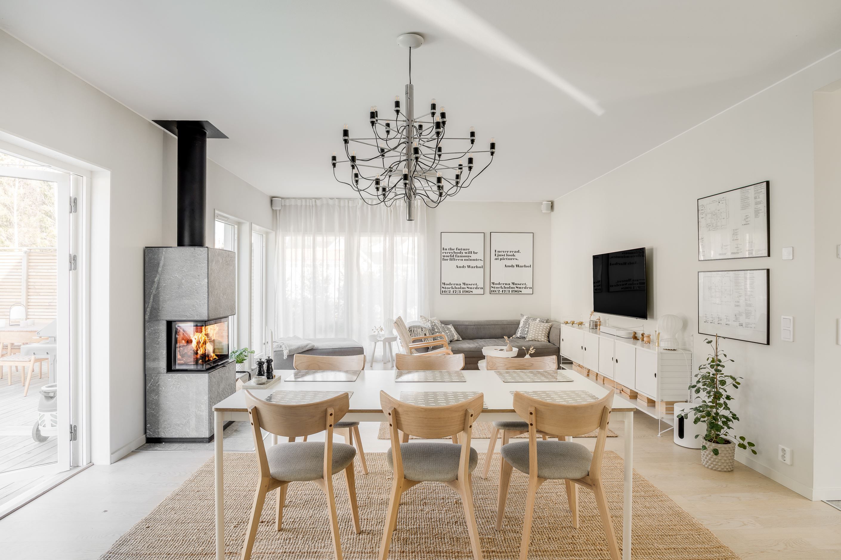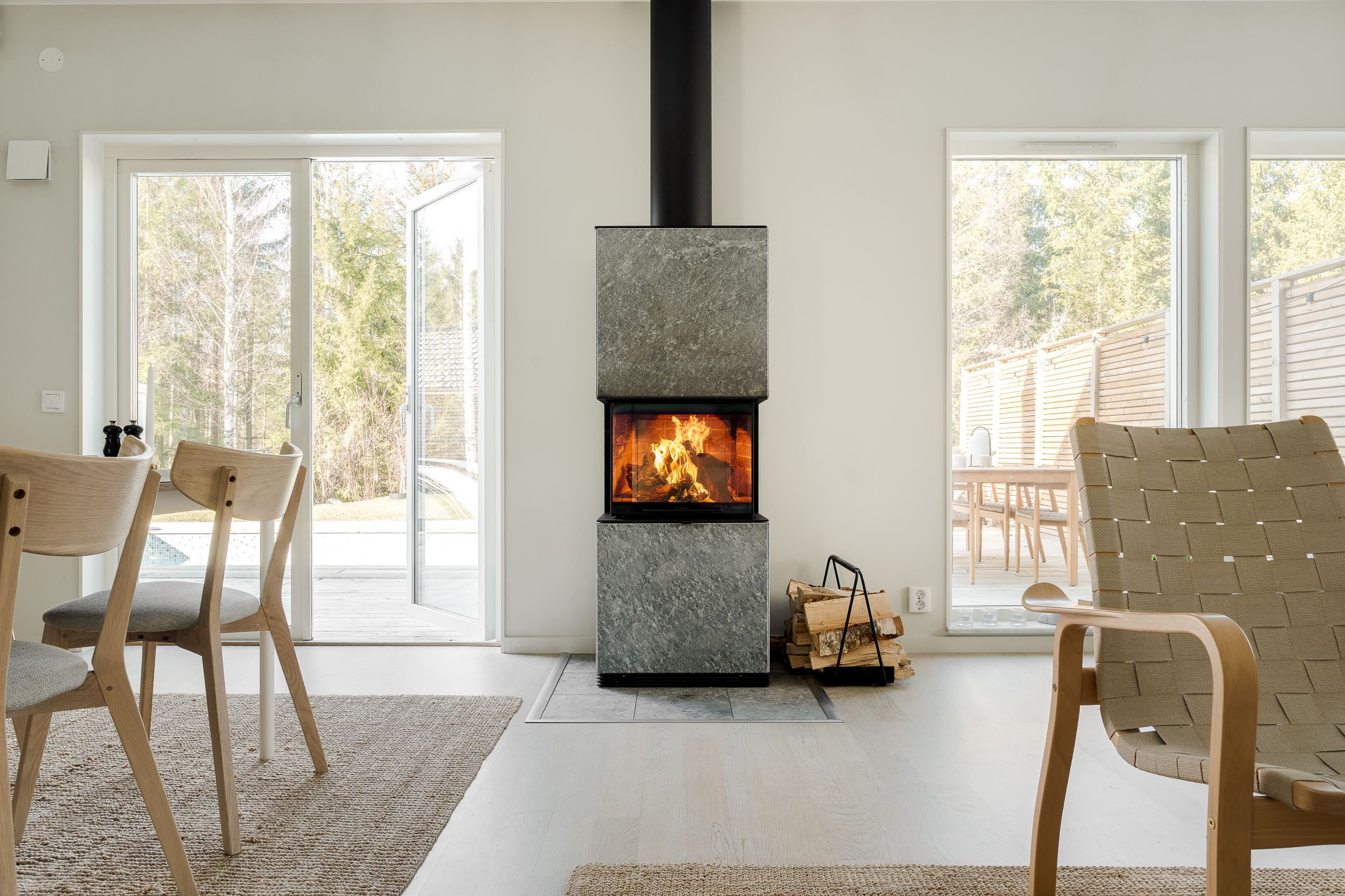 Bostaden erbjuder även en kamin från Contura i täljsten som bidrar med både värme och stämning under årets kallare månader.