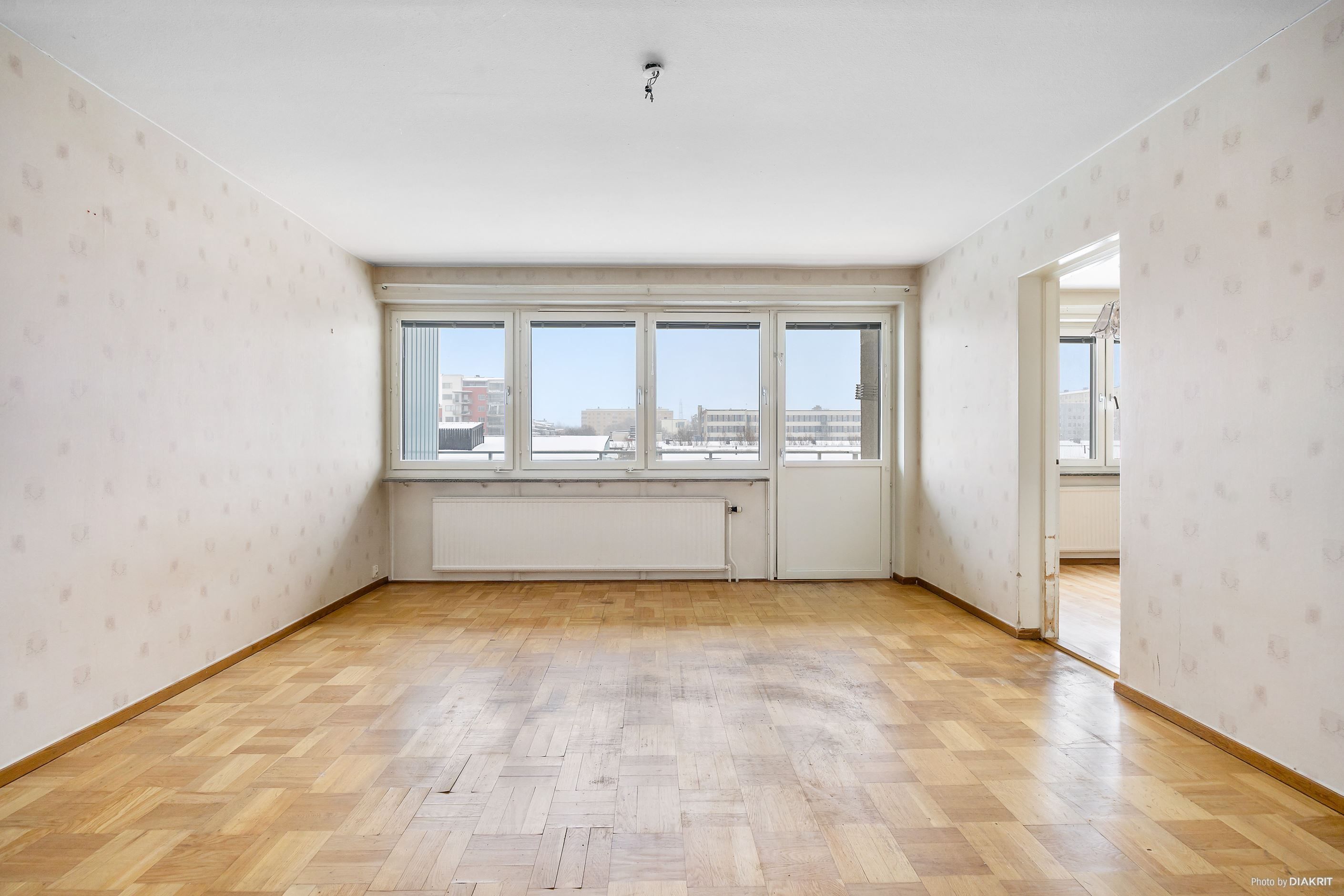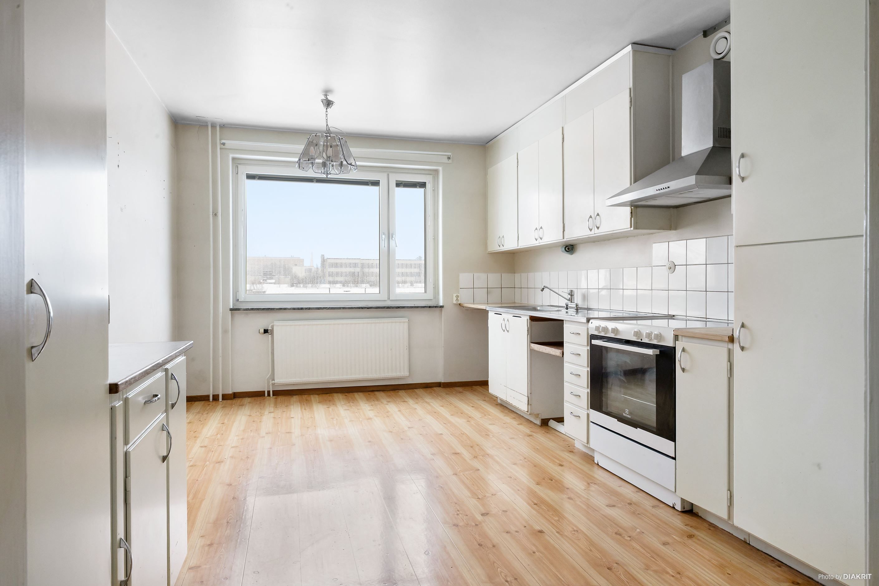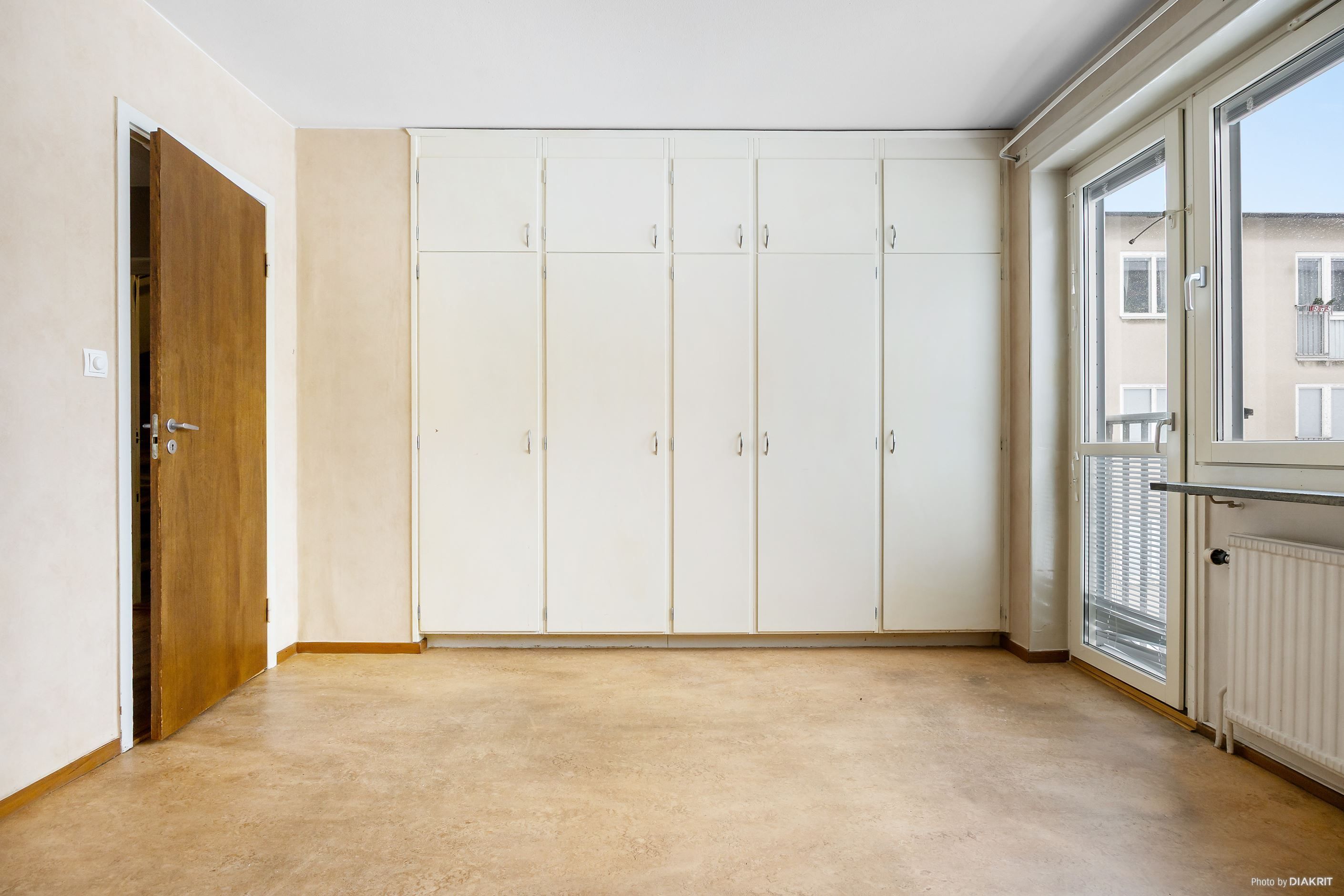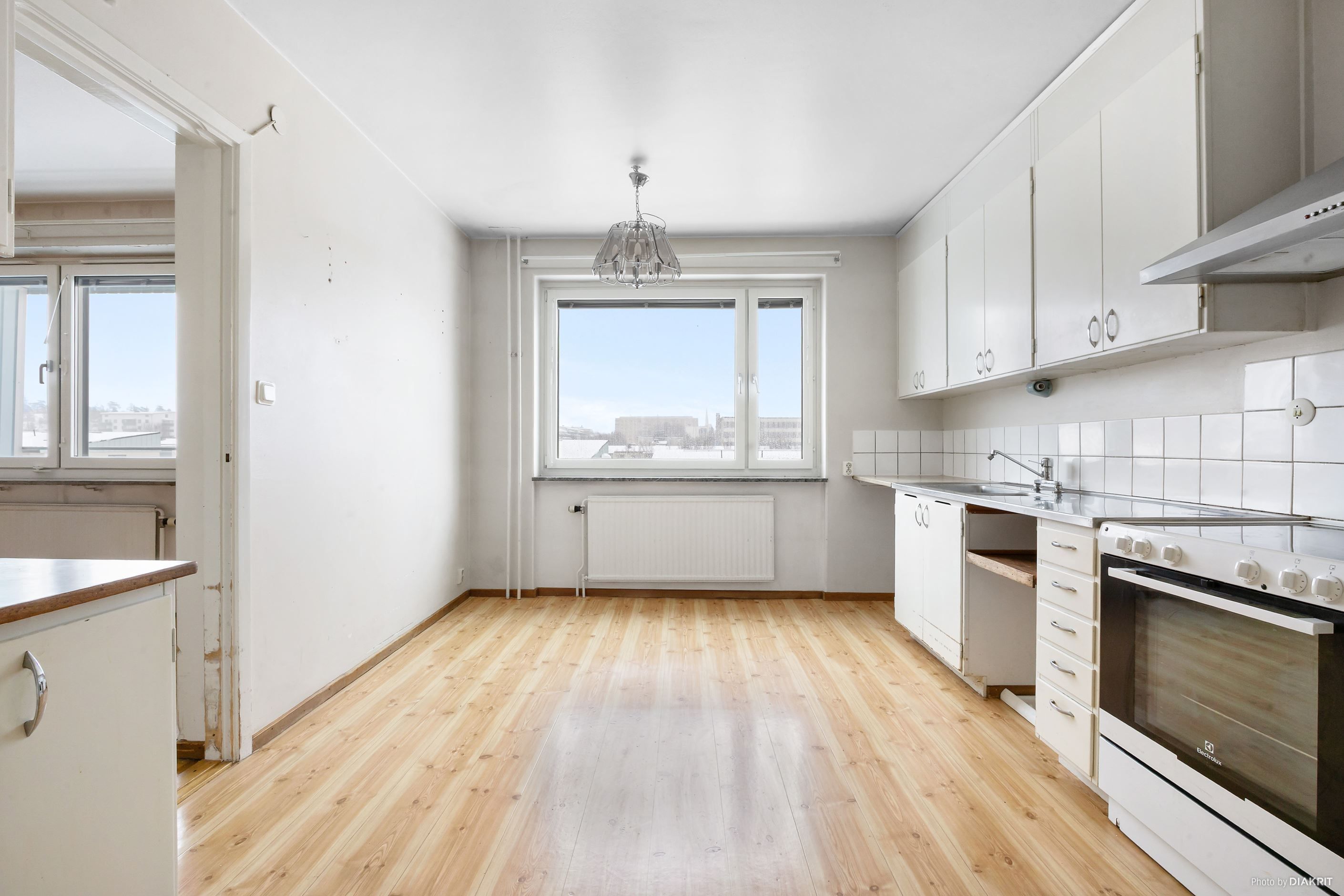 Här erbjuds möjligheten att kunna förvärva denna rymliga 2a med stor potential. Här erbjuds ett stort vardagsrum med stora fönsterpartier i ett högt och fritt läge. Från vardagsrummet har ni även direkt tillgång till den härliga balkongen. Vidare erbjuds ett stort kök med plats för matbord för 6 personer, ett rymligt sovrum med mängder av platsbyggda garderober samt ett badrum.