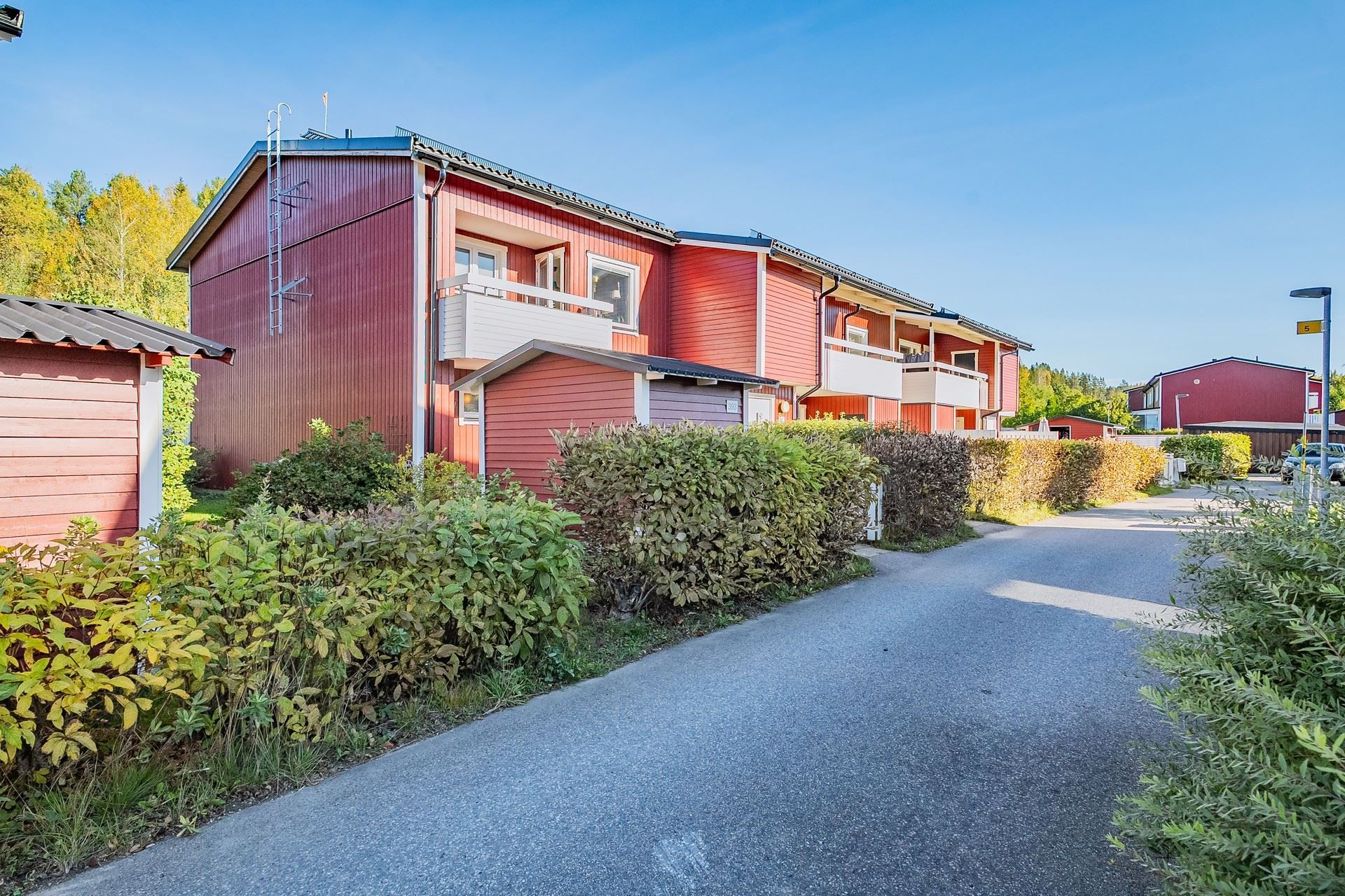 Rymlig 4:a i två plan med radhuskänsla och uteplatser i Granloholm
