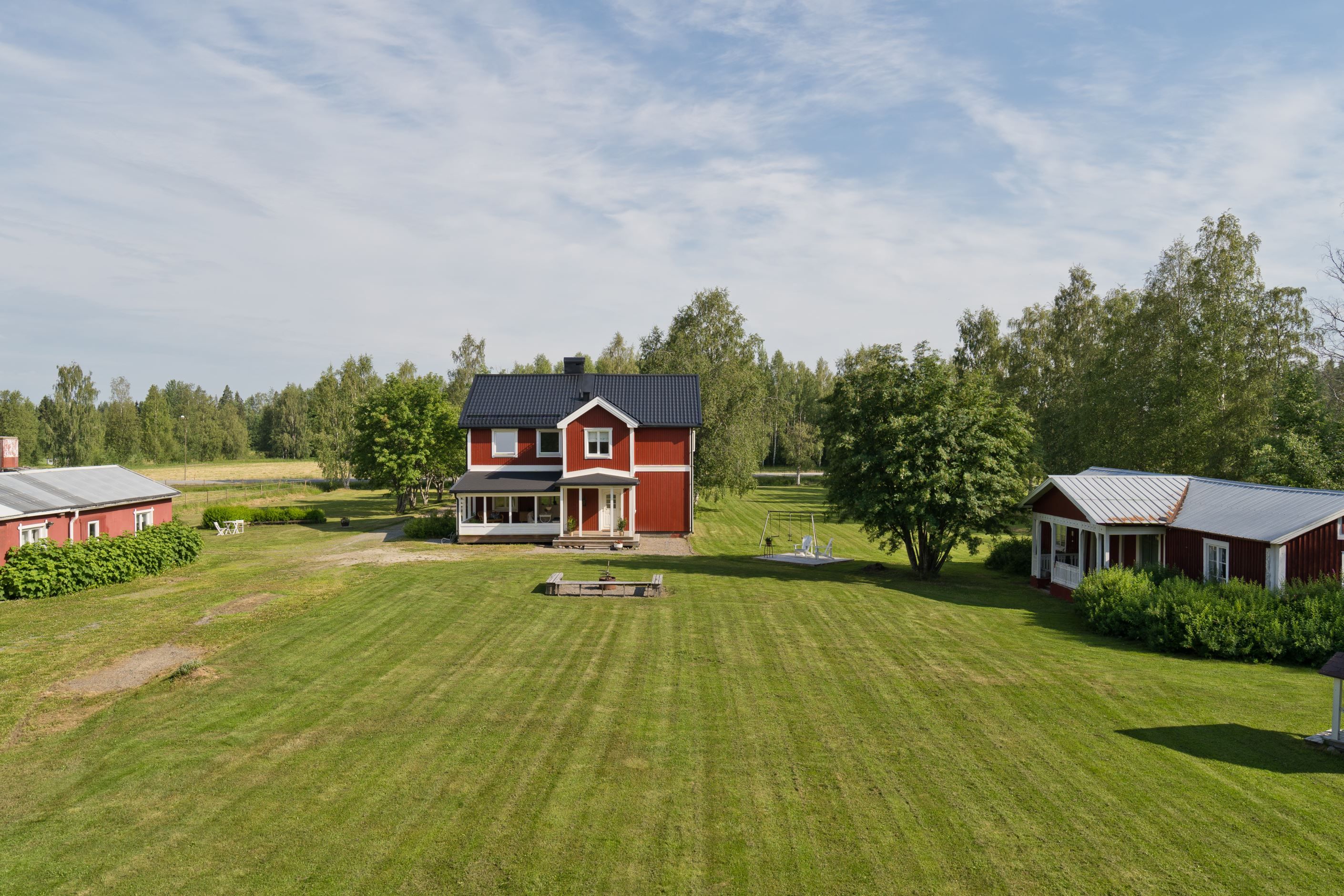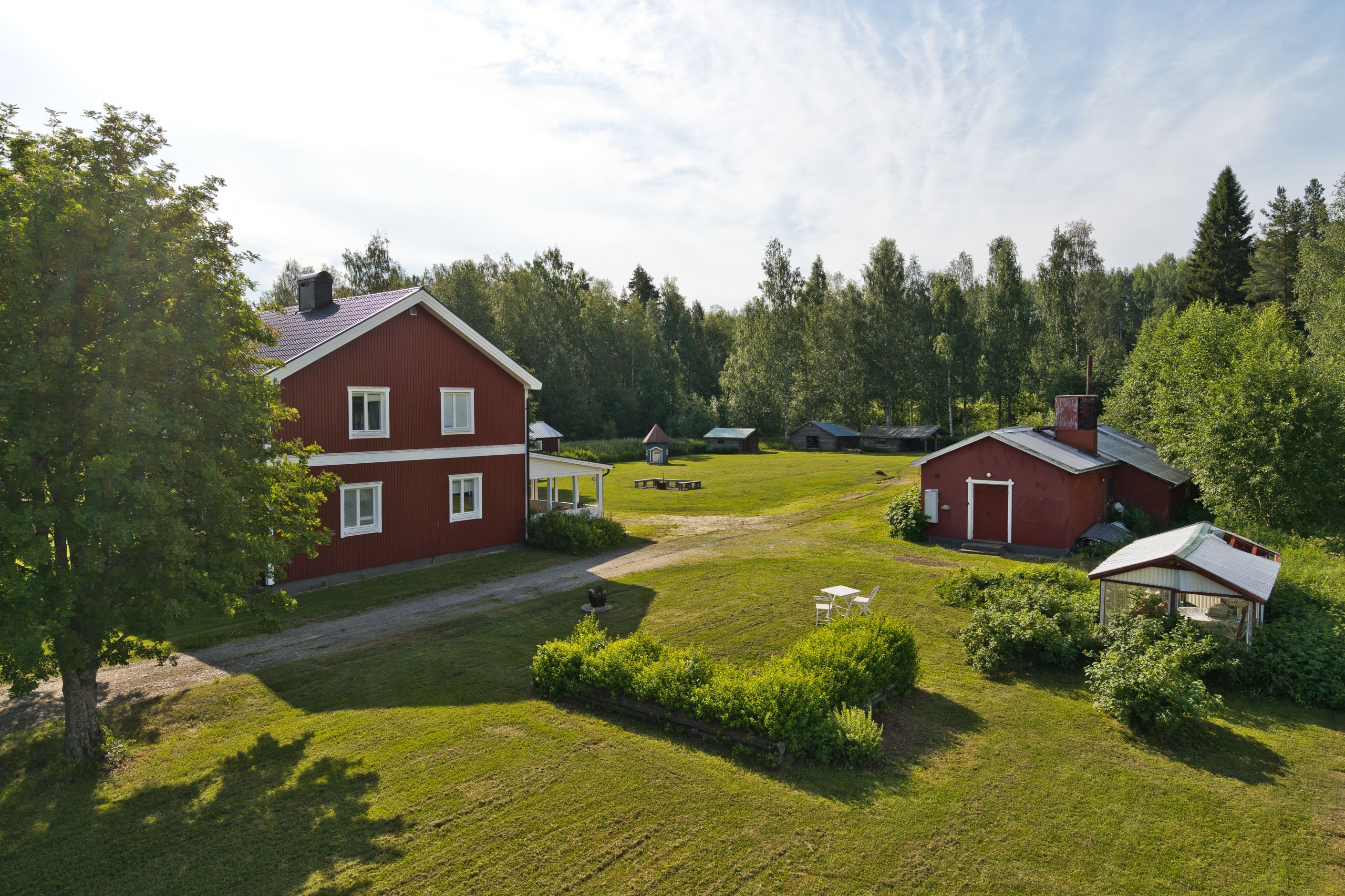 Här möts du av en allé av rönn som leder dig fram till den stora villan på 210 kvadratmeter. Med stora ytor utomhus kan du med enkelhet ha djur på gården men även intressen av det motordrivna slaget. Det finns ett större garage, förrådsutrymmen, bastu, fin vedeldad bastu, lekstuga samt en enklare sommarstuga på tomten.