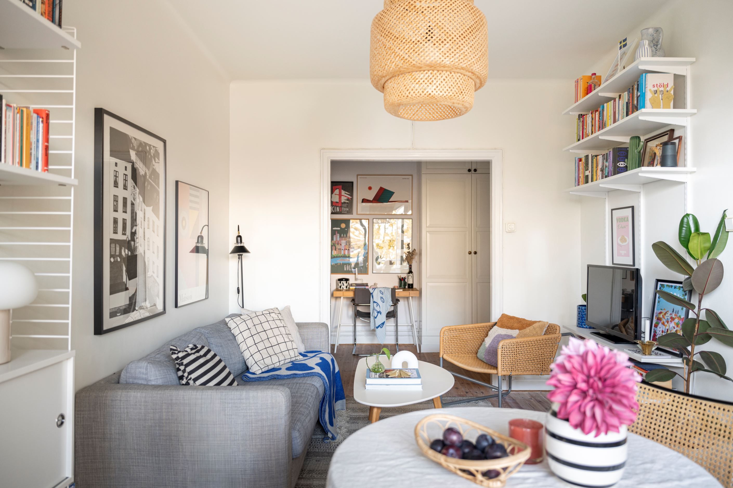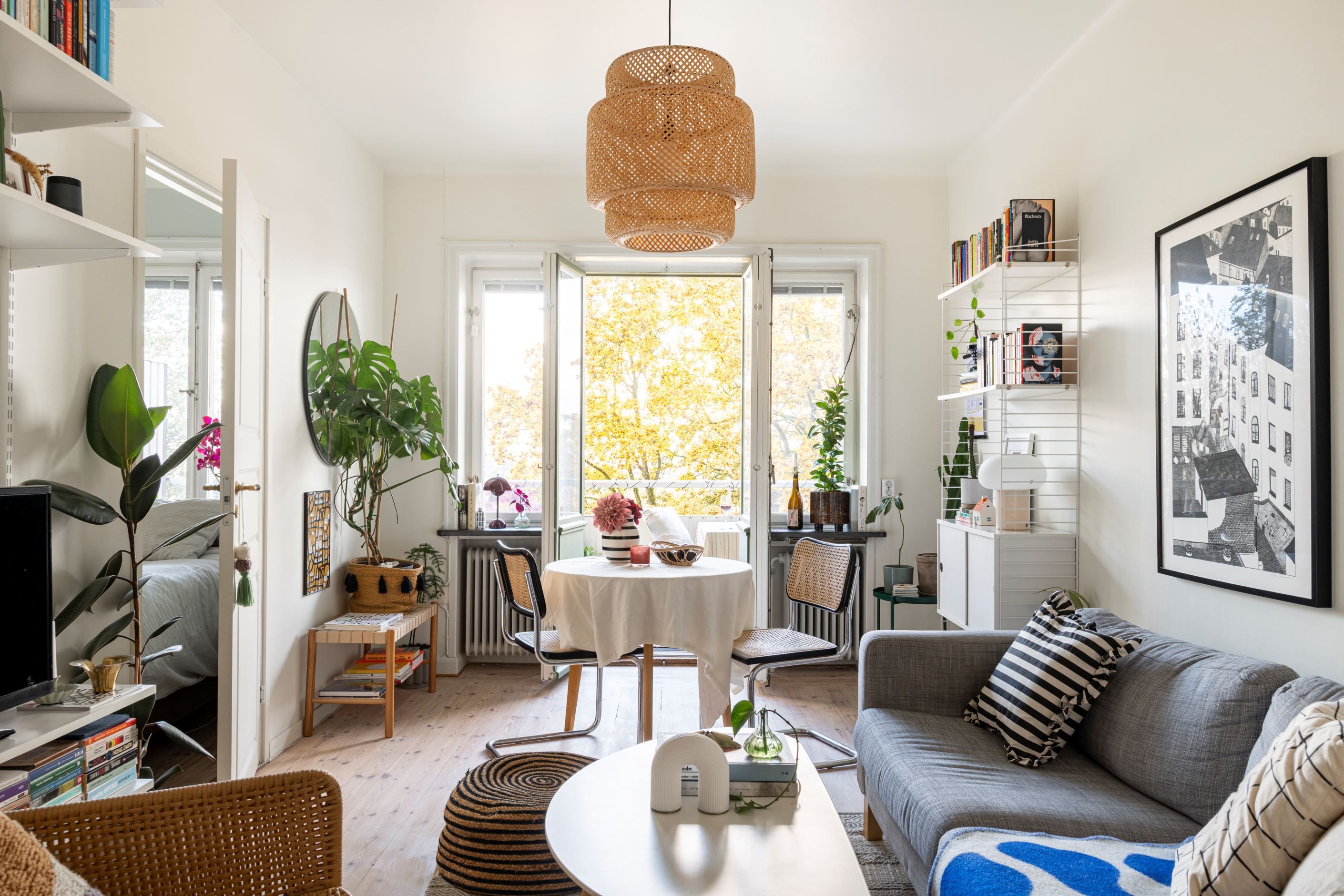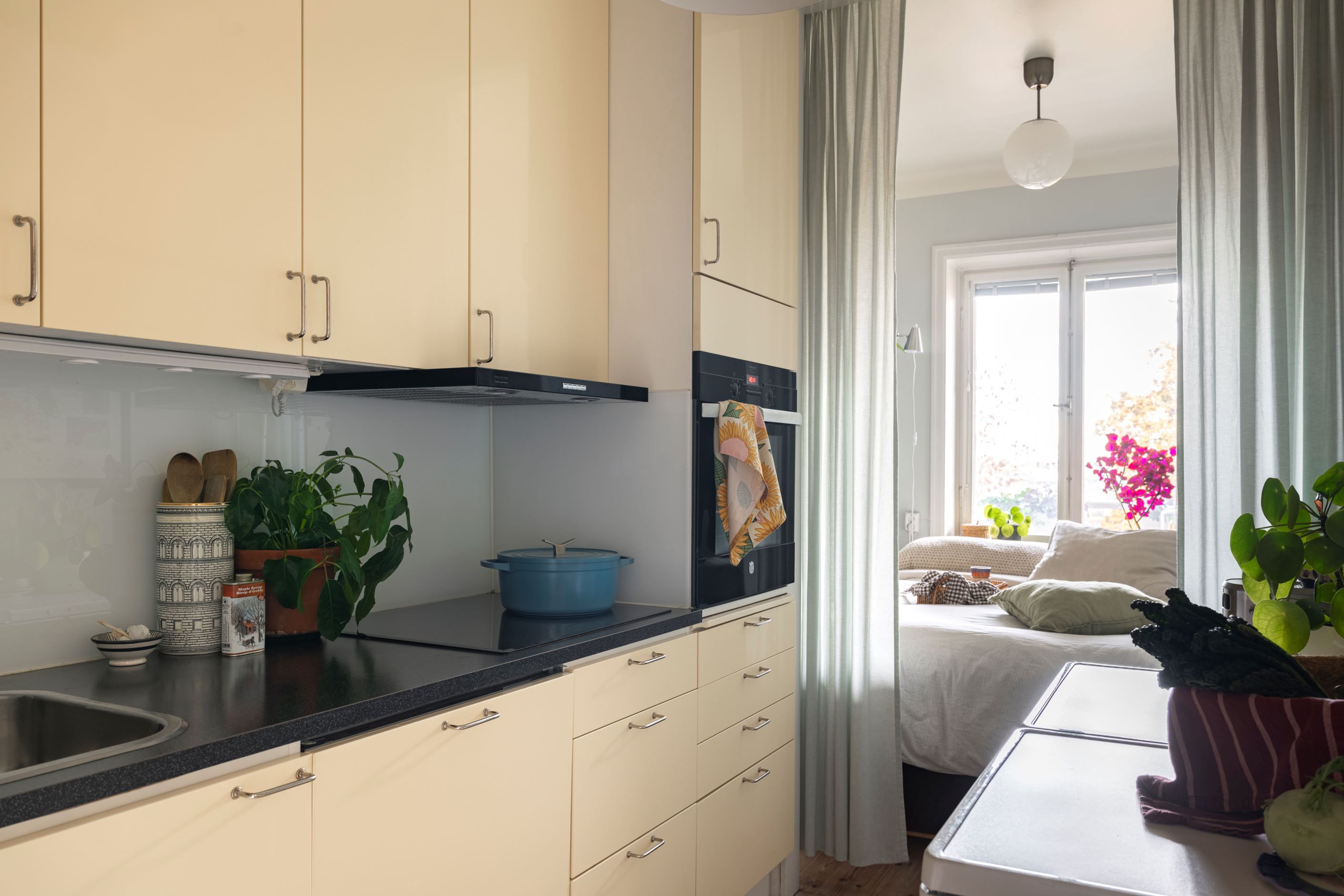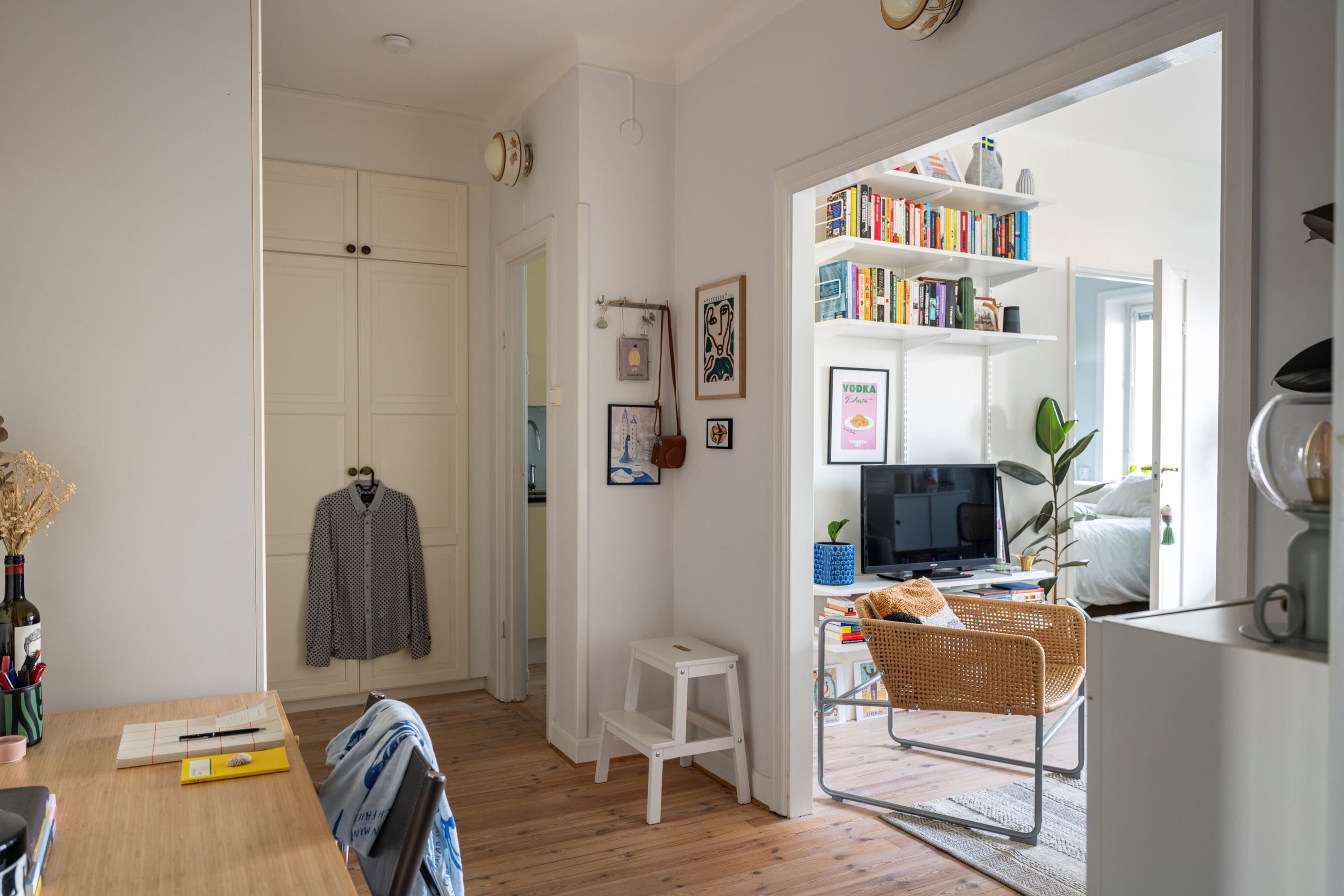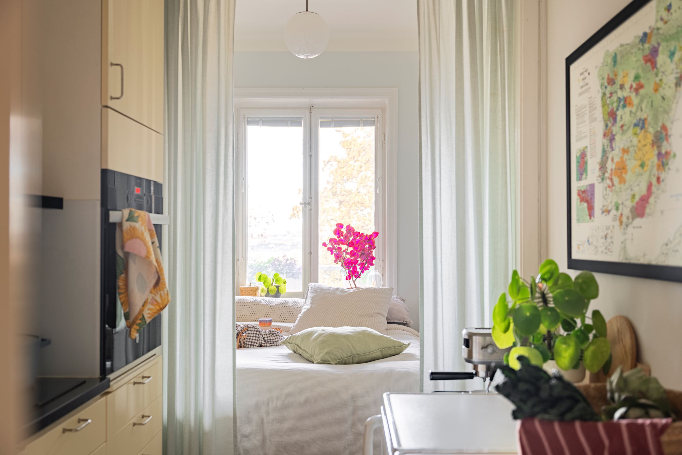 Lägenheten är smart planerad och disponeras idag som en 2:a med separat sovrum. Den genomtänkta planlösningen skapar en rymlig och harmonisk känsla, där de stora fönsterpartierna släpper in generöst med ljus och binder samman inne med ute.