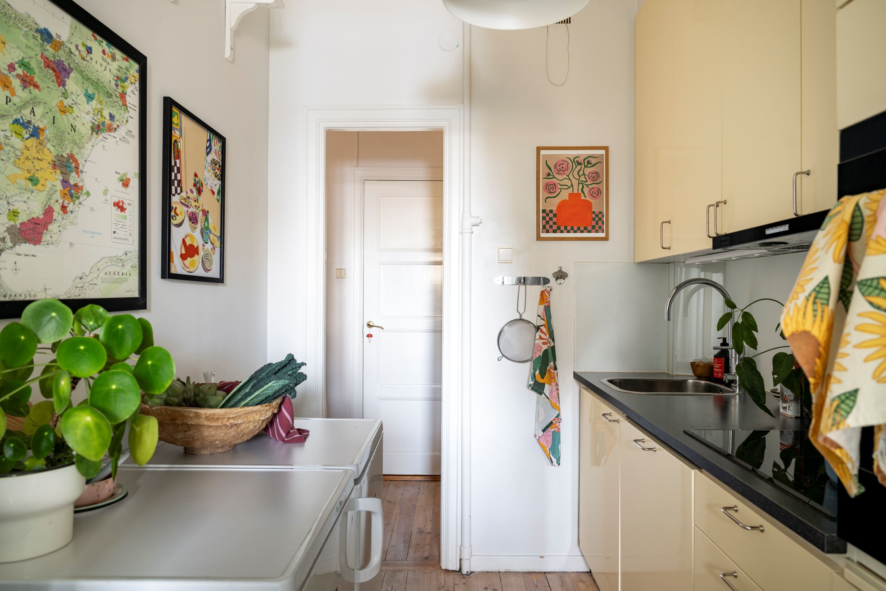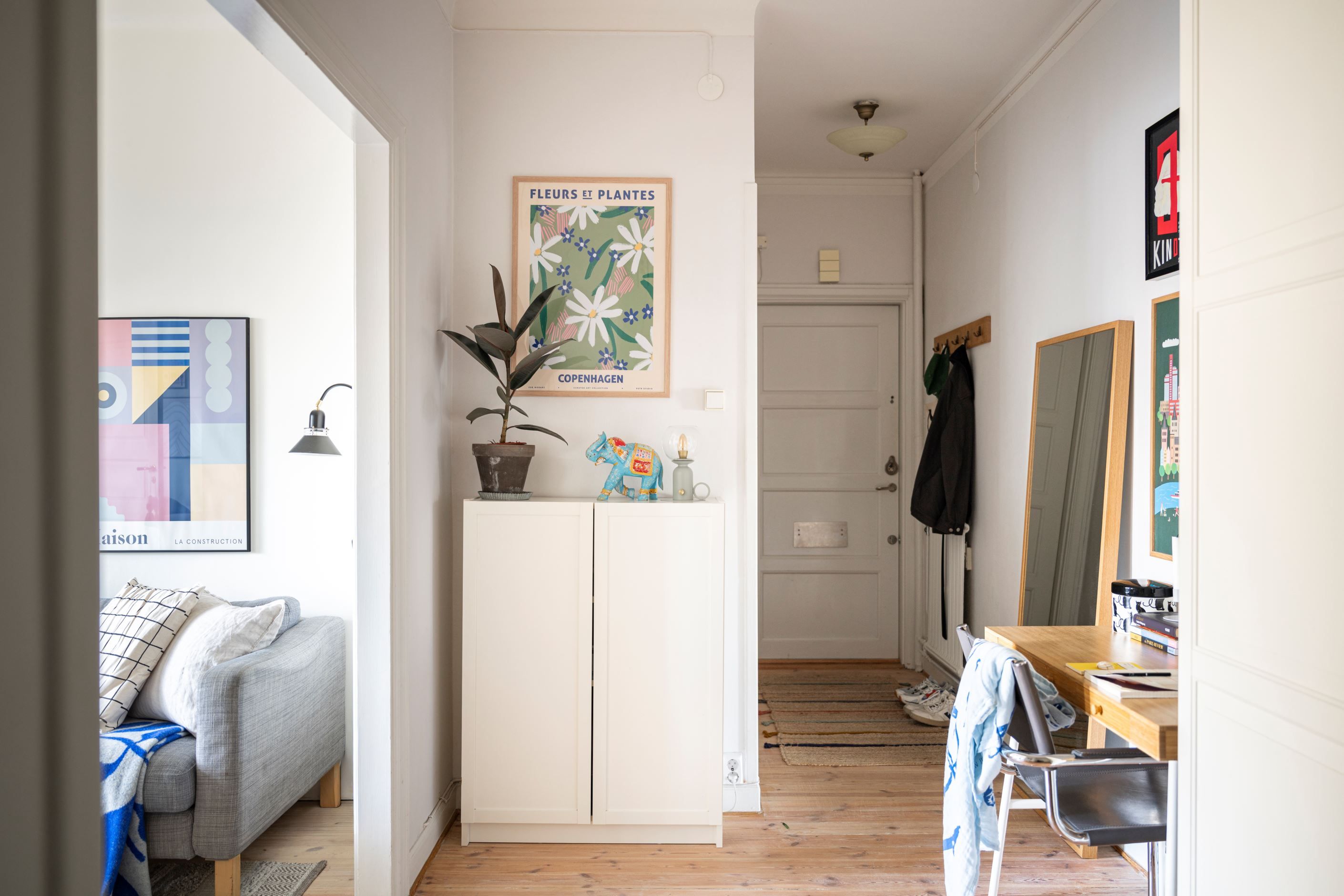 Här möts tidstypiska detaljer och modern funktion på bästa sätt. Originalgolv från 1930-talet finns bevarade och ger bostaden dess genuina karaktär, samtidigt som ytorna är lättmöblerade och inbjudande.