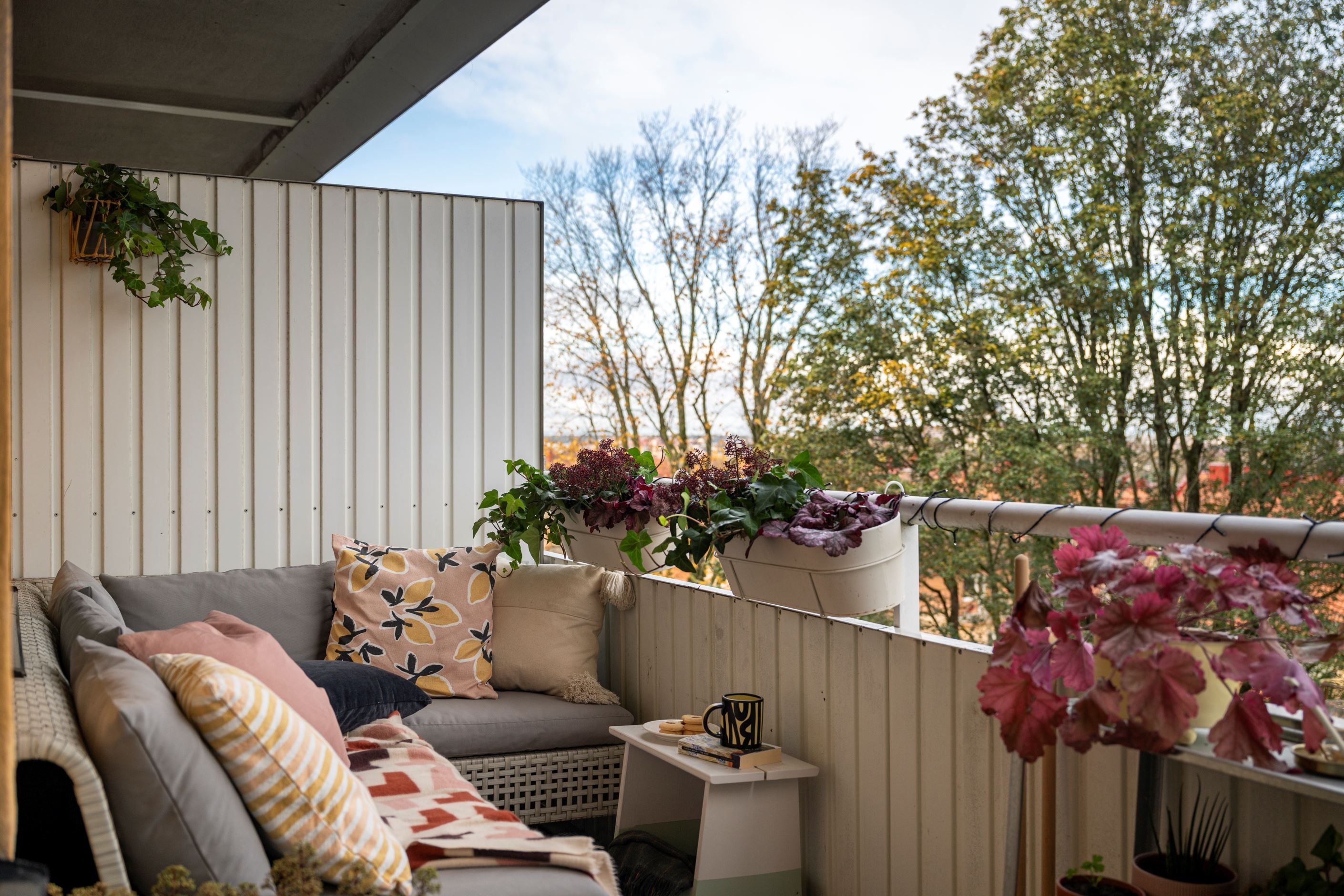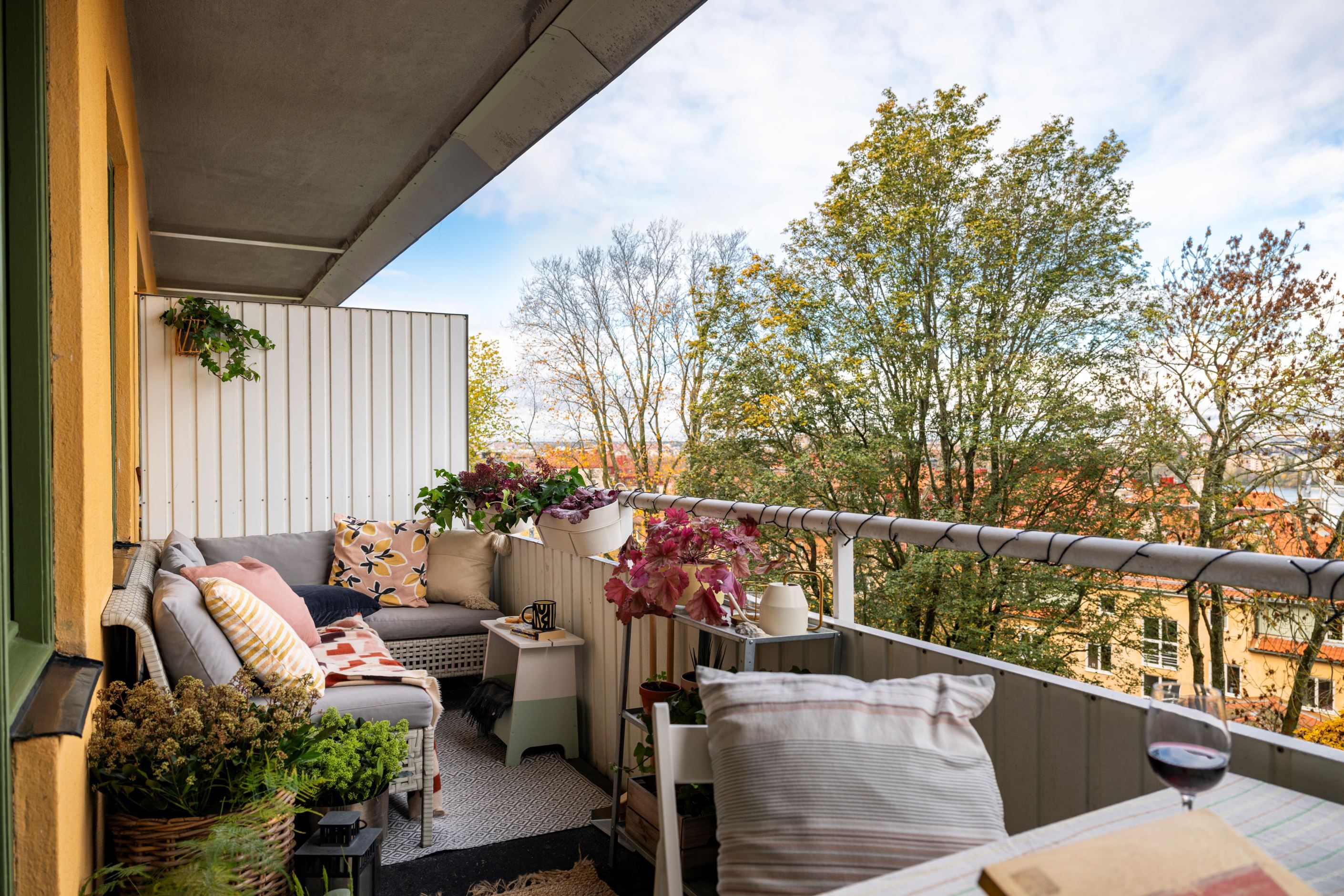 Den stora balkongen blir ett extra vardagsrum – året runt. Här kan du njuta av magiska solnedgångar, norrsken över vattnet, sommarkvällar med middag i det fria och nyårsfyrverkeriernas glittrande sken. Tack vare balkongen ovanför kan du till och med sitta ute när regnet faller.