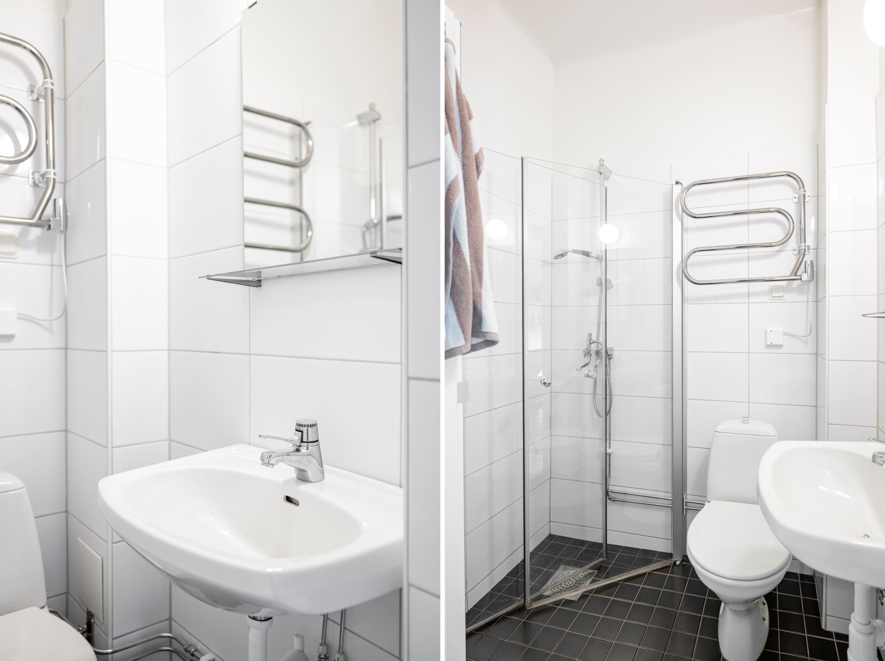 Goda förvaringslösningar gör det enkelt att hålla hemmet stilrent och organiserat. Det rymliga badrummet erbjuder en komfort som överträffar förväntningarna för en 1:a.