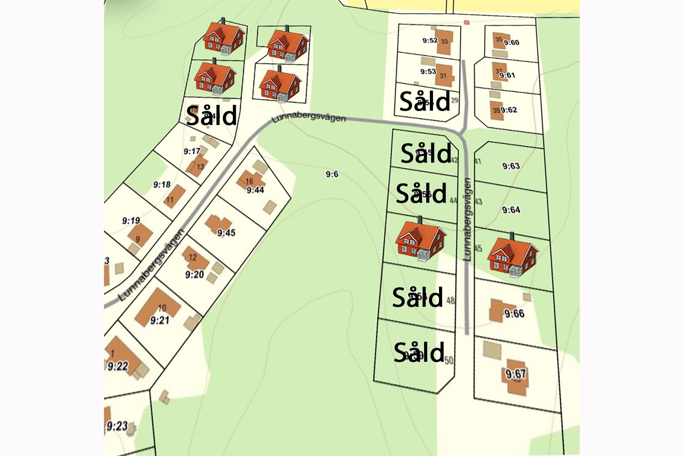 Då suterränghus avviker något från detaljplanen så säljs denna tomt med villkor för bygglov. Vi har varit i kontakt med kommunen och de är positiva till att bygga suterräng då det är en sluttningstomt som inte passar till det som detaljplanen föreskriver.
