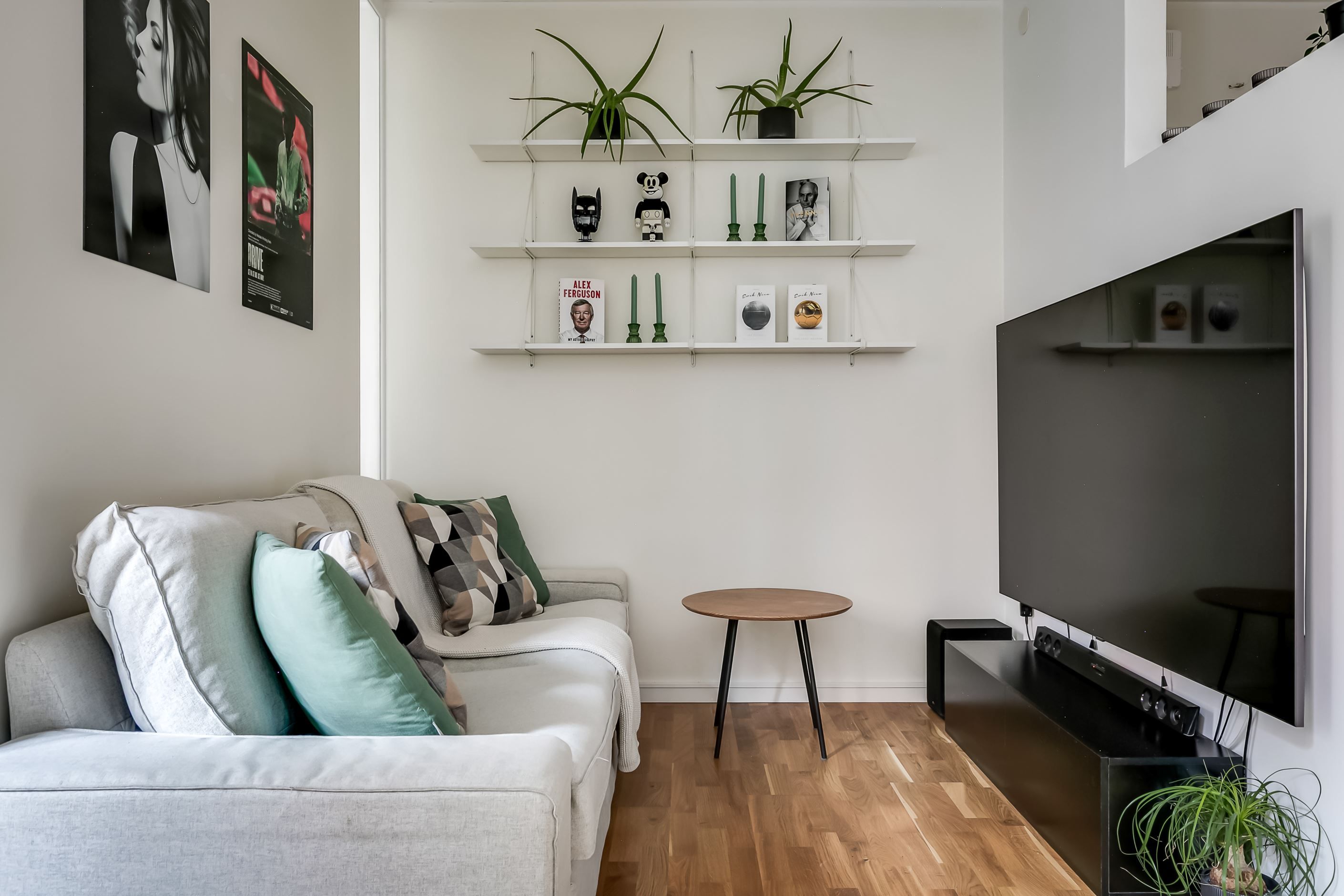 Planlösningen är så genomtänkt att bostaden passar utmärkt både för paret som vill bo yteffektivt eller för den som söker ett bekvämt och stilrent hem på egen hand.