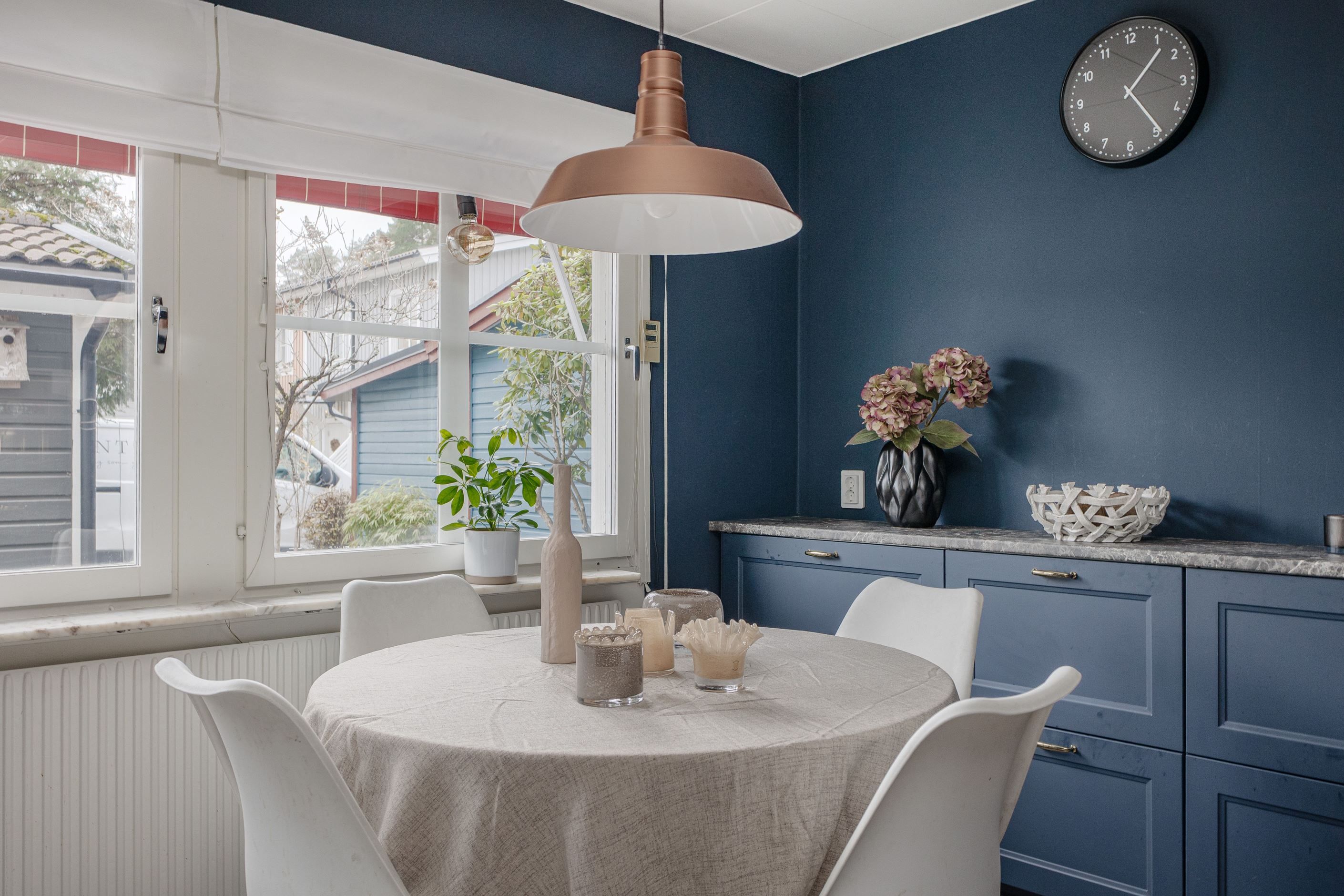 Redan i entrén möts du av en varm och välkomnande hall som leder vidare till det smakfullt renoverade köket, skapat för både vardagsmatlagning och gemensamma stunder. Intill ligger det sociala vardagsrummet med plats för både matmöbel och soffgrupp. Härifrån kliver du ut till den charmiga, takade altanen – en härlig förlängning av hemmet för långa middagar och sköna kvällar. På entréplanet finns även gäst-wc och praktisk tvättstuga.