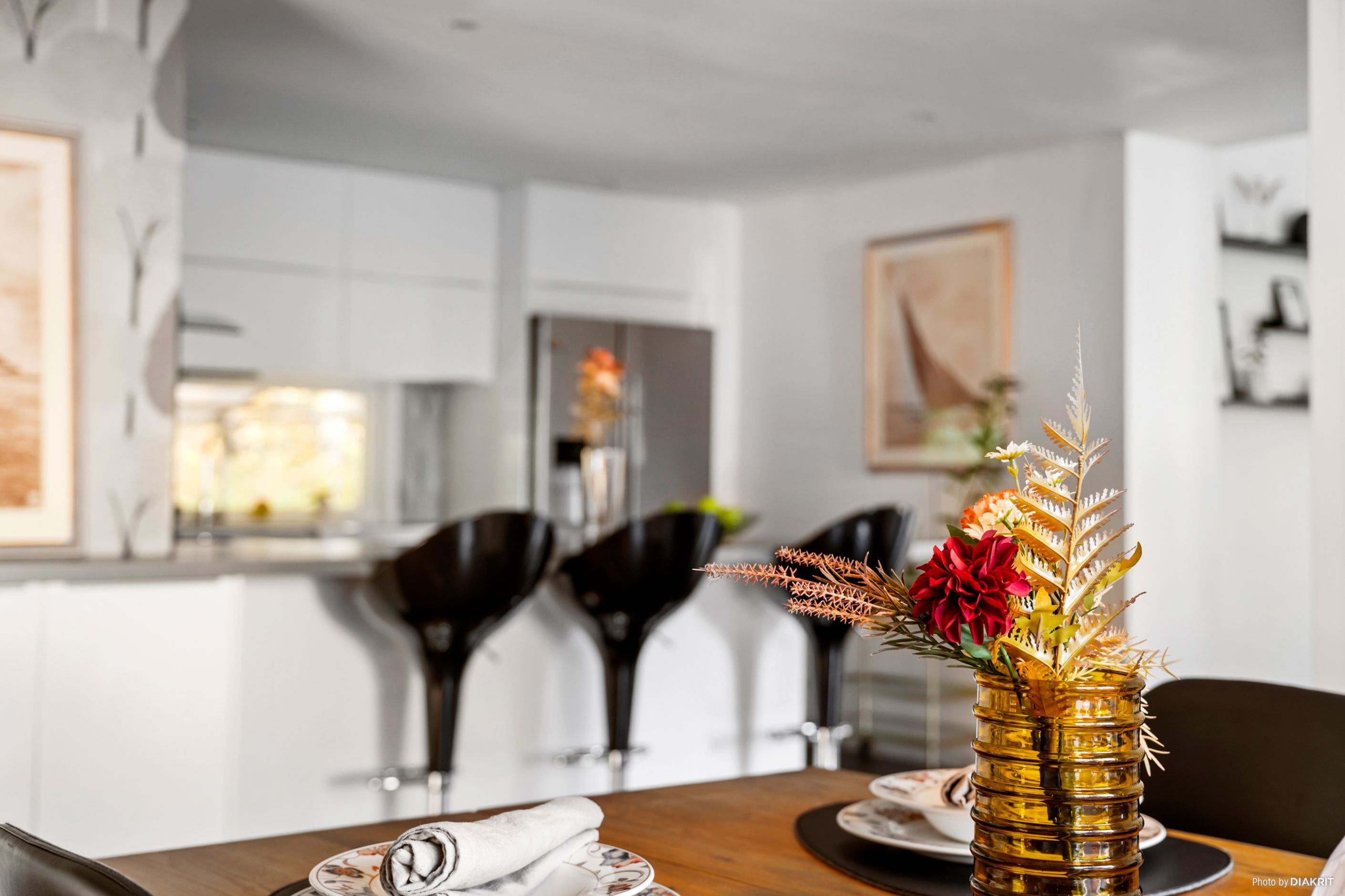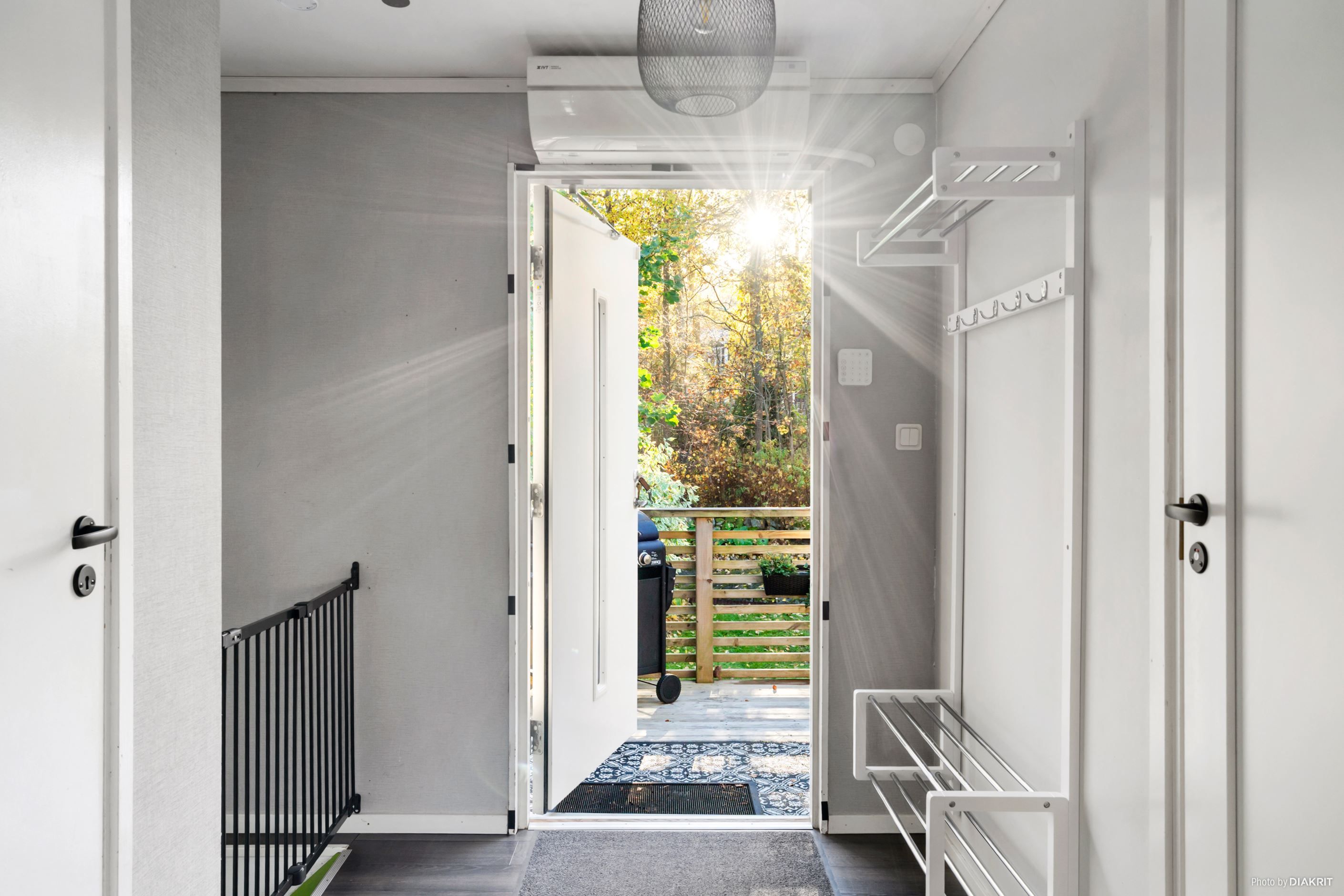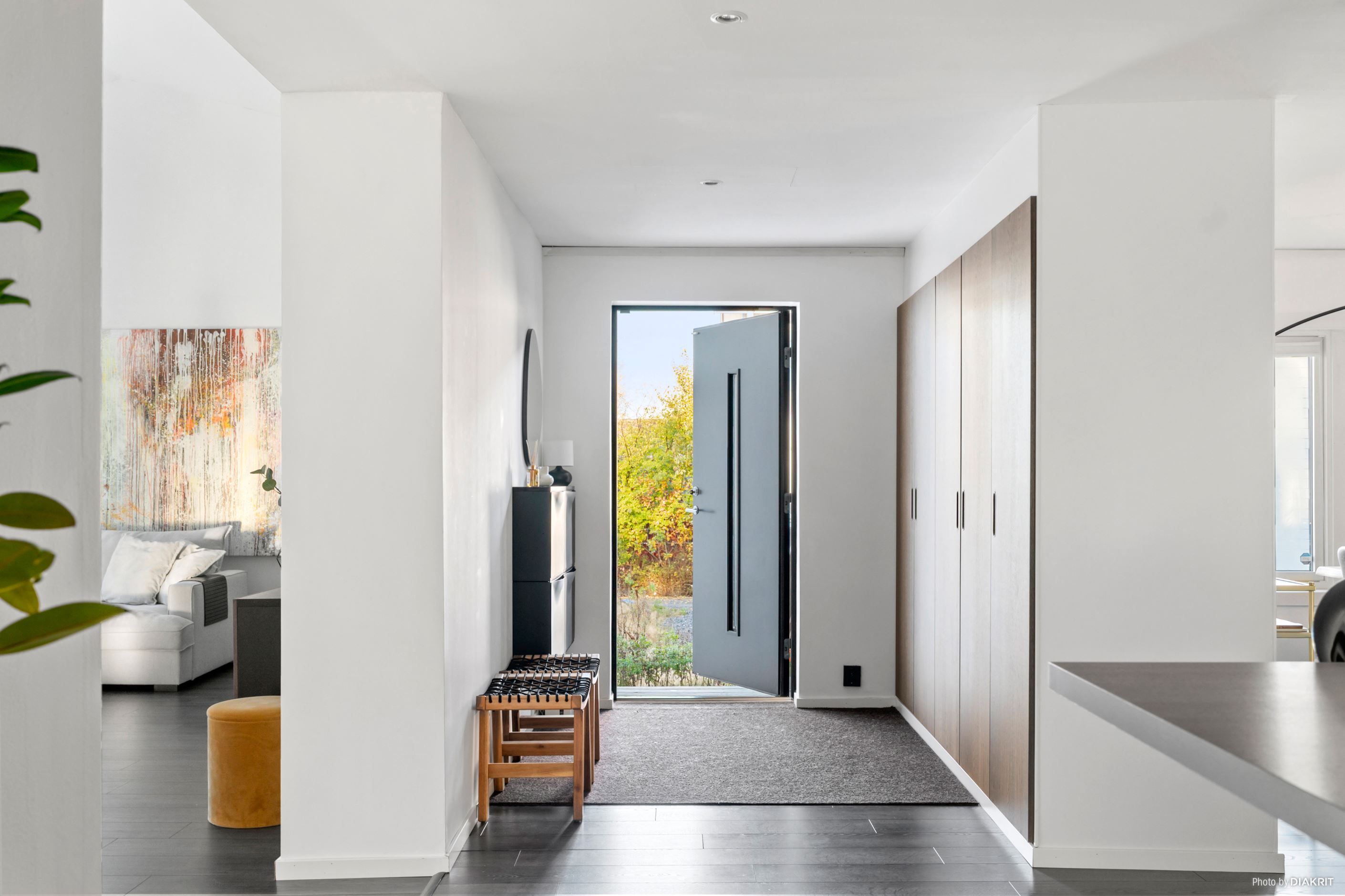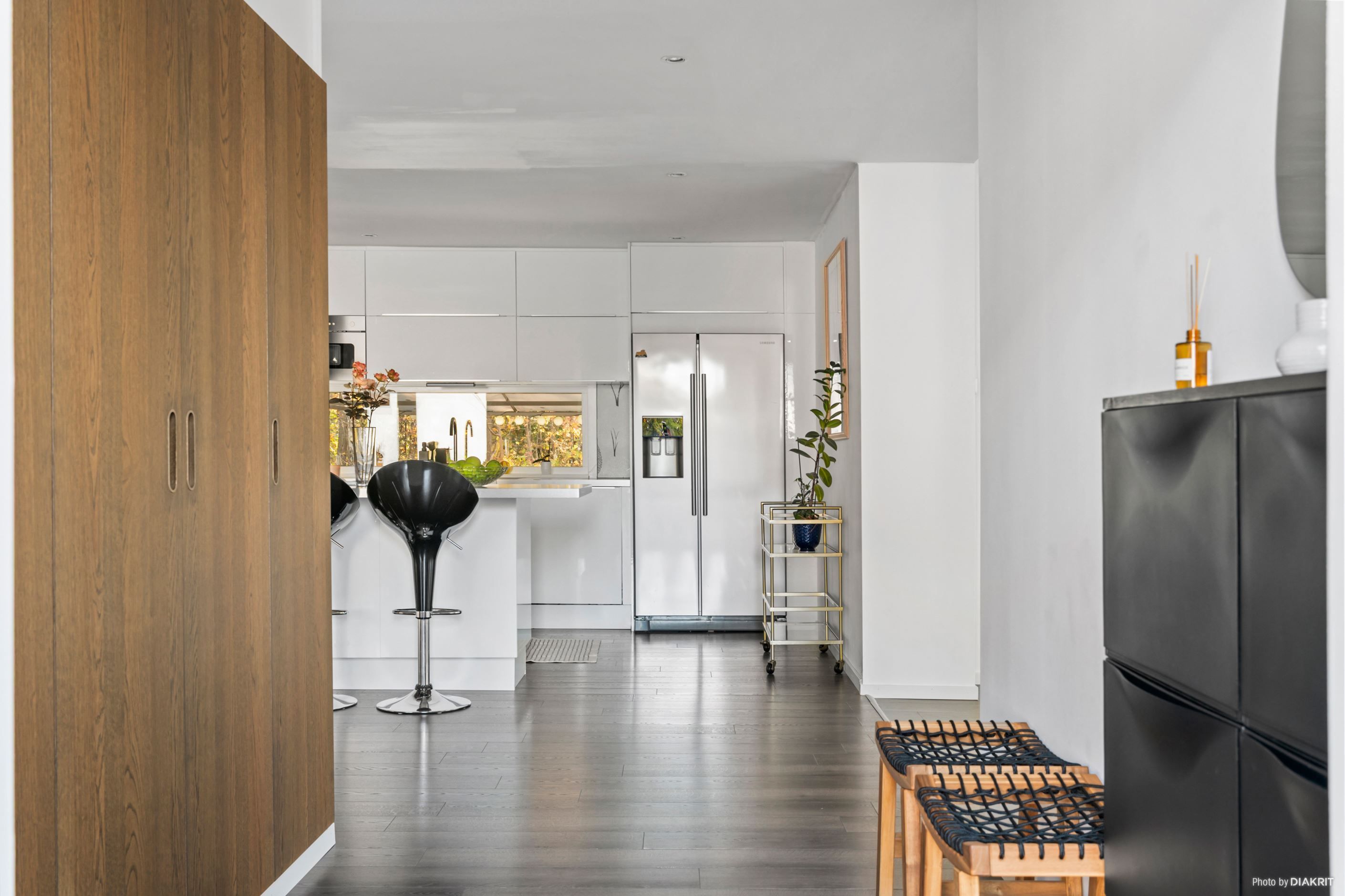 Välkommen in i ett hem där varje detalj är omsorgsfullt genomtänkt! Redan i hallen möts du av en inbjudande atmosfär med stilrent laminatgolv som löper vidare genom bostaden, samt generös förvaring i en nybyggd garderobsvägg.