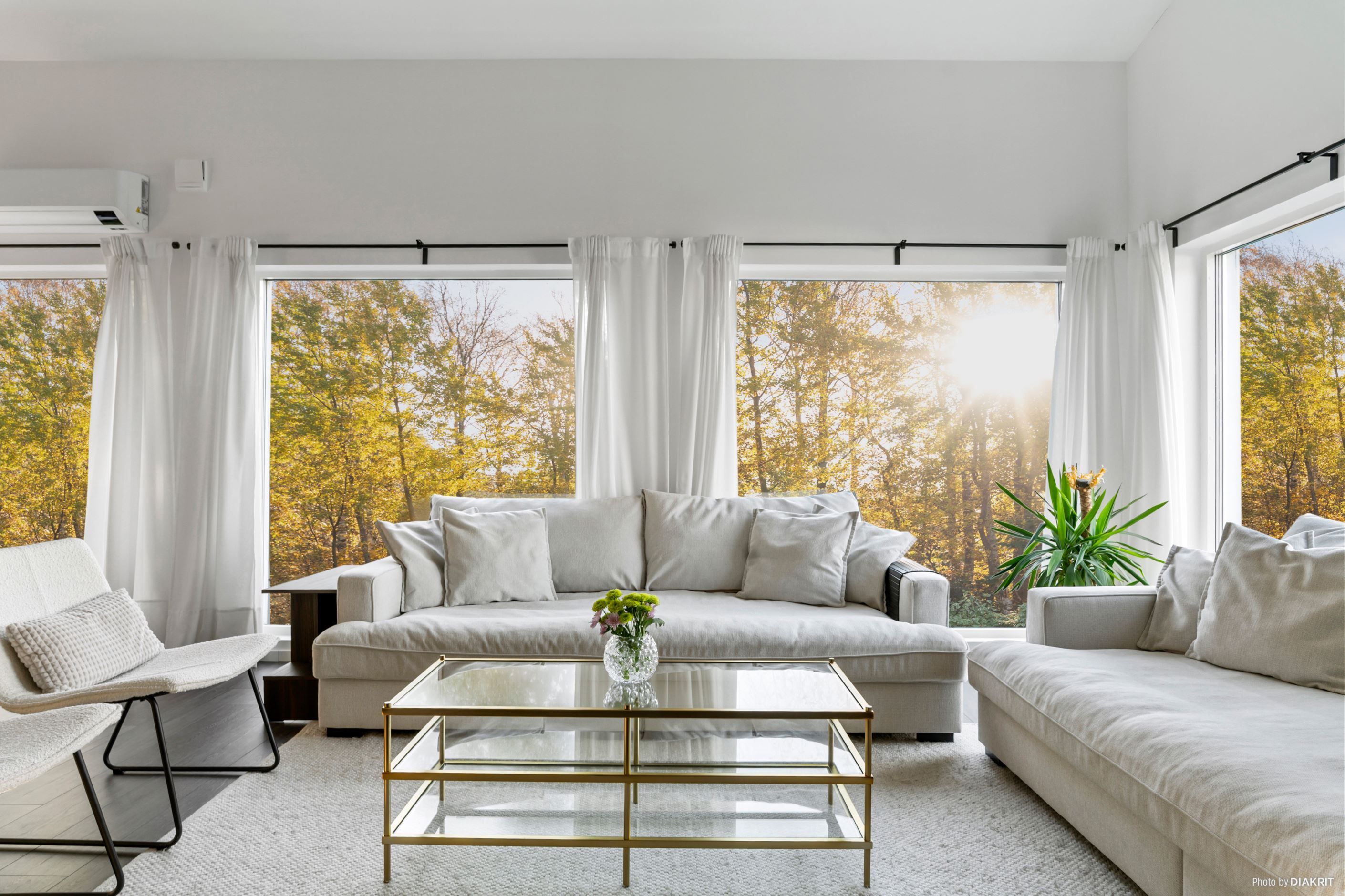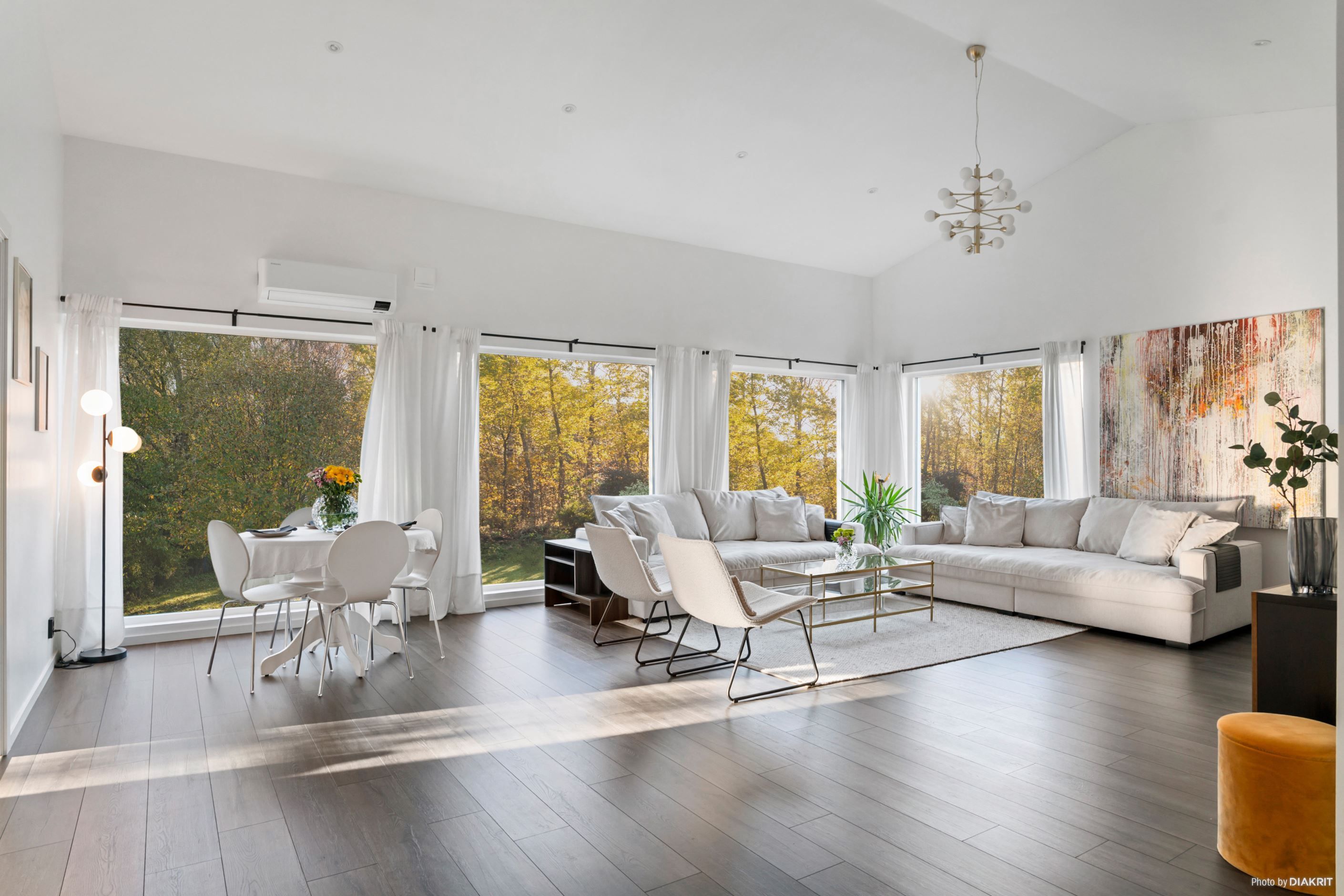 I den nyare delen(2023) till höger väntar ett ljust och luftigt vardagsrum tillsammans med två rymliga sovrum – alla med imponerande takhöjd och öppet upp till nock, vilket skapar en härlig känsla av rymd.