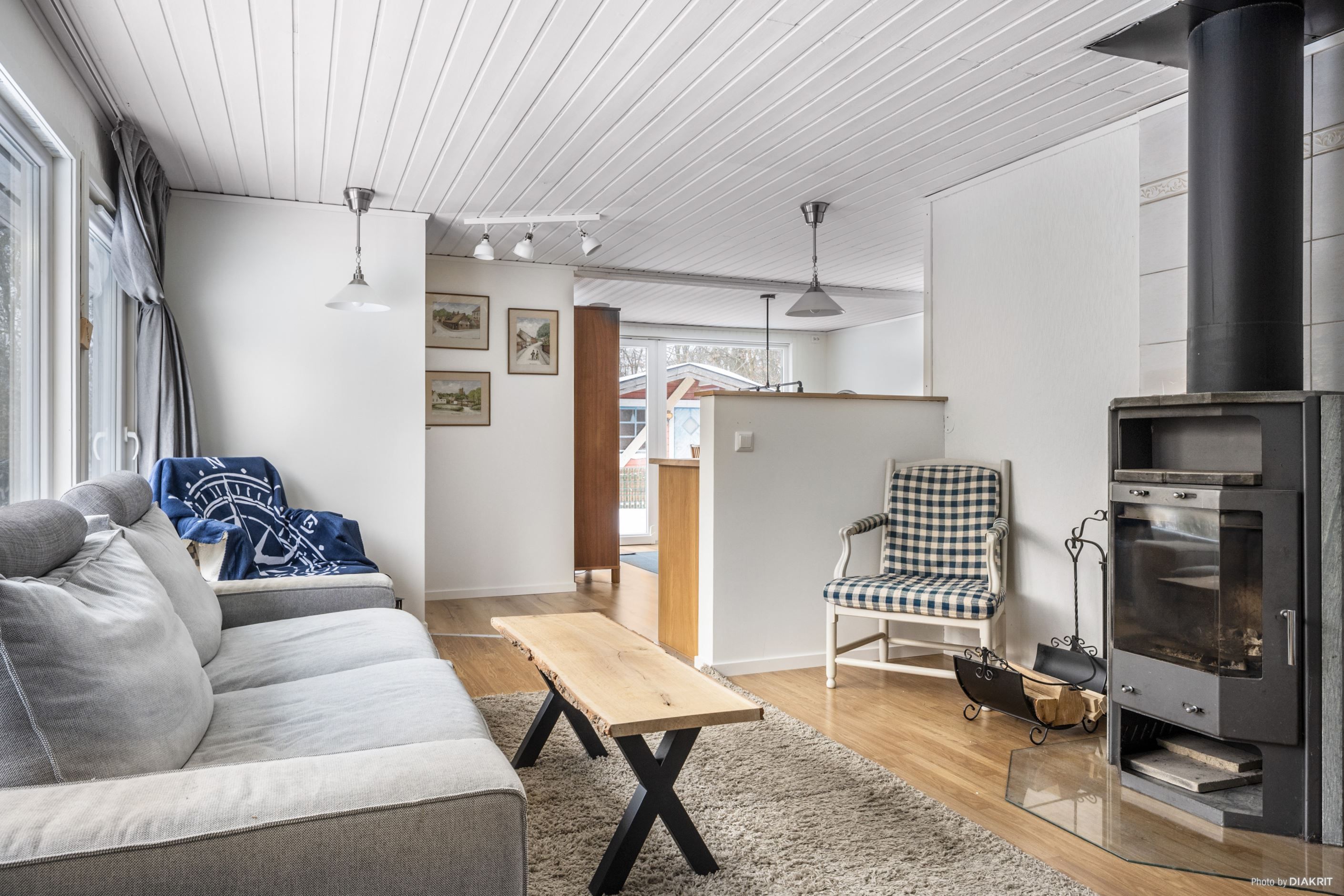 Bostaden erbjuder en öppen och social planlösning som skapar en luftig känsla och gör huset lätt att möblera – och lätt att värma upp. Kombinationen av luftvärmepump och stämningsfull täljstenskamin ger både energieffektiv uppvärmning och hög mysfaktor under årets kallare månader.