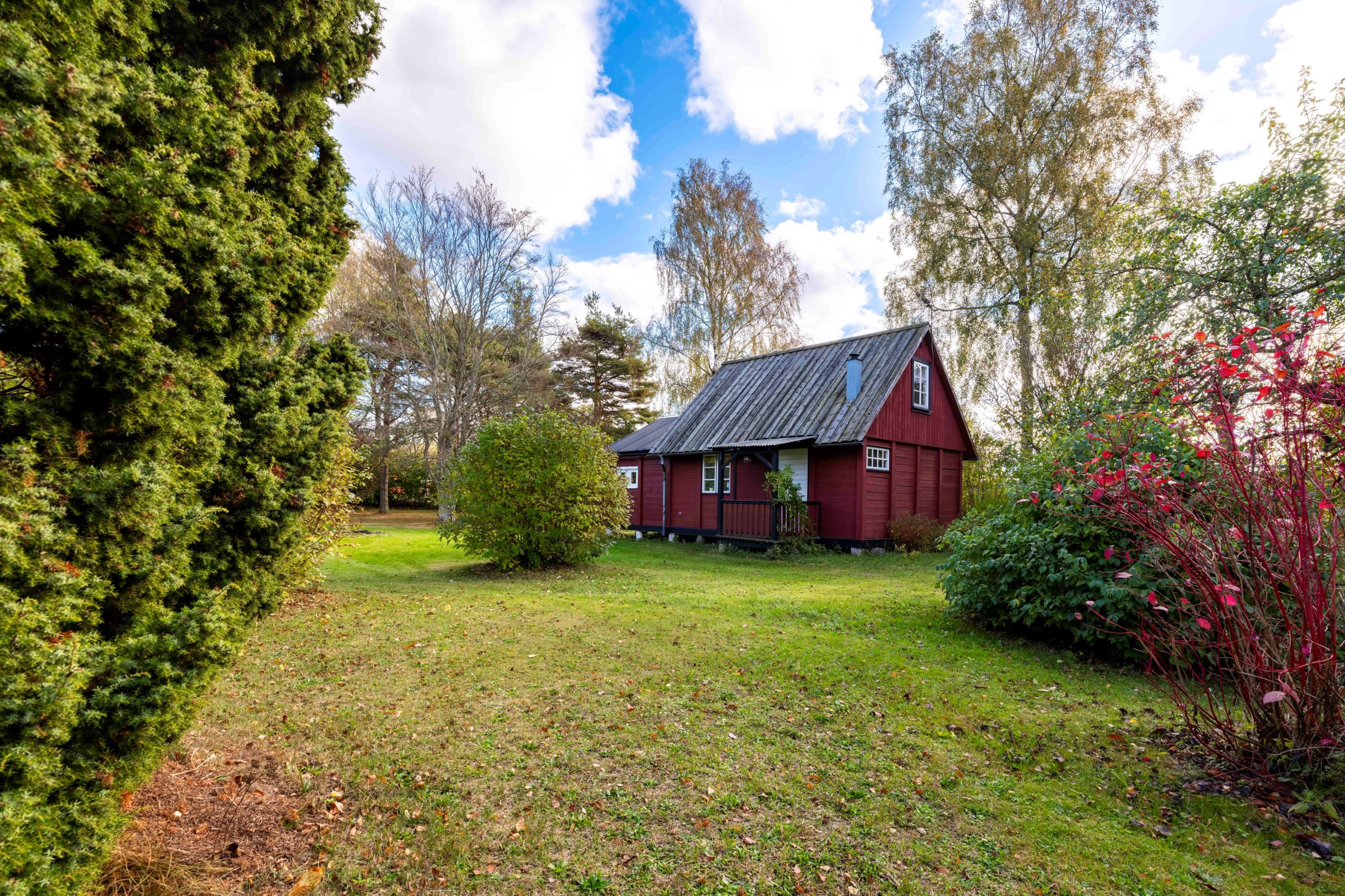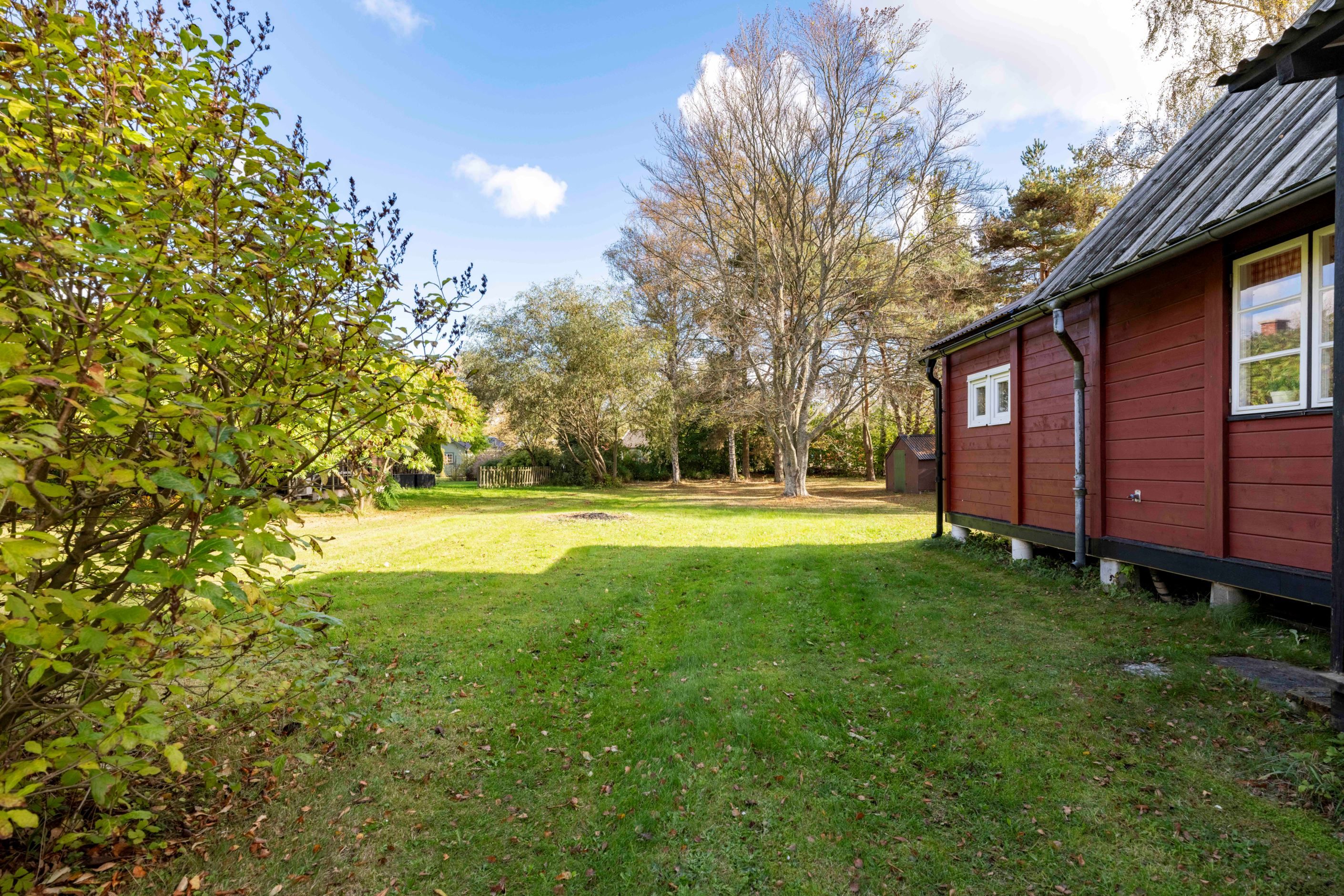 Tomten är öppen och ljus och här finns fantastiskt äppelträd och fin grönska. På tomten finns även enklare förrådsbyggnader och snickarbod. Kanske vill du inreda en gäststuga?