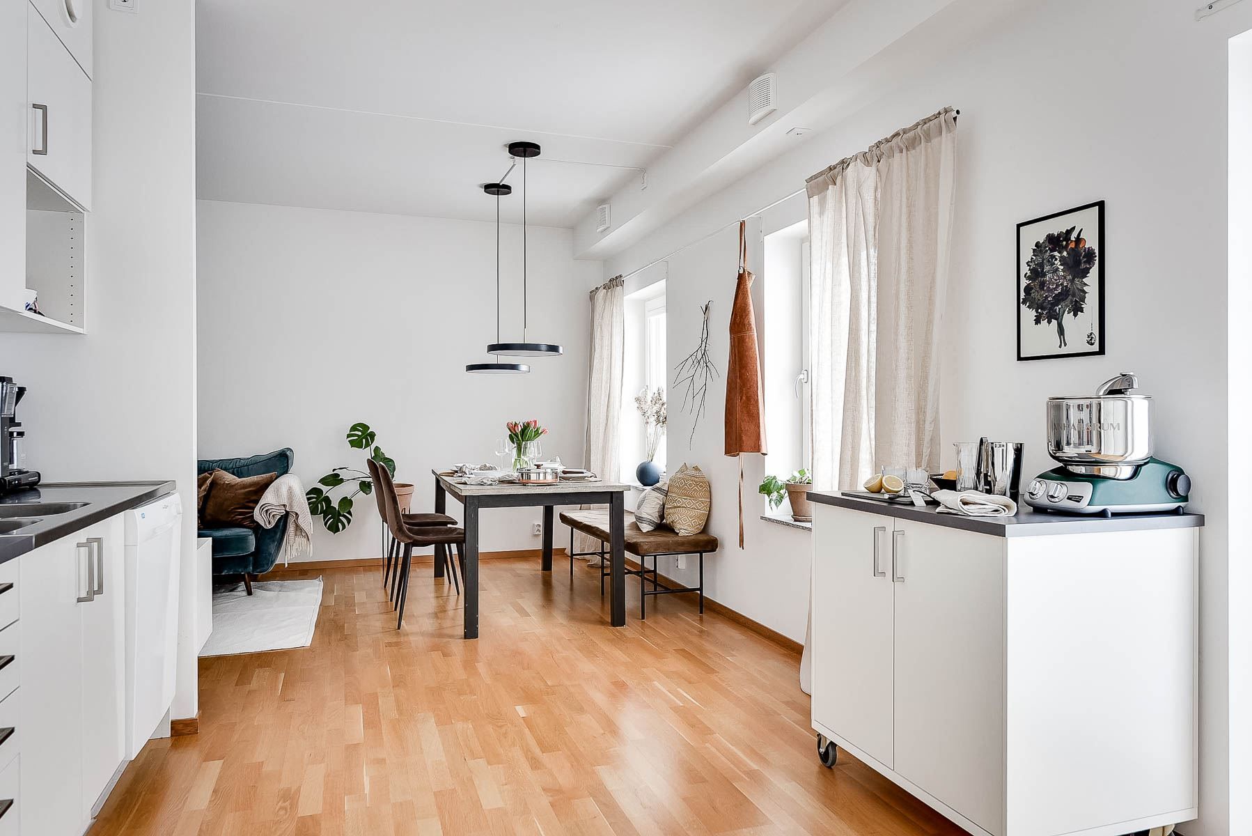 Välkomna till denna fina och fräscha trea med en stor härlig uteplats på ca 22 kvm i sydvästläge på populära Tomtebo! Här bor ni i en lägenhet med radhuskänsla då lägenheten är belägen på markplan och har egen ingång. Bostaden är ljus och trevlig med en skön atmosfär och en takhöjd på ca 2,7 m och ett genomgående ekparkettgolv genom hela lägenheten och ljus väggar. Lägenheten disponeras genom en social och öppen planlösning mellan kök och vardagsrum, två sovrum, hall, helkaklat duschrum med golvvärme samt stor trädäckad altan i bästa solläge.