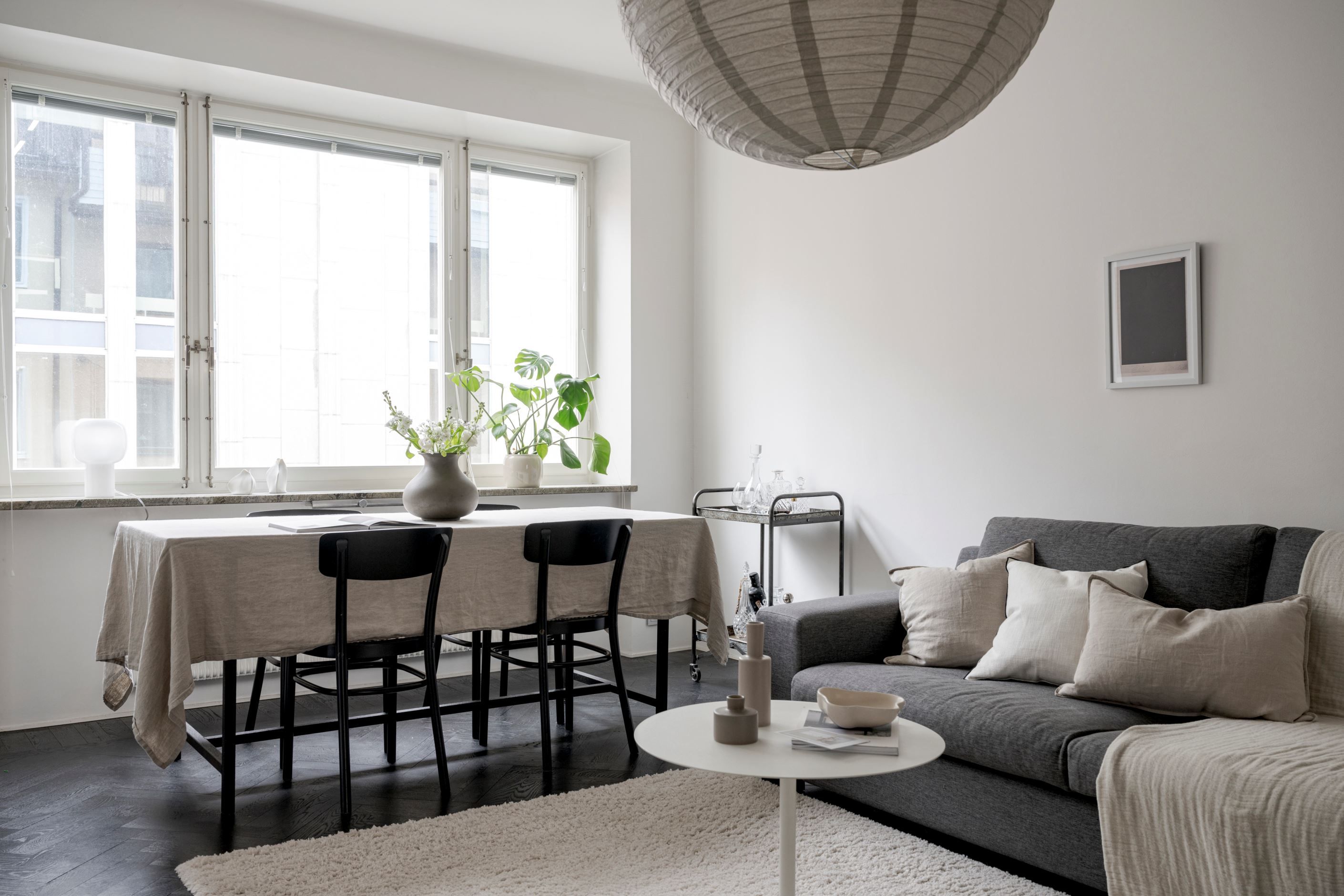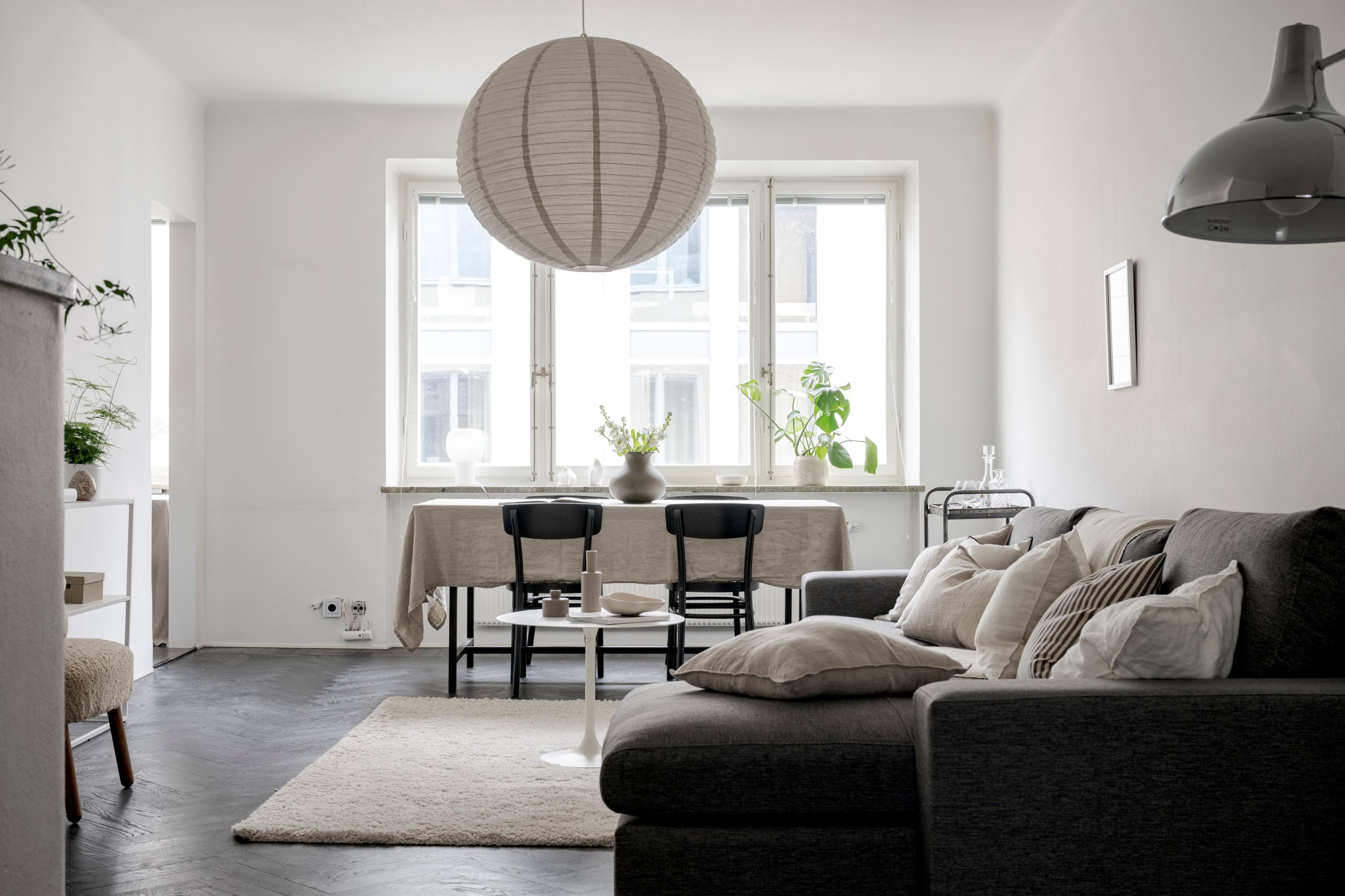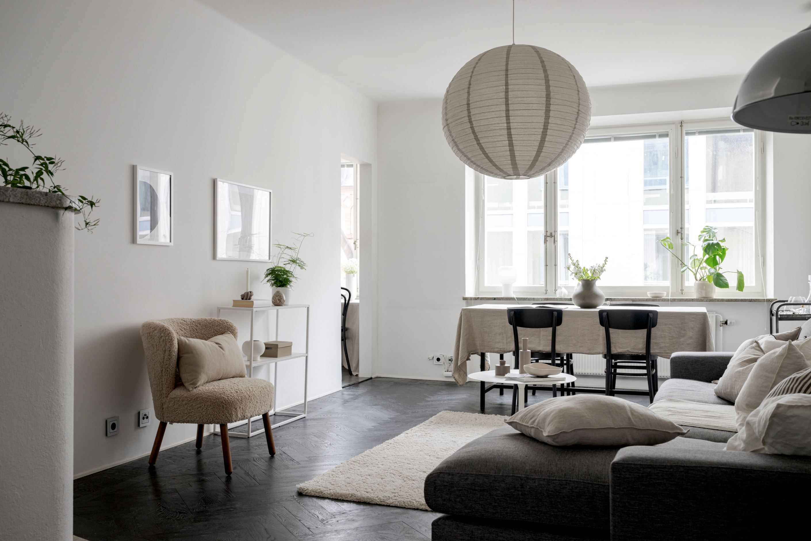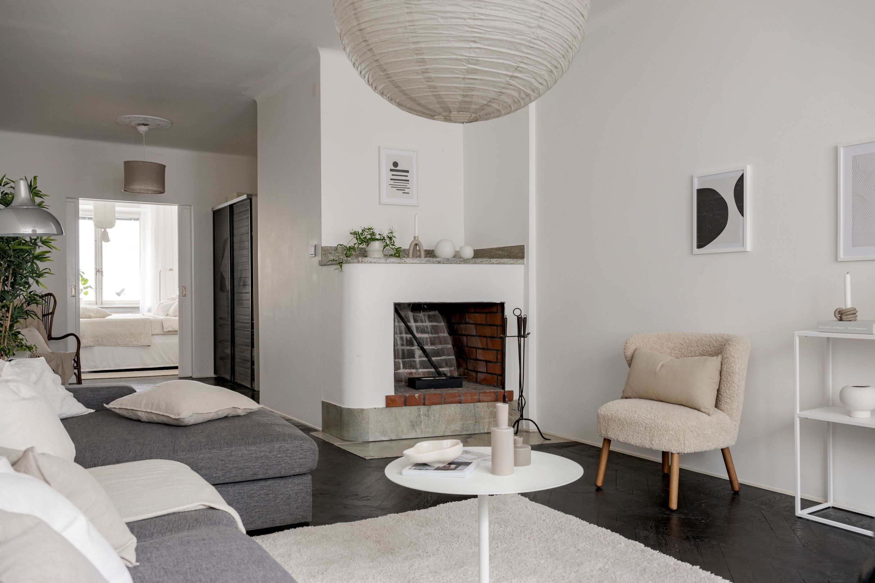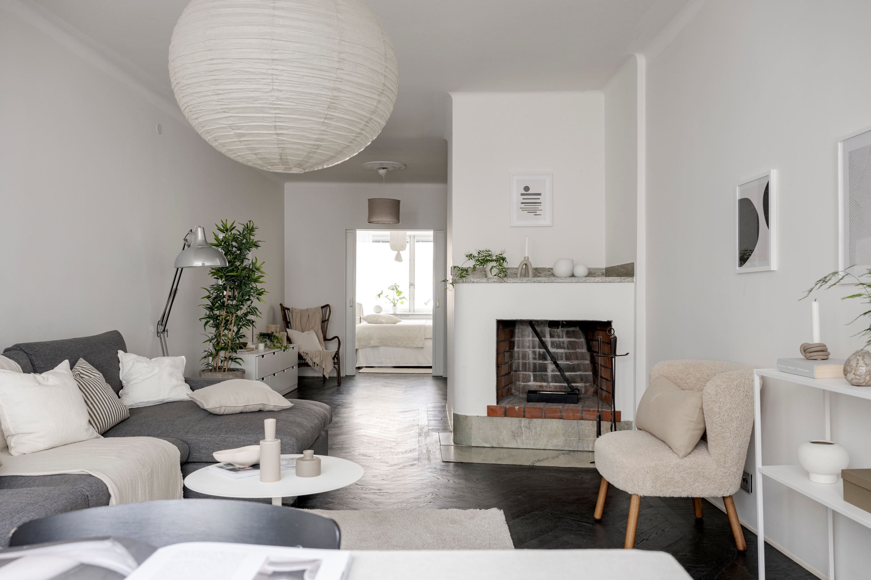 Bostaden har fönster i två olika väderstreck och har genomgående fiskbensparkett. Hallen är välkomnande med smarta förvaringslösningar och inbyggd belysning från Flos. Köket är renoverat i modern stil och är fullt utrustat med allt man kan tänkas behöva såsom fullstor diskmaskin, stor kombinerad kyl/frys, integrerad mikrovågsugn och vinkyl. Sällskapsrummet är stort och luftigt med plats för stor soffgrupp och matgrupp, här finns även öppen spis. I lägenheten finns en inre hall med många möjligheter som till exempel en walk-in-closet i anslutning till bostadens sovrum.