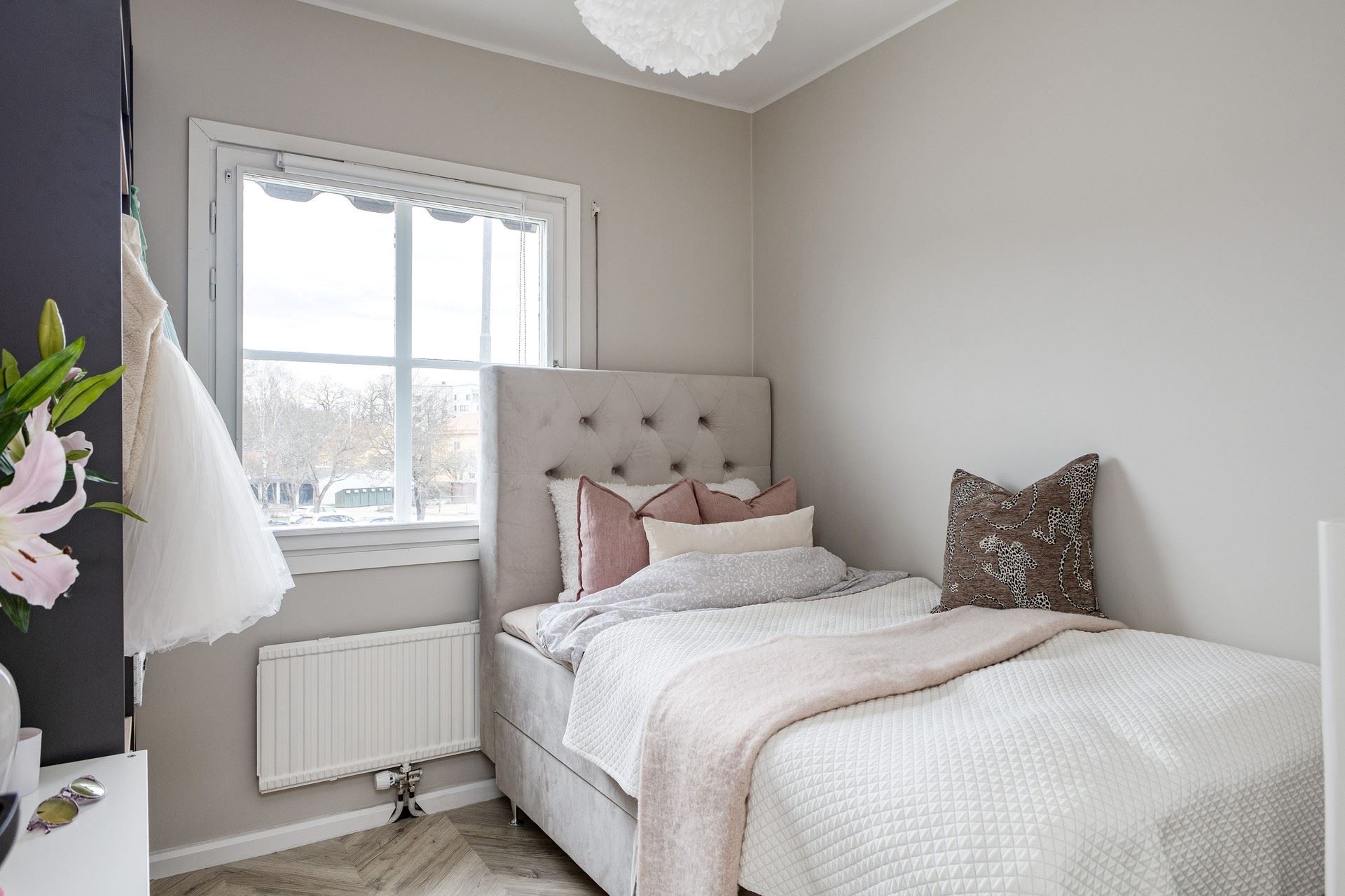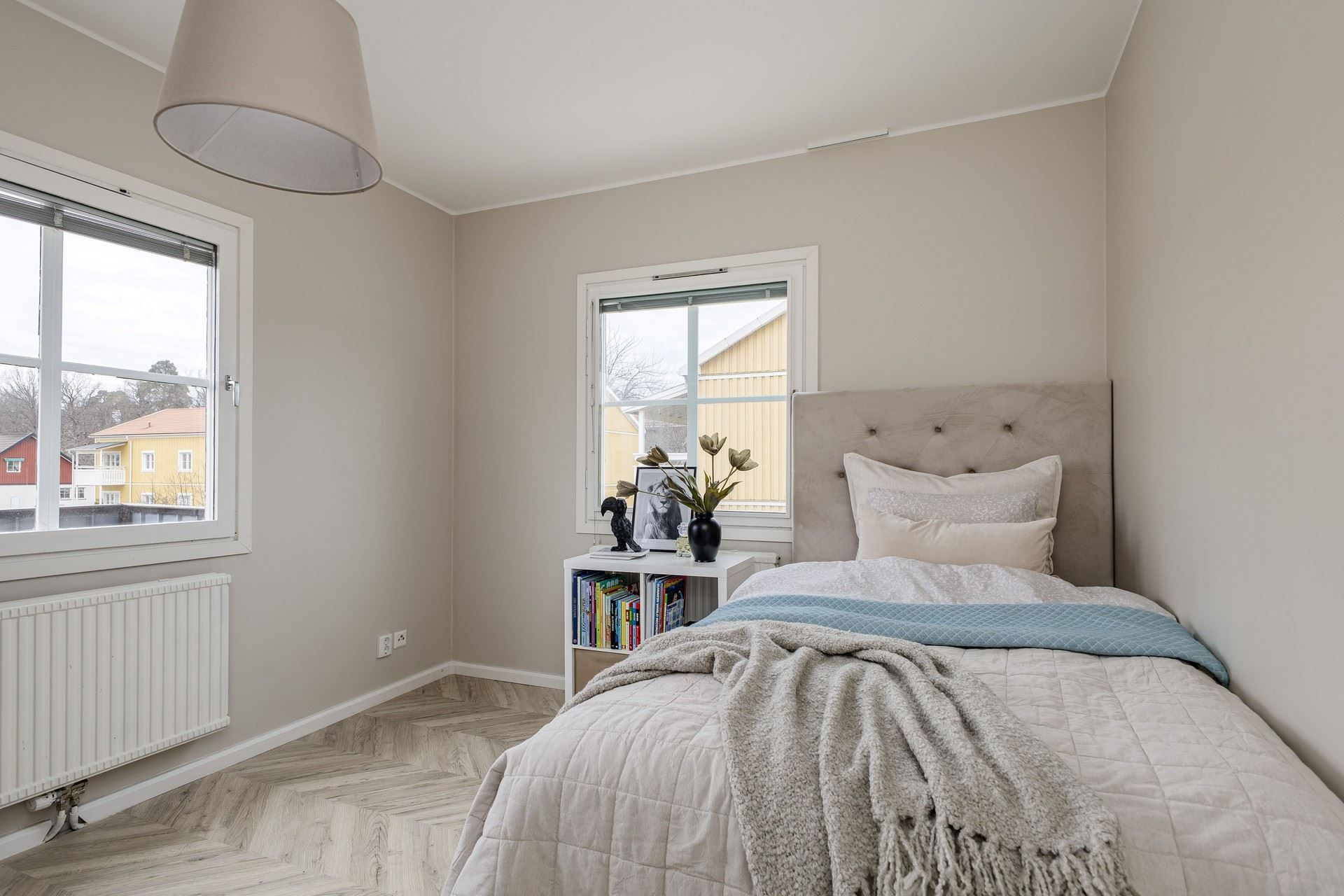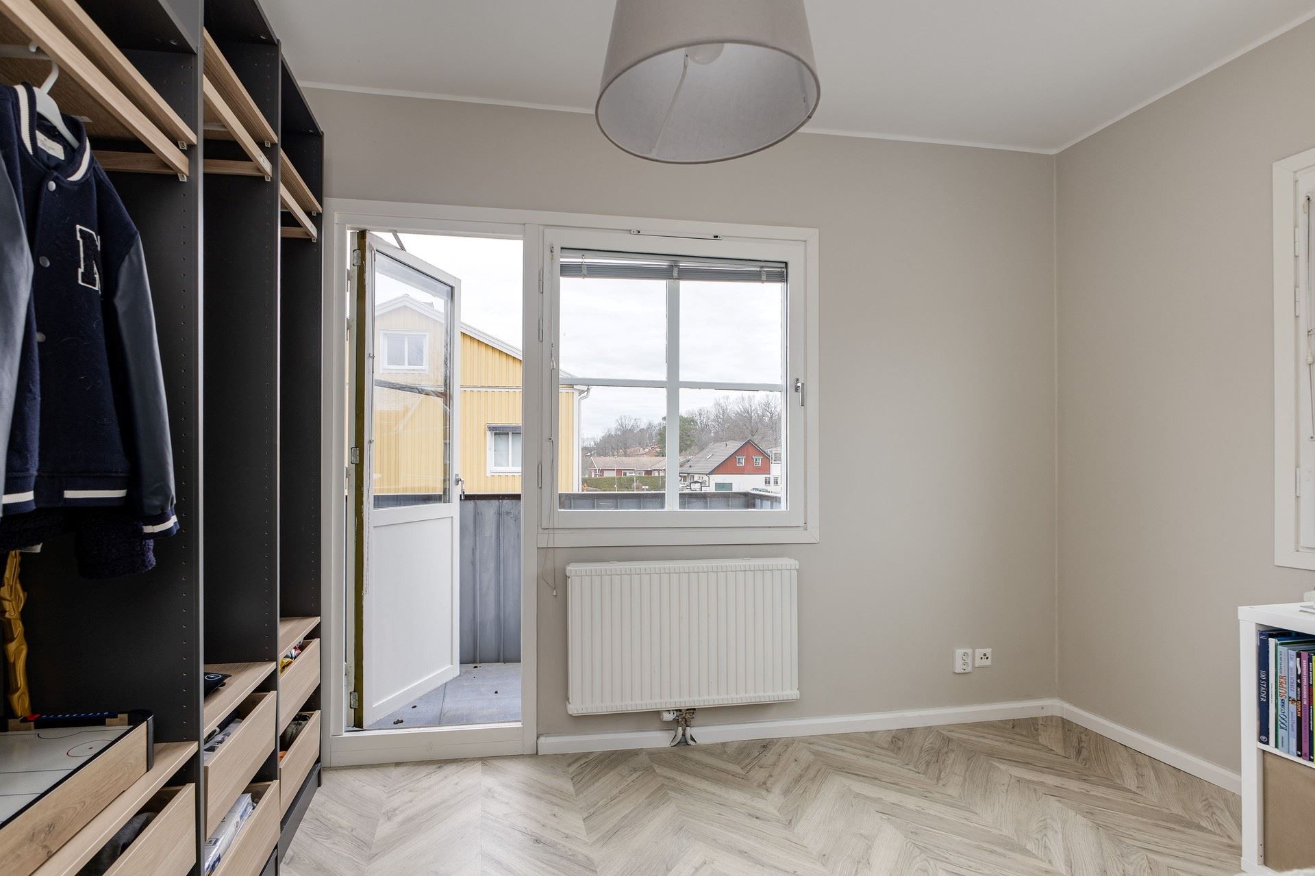 Bostaden erbjuder totalt tre rymliga sovrum med goda förvaringsmöjligheter. Två av rummen har direkt anslutning till balkonger i både morgon- och kvällssol, vilket skapar fina möjligheter att njuta av dagens alla timmar. Husets vind är inredd och fungerar utmärkt som allrum, gästrum eller hemmakontor. Ett flexibelt utrymme som anpassas efter dina behov.