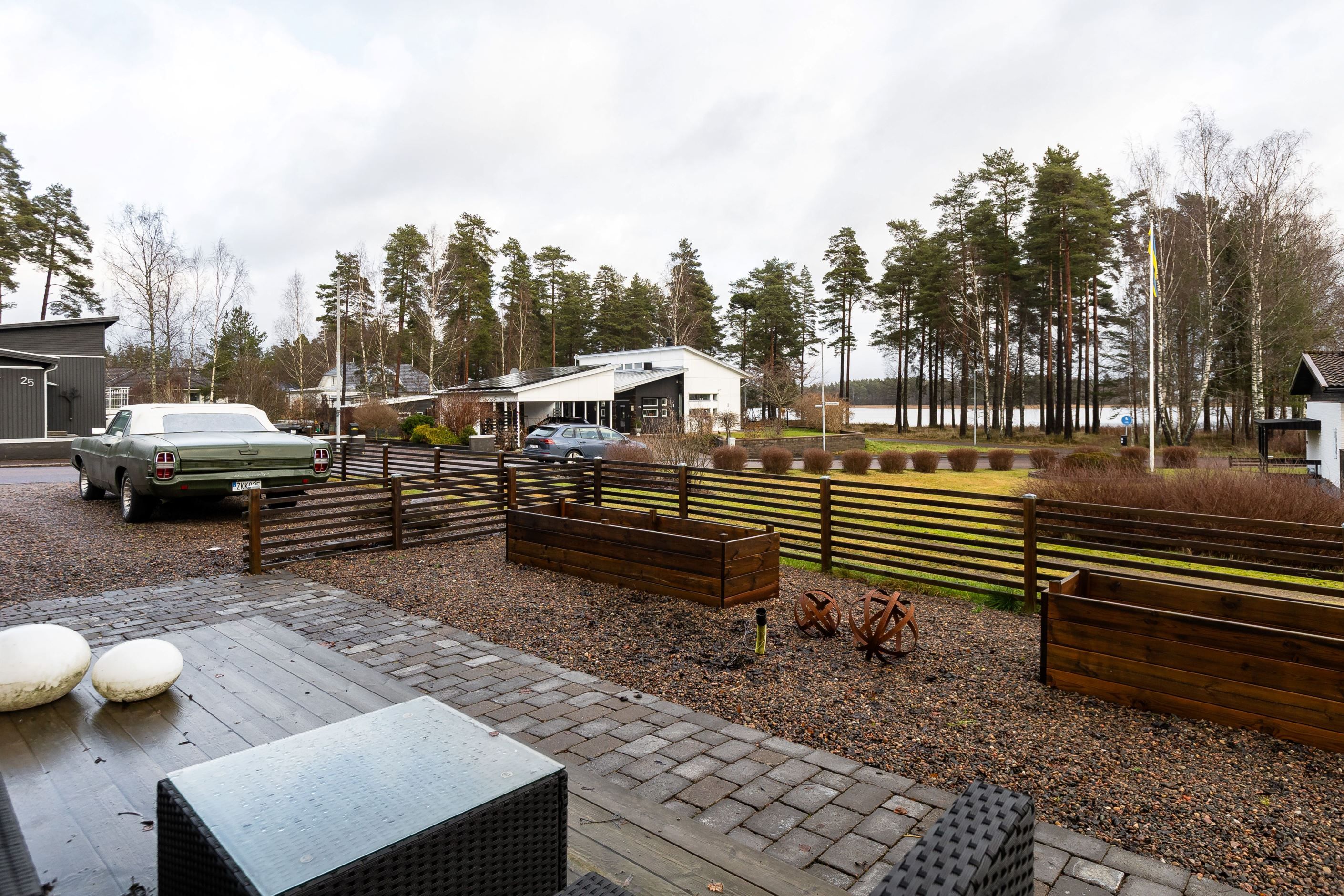 Här bor man privat på lugn återvändsgata med naturen och Hjortsjöns bad och vackra omgivningar runt hörnet. Barn kan leka tryggt och fritt i trädgården då ytan gör det möjligt att hålla god uppsikt. Den som flyttar in här har en uppvuxen grönskande och blommande trädgård att åtnjuta sommartid och som granne med grönområde erbjuds dessutom mer att utforska precis utanför tomtgränsen. Med uteplats både på framsida och uterum från vardagsrum ges möjligheter att följa solens strålar runt huset under dagen.