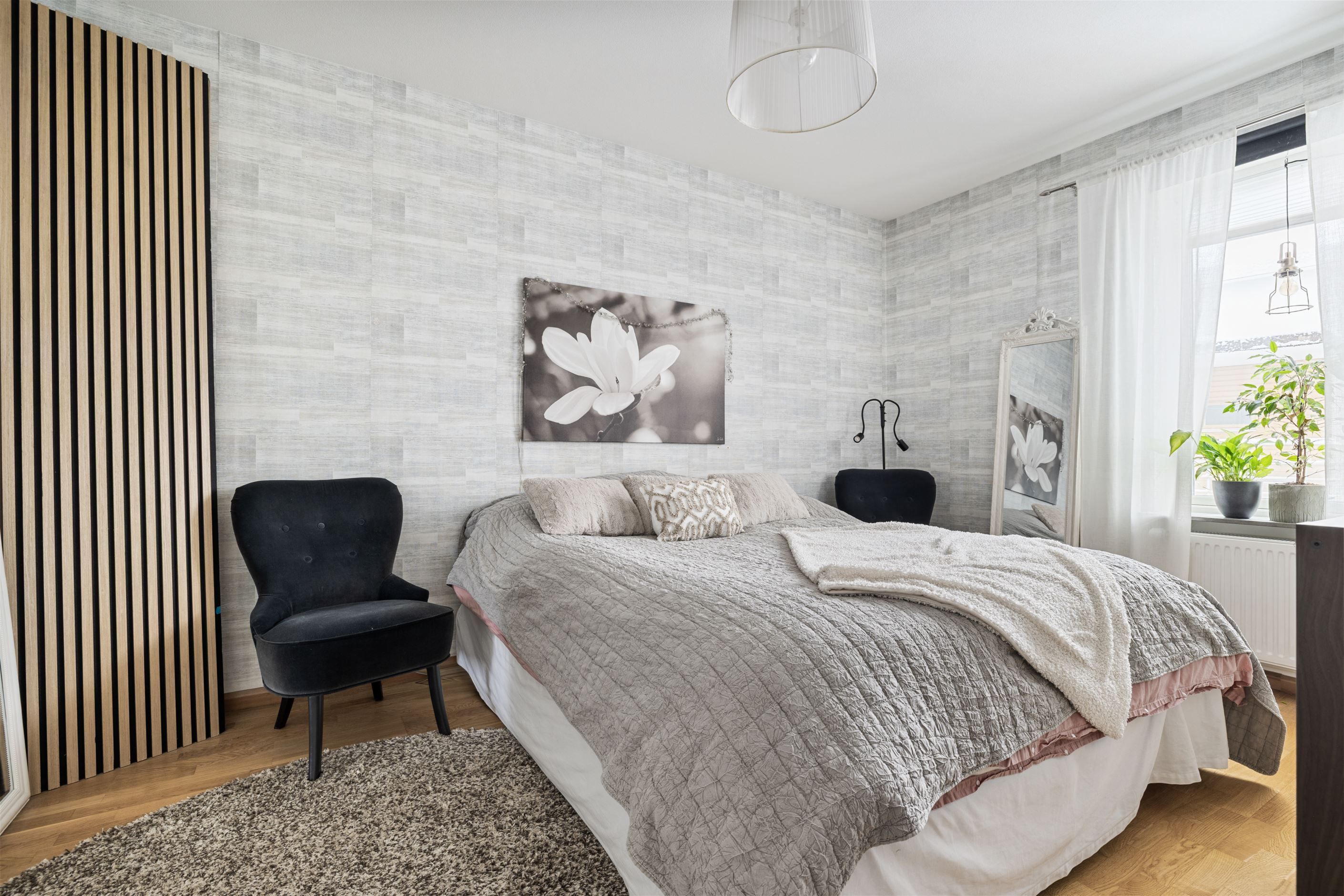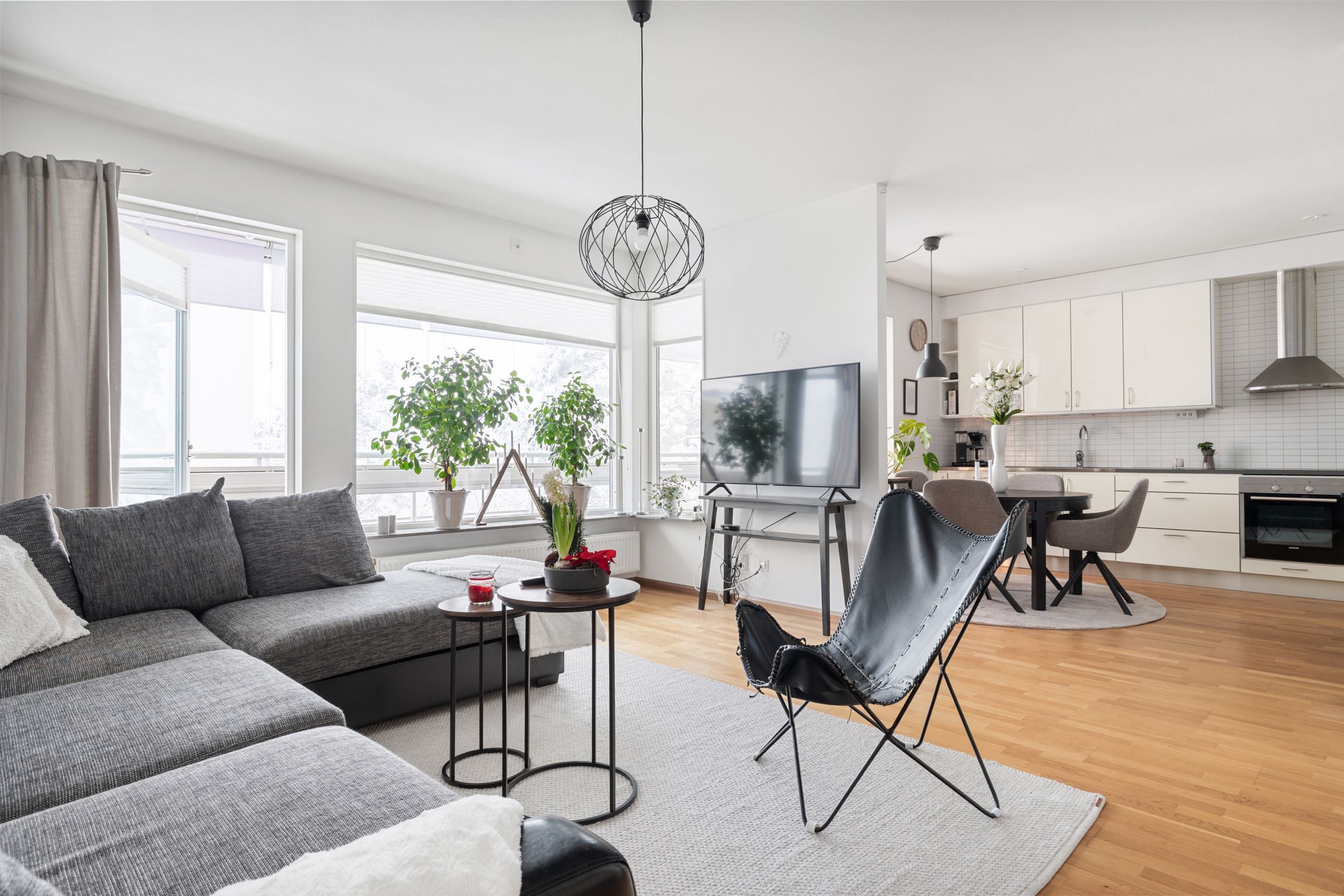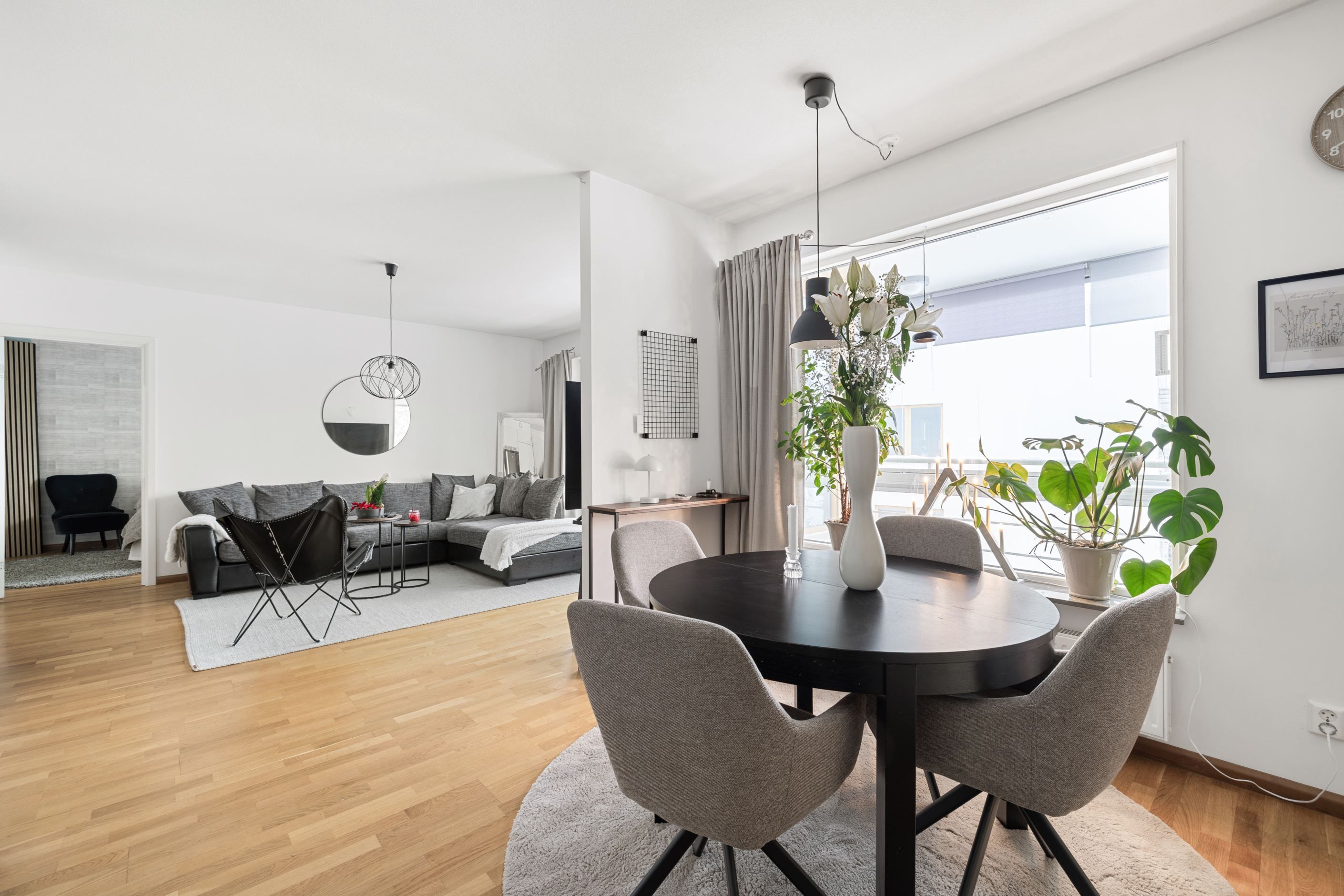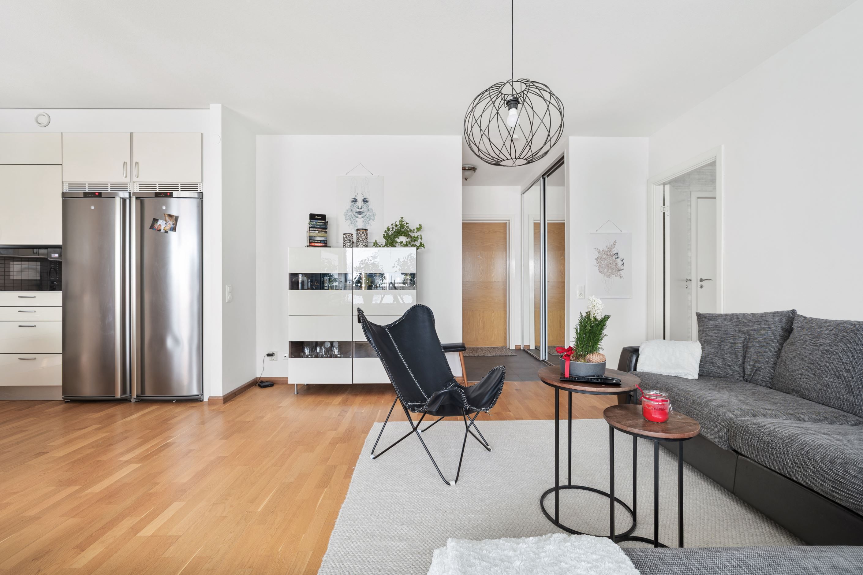 Bostaden präglas av rymd och smakfulla materialval. Det moderna, ljusa köket har en naturlig plats för matbord och ligger i direkt anslutning till den generösa inglasade balkongen – en fantastisk förlängning av bostaden med härlig utsikt och plats för både vardag och umgänge stora delar av året. Köket öppnar upp mot vardagsrummet i en social och öppen planlösning som skapar ett luftigt flöde och fina sällskapsytor. Här finns även ett rymligt sovrum med goda förvaringsmöjligheter samt ett stilrent, helkaklat badrum i ljusa toner.