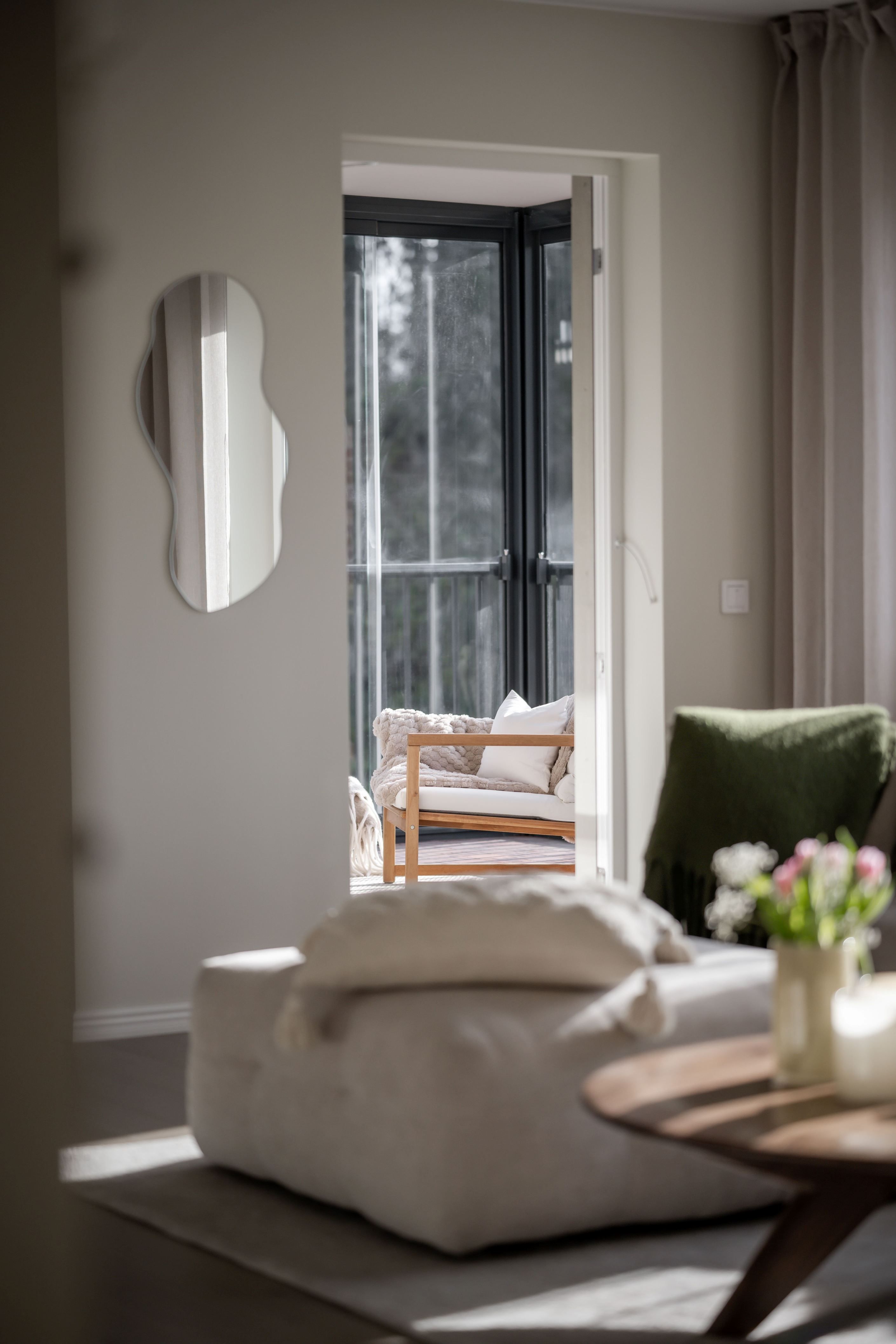 Stora fönsterpartier släpper in rikligt med ljus och förstärker bostadens rymd. Härifrån når du även den generösa inglasade balkongen om 16 kvm – en perfekt förlängning av hemmet som kan nyttjas året om. Bostaden erbjuder även ett rymligt sovrum med goda förvaringsmöjligheter samt ett stilfullt helkaklat badrum där golvvärmen, dusch med glasväggar och smart tvättlösning ger en helhet av både lyx och praktisk användning.