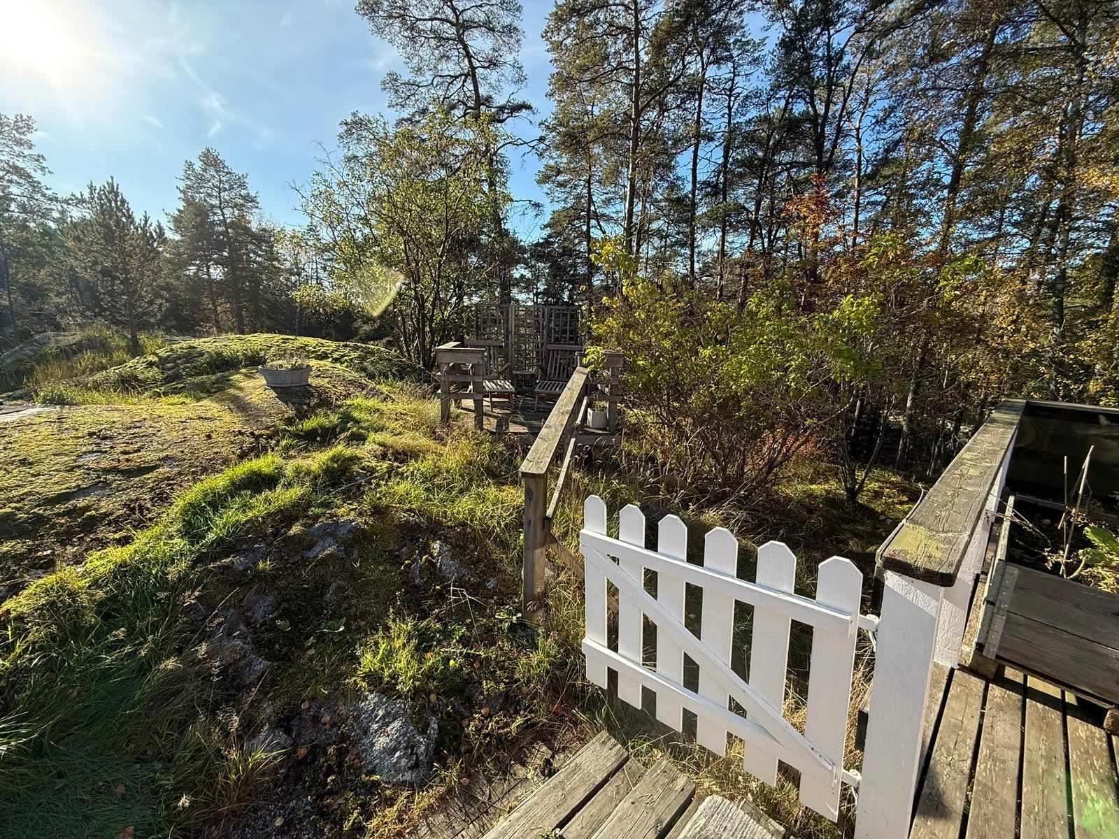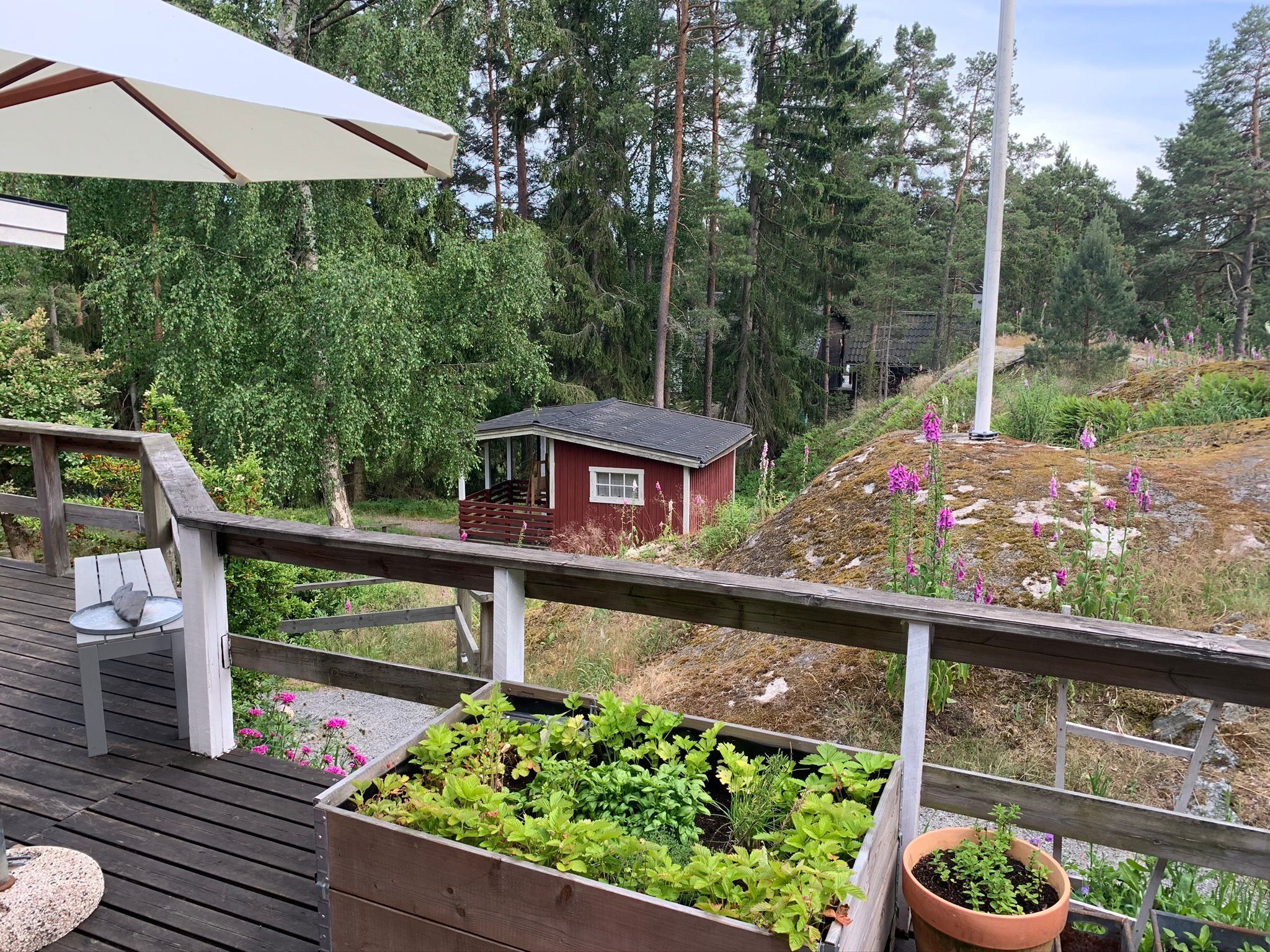 Njut av ett högt fint läge södervänt placerad på ett berg med närhet till hamnen, båtplatser och bad.
