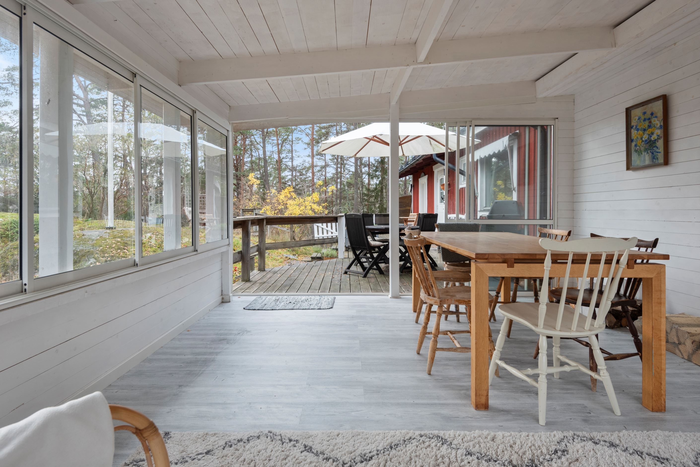 Mysigt huvudhus med stora umgängesytor i form av kök, vardagsrum och uterum. Njut även av långsmal altan i söder, braskamin. Tillgång till båtplats vid bryggan. Exklusivt läge med närhet till allt i skärgården. Området Trackersvik ligger mycket skyddat på Djurö - Vindö med endast en infart som är försedd med bom med kod. Allt du önskar är samlat på ett och samma ställe!