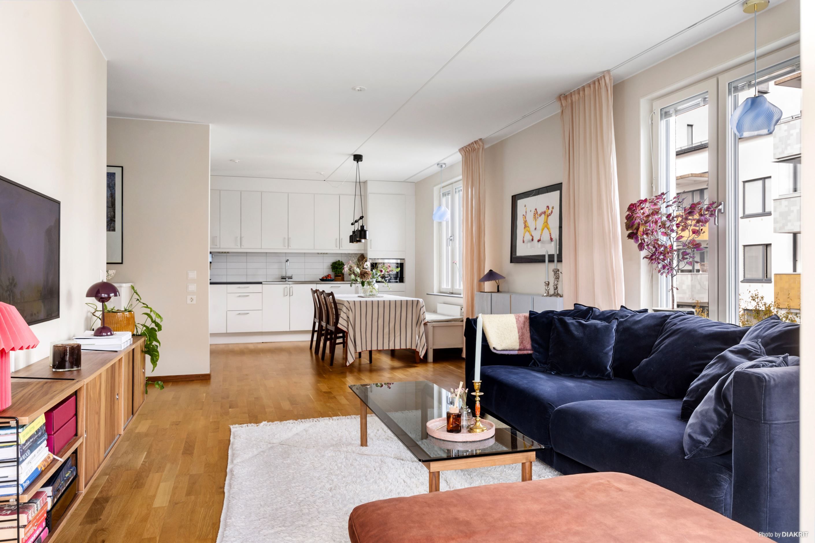 KOMMANDE FÖRSÄLJNING! Ljus, väldisponerad och fin hörn-3:a med balkong och en härligt öppen och social planlösning. Genomgående moderna och stilrena material- och färgval. Attraktivt läge endast ett stenkast från Mälaren och naturområden, samt mycket goda kommunikationer med t-bana och buss. Mycket bra förening med sällsynt god ekonomi och fastighet med såväl hiss som garage och övernattningslägenhet för gäster. Barnvänligt område med närhet till såväl förskolor och skolor som populära lekparker m.m.