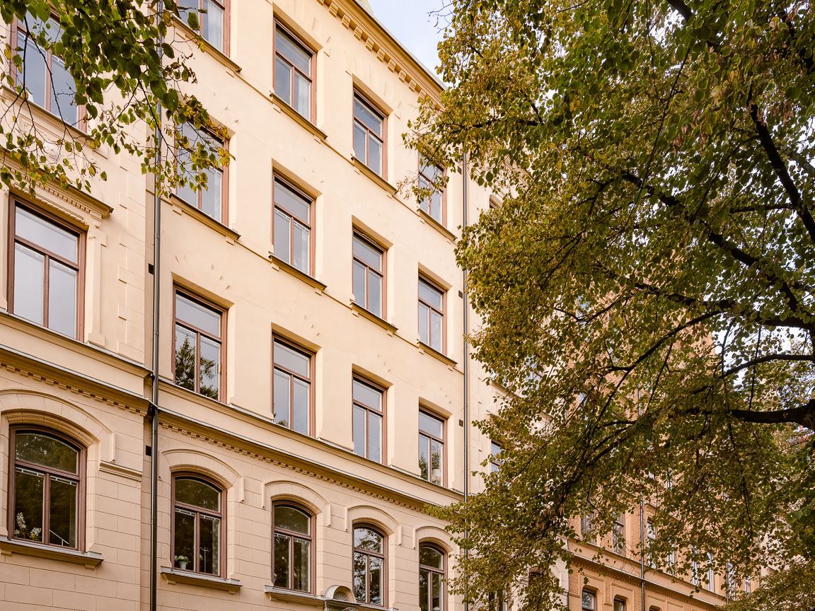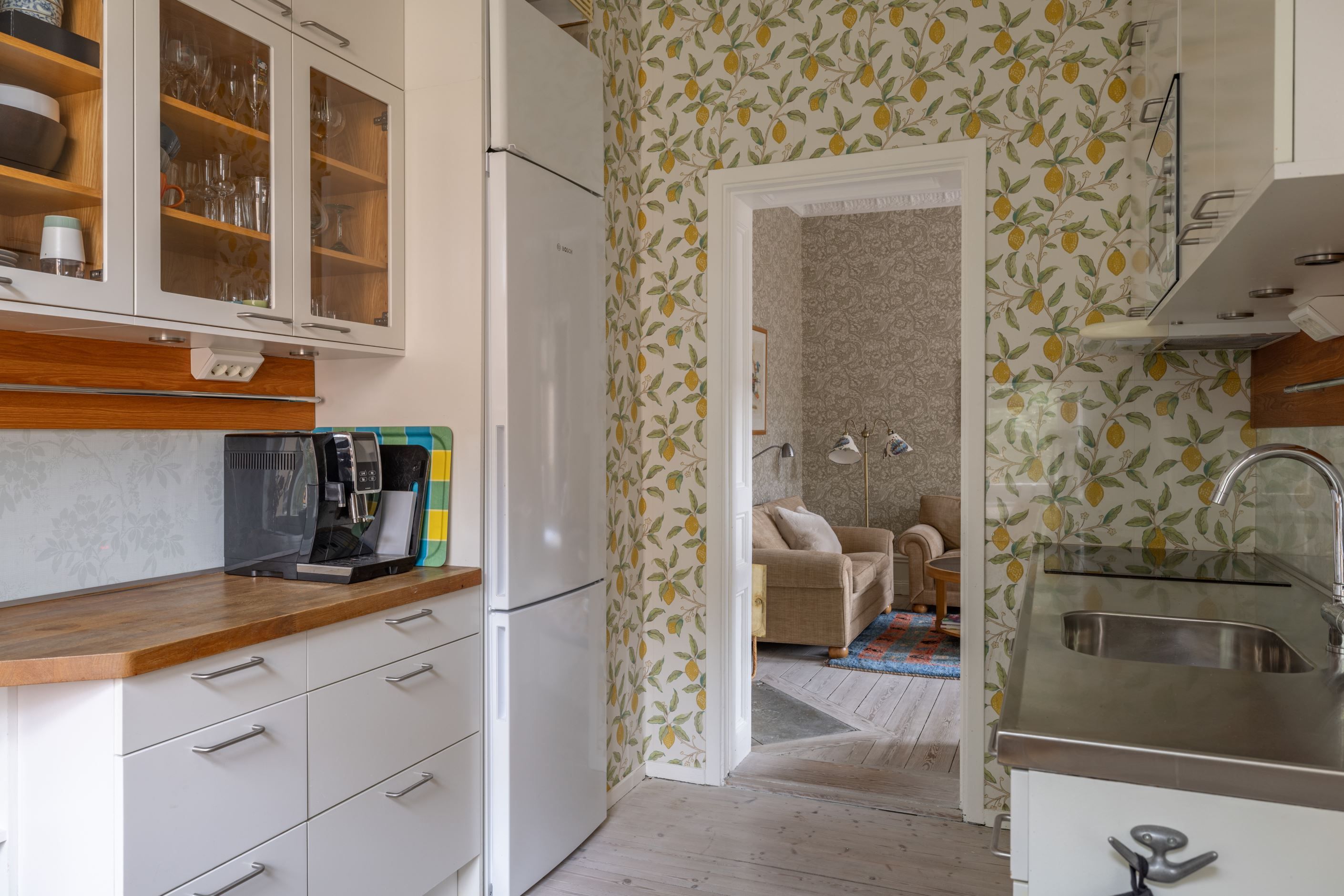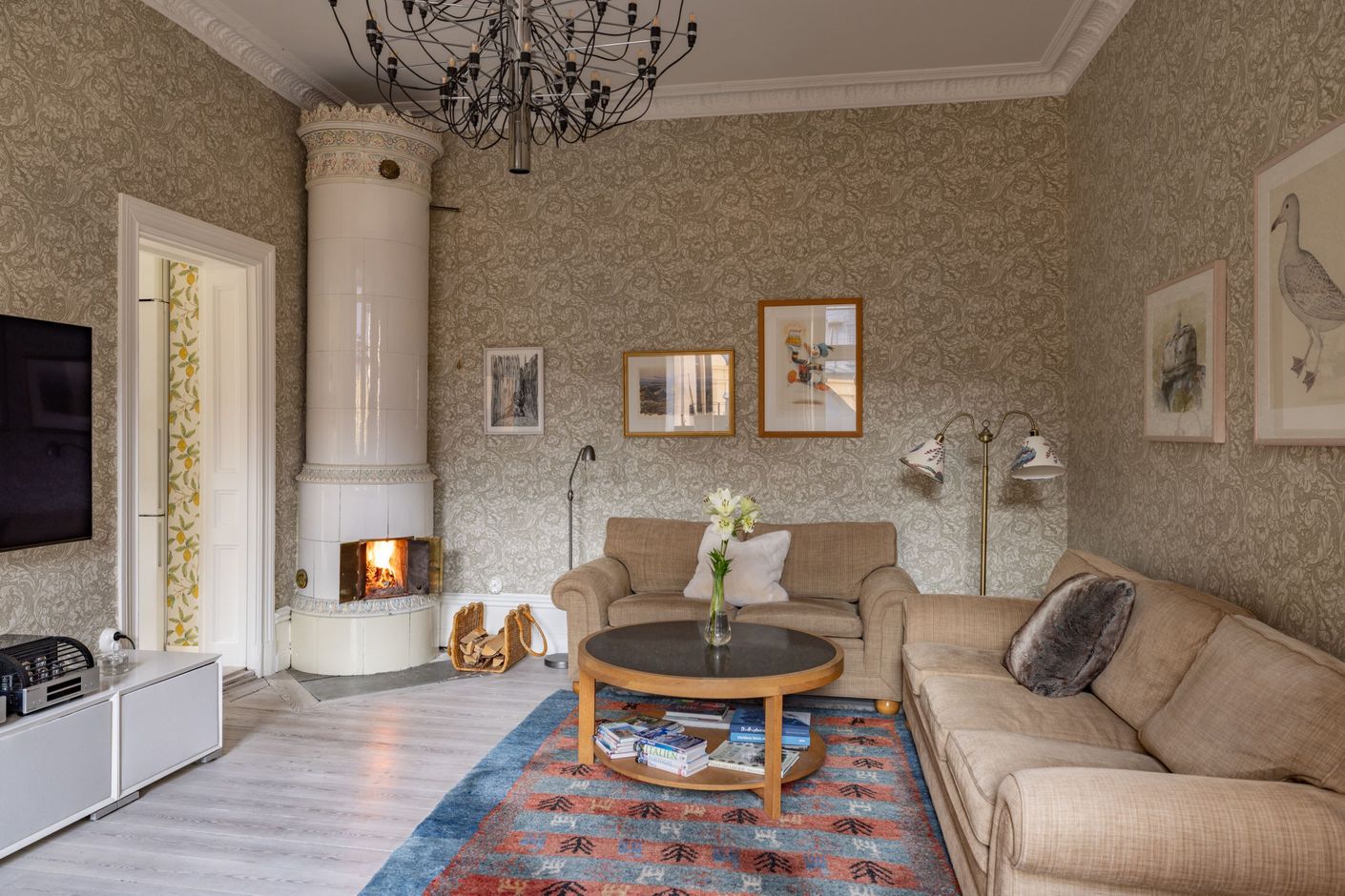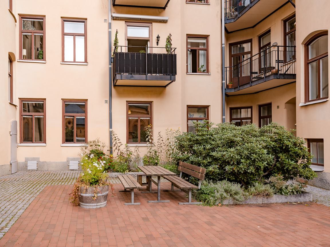 Bostaden kombinerar vackra originaldetaljer med modern livskvalitet. Generös takhöjd, fungerande kakelugn, vackert trägolv i original samt fönster i två väderstreck skapar en ljus och luftig känsla. Från sovrummet nås en stor balkong med bra solläge – perfekt för långa frukostar eller en härlig stund i solen under dagen. Utsikten mot den nyrenoverade St Paulskyrkan ger ett extra lugn och karaktär. Planlösningen är genomtänkt med rymliga rum och gott om plats för både vardagsliv och umgänge.
