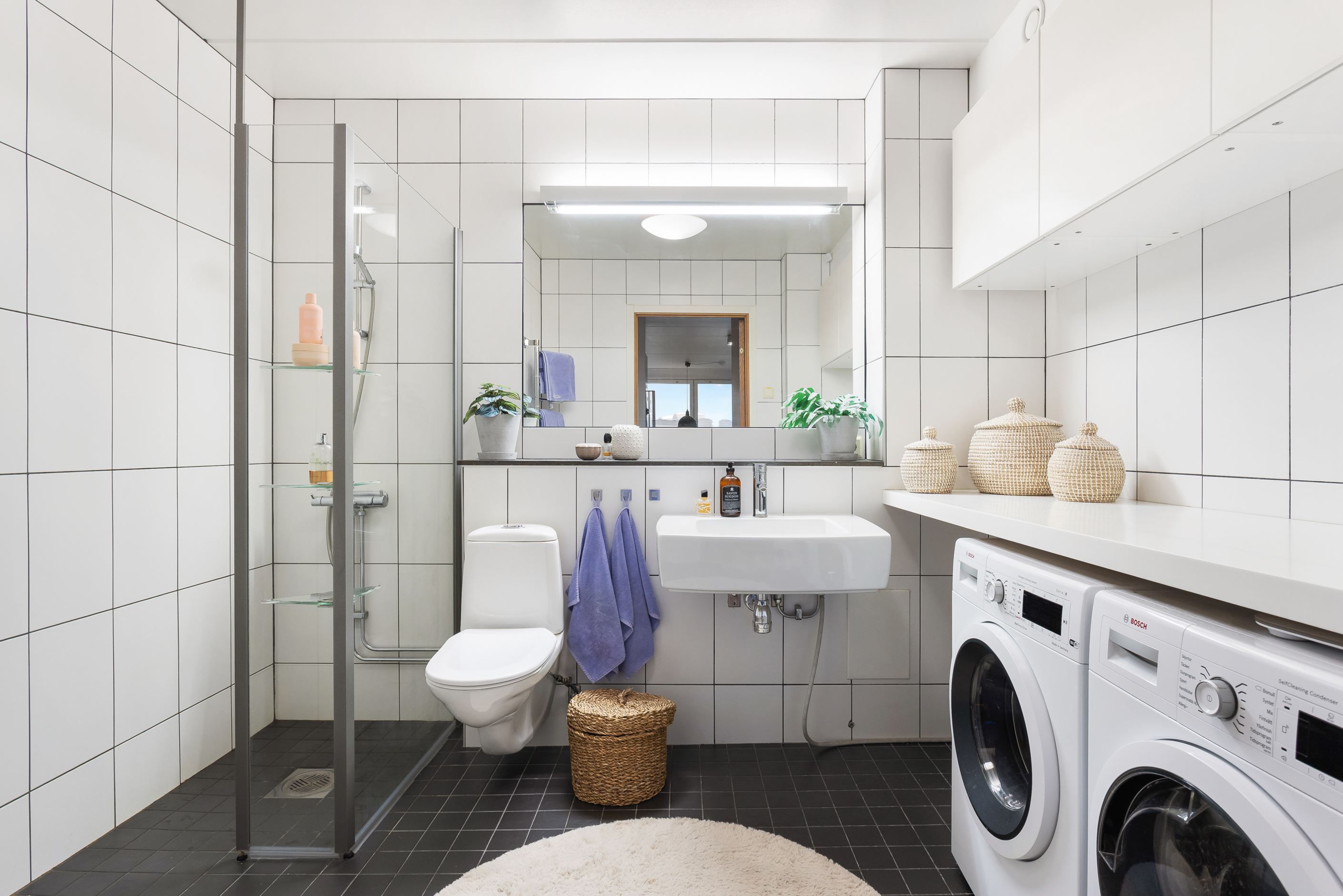 Rymlig dusch och både tvättmaskin och torktumlare