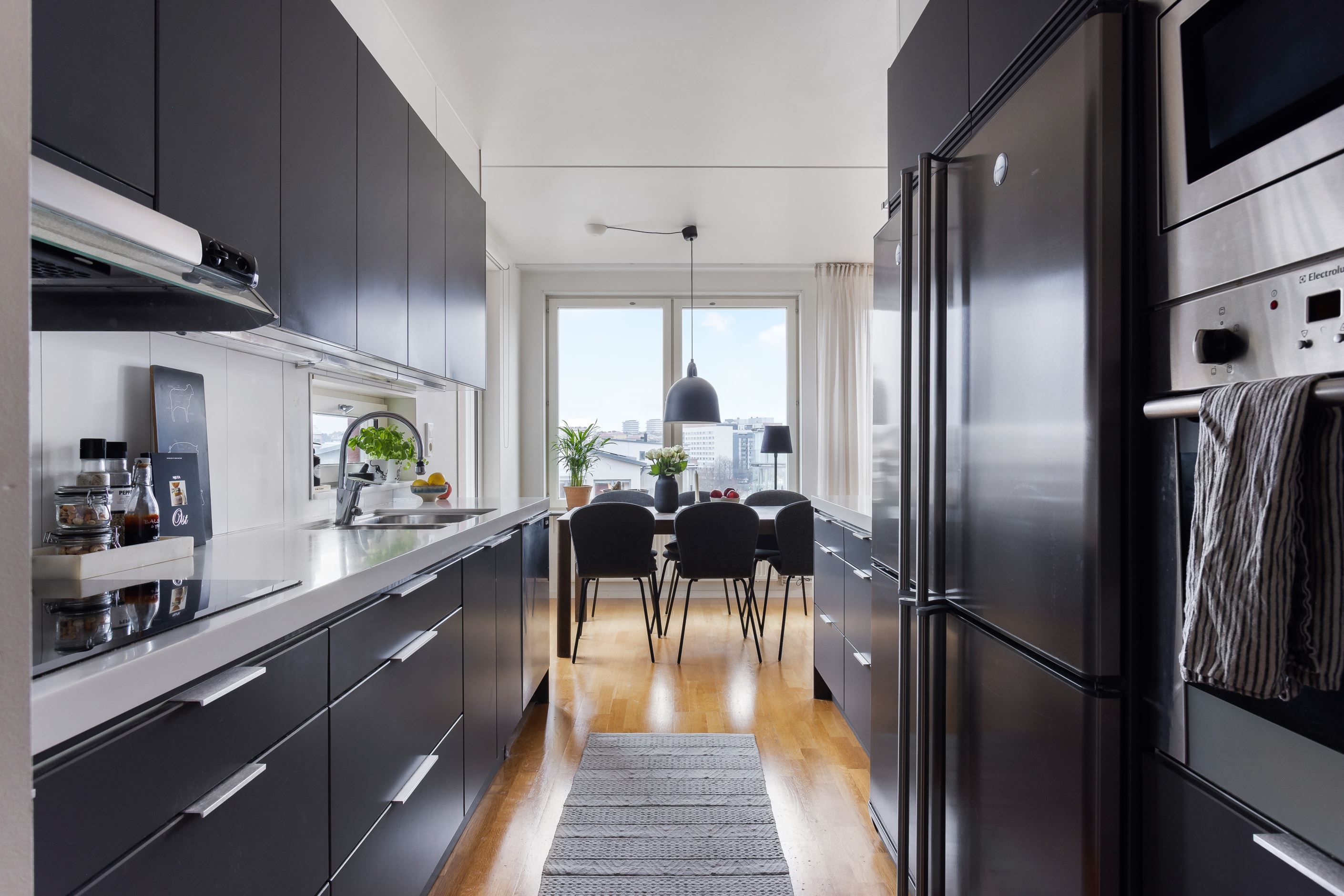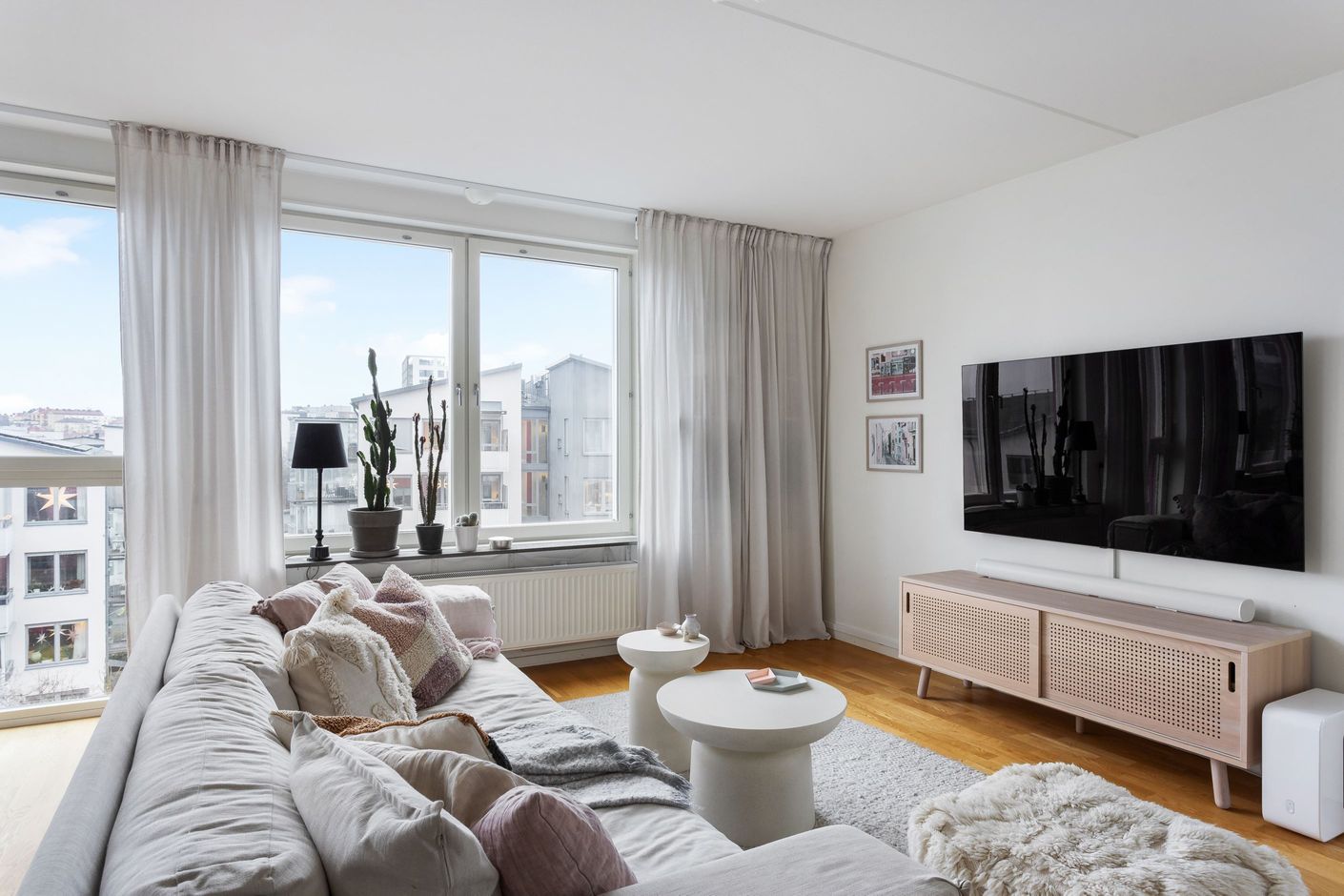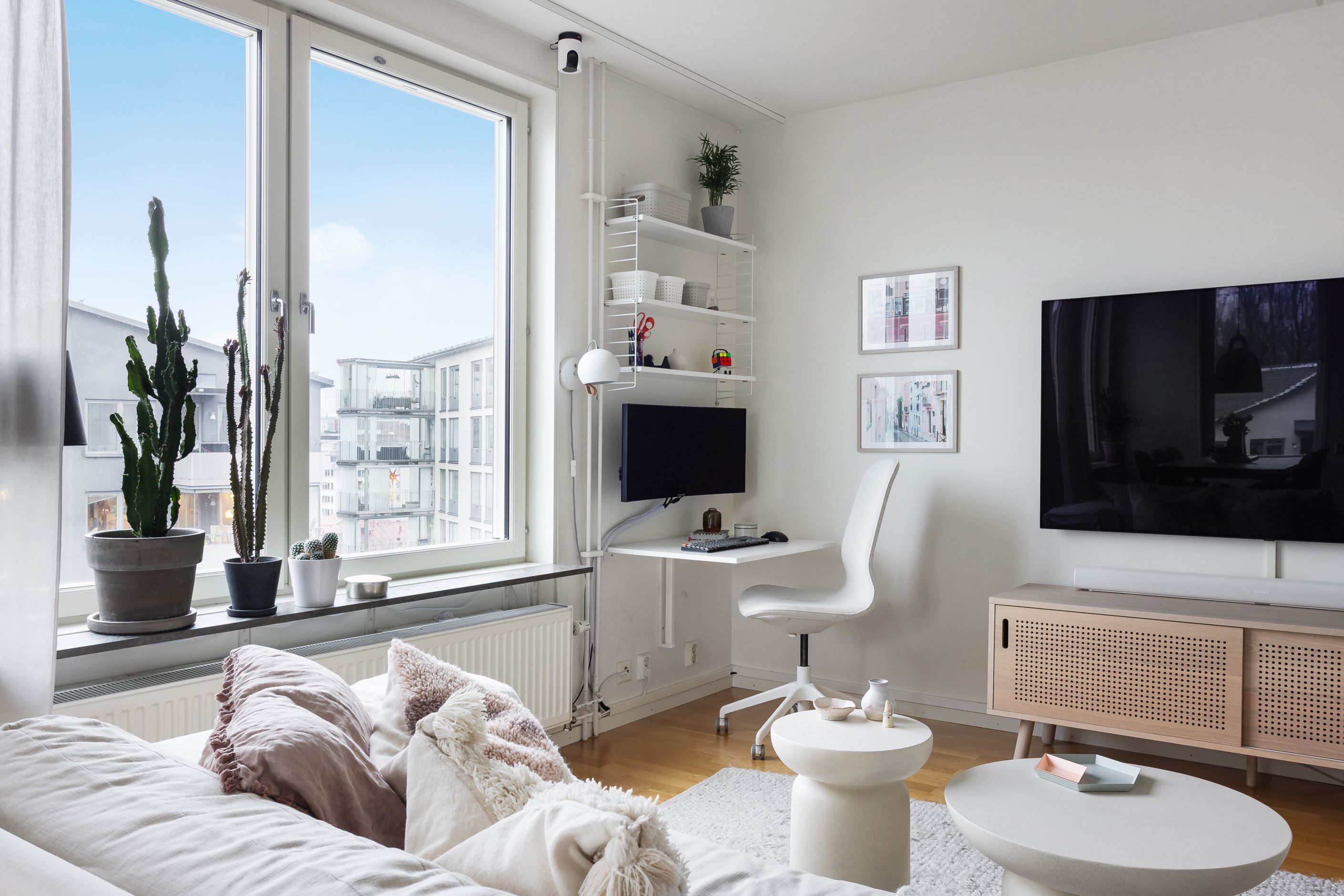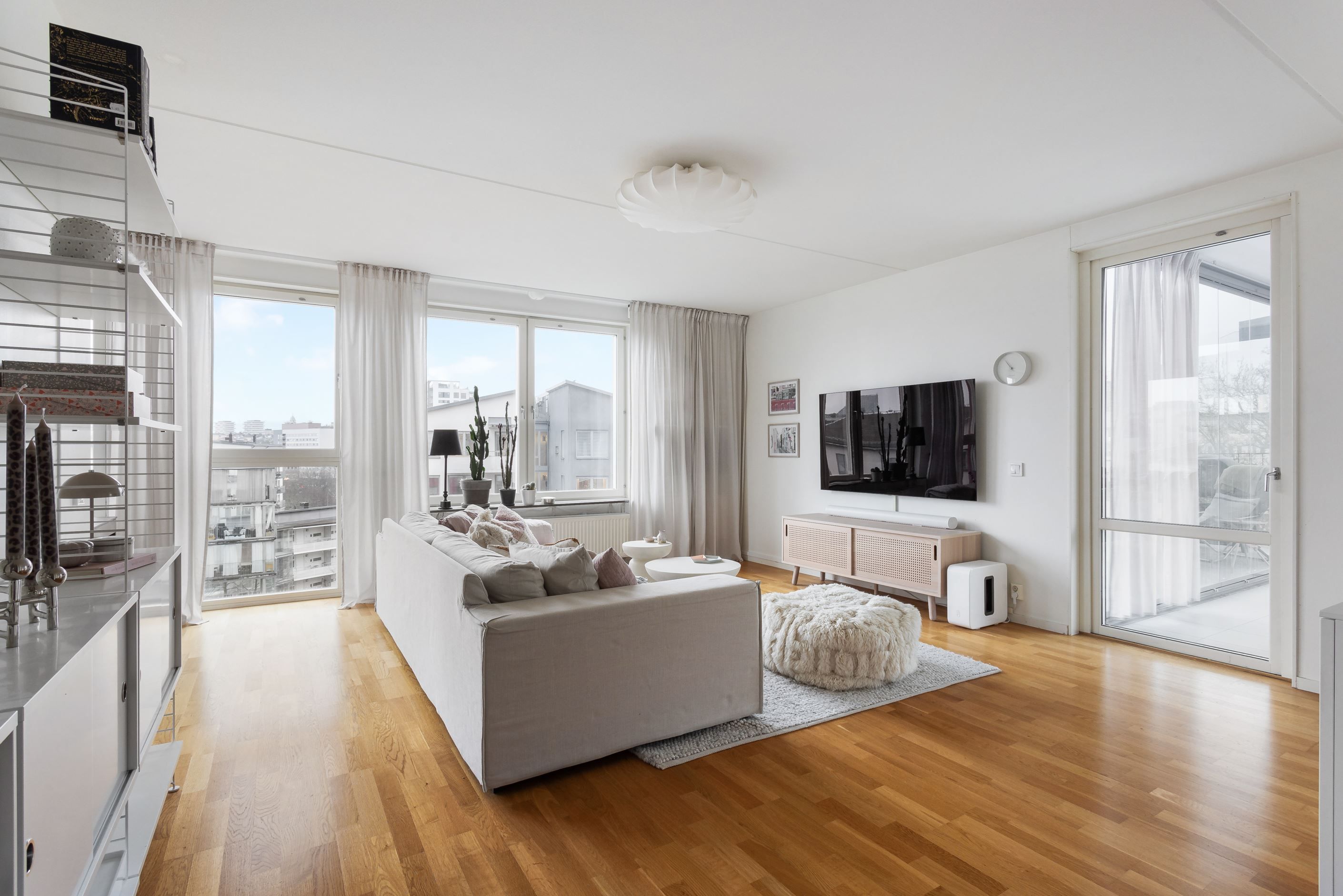 Ett hem som kombinerar smart planlösning, moderna bekvämligheter och ett fantastiskt läge. Denna väldisponerade 3:a erbjuder öppna sociala ytor där vardagsrum och kök smälter samman i en inbjudande planlösning, perfekt för både vardagsliv och middagar med vänner. Ljuset strömmar in genom stora fönster i flera väderstreck och kronan på verket är den stora, inglasade balkongen i soligt läge med fri utsikt över Sundbyberg och Bromma.