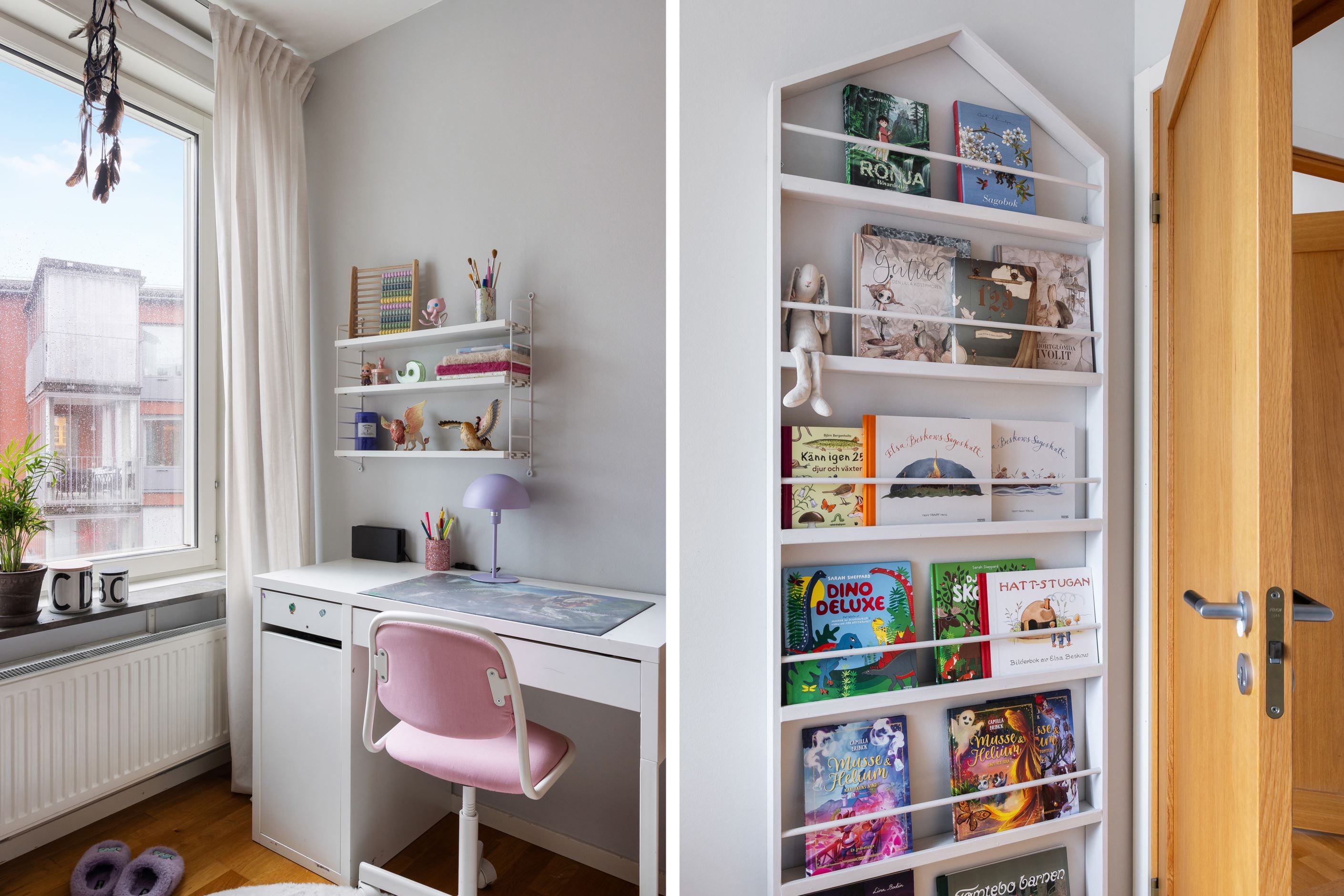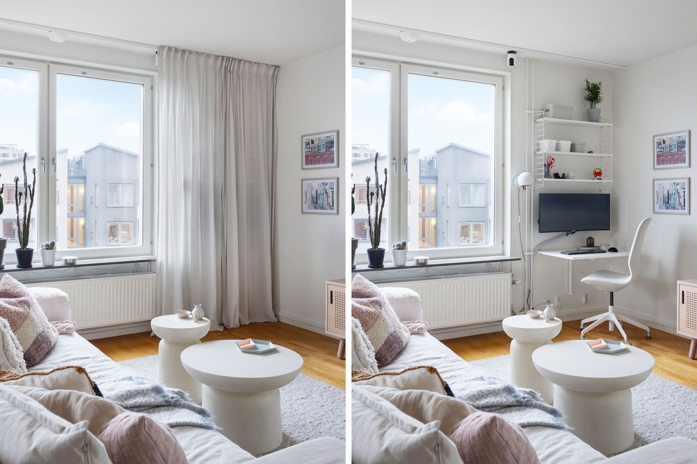 Arbetshörna som går att dölja med gardin