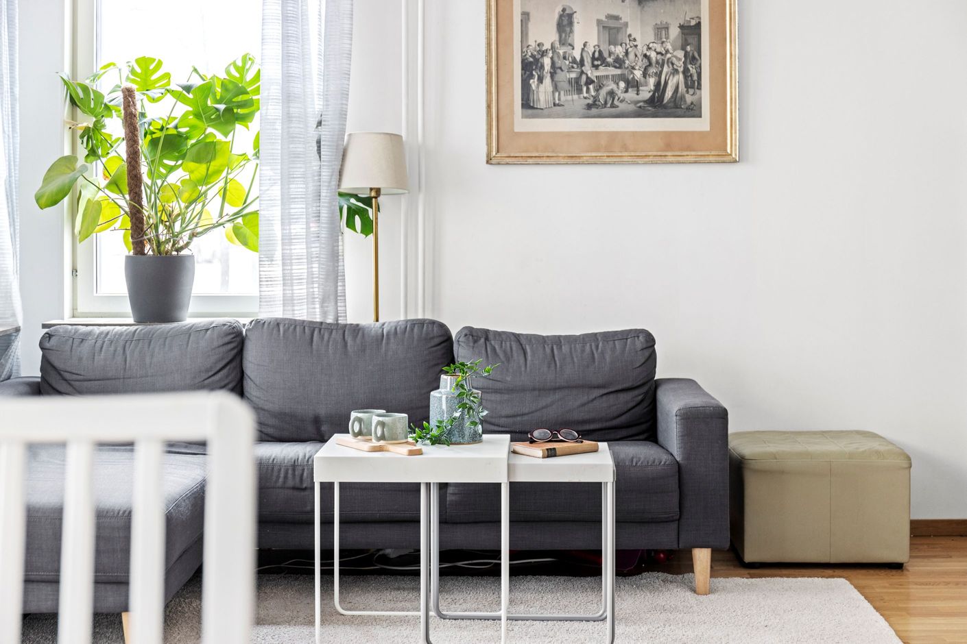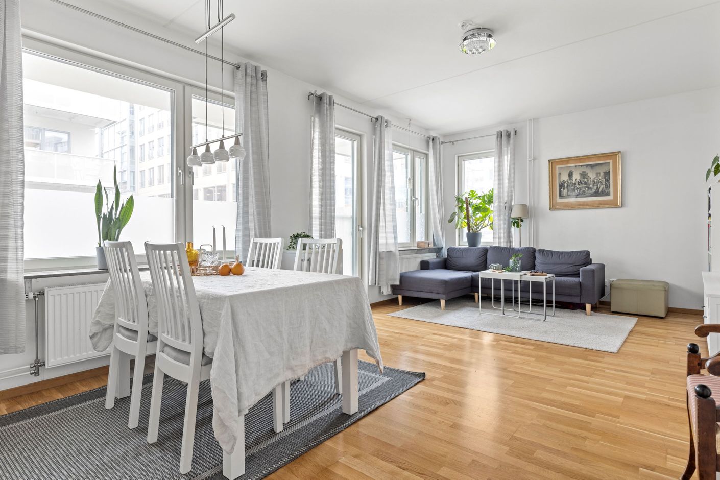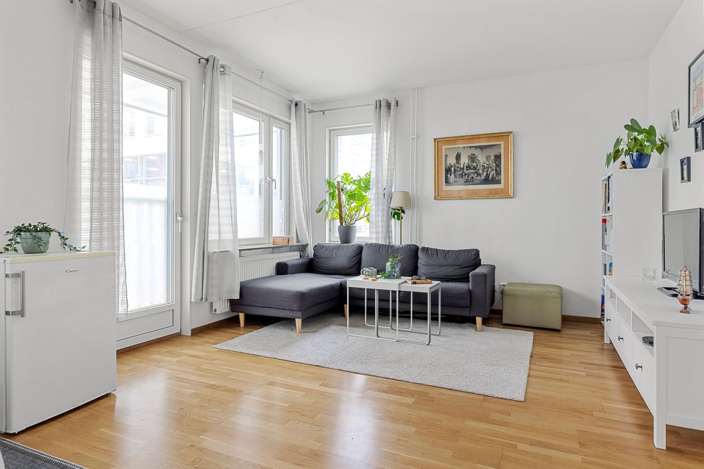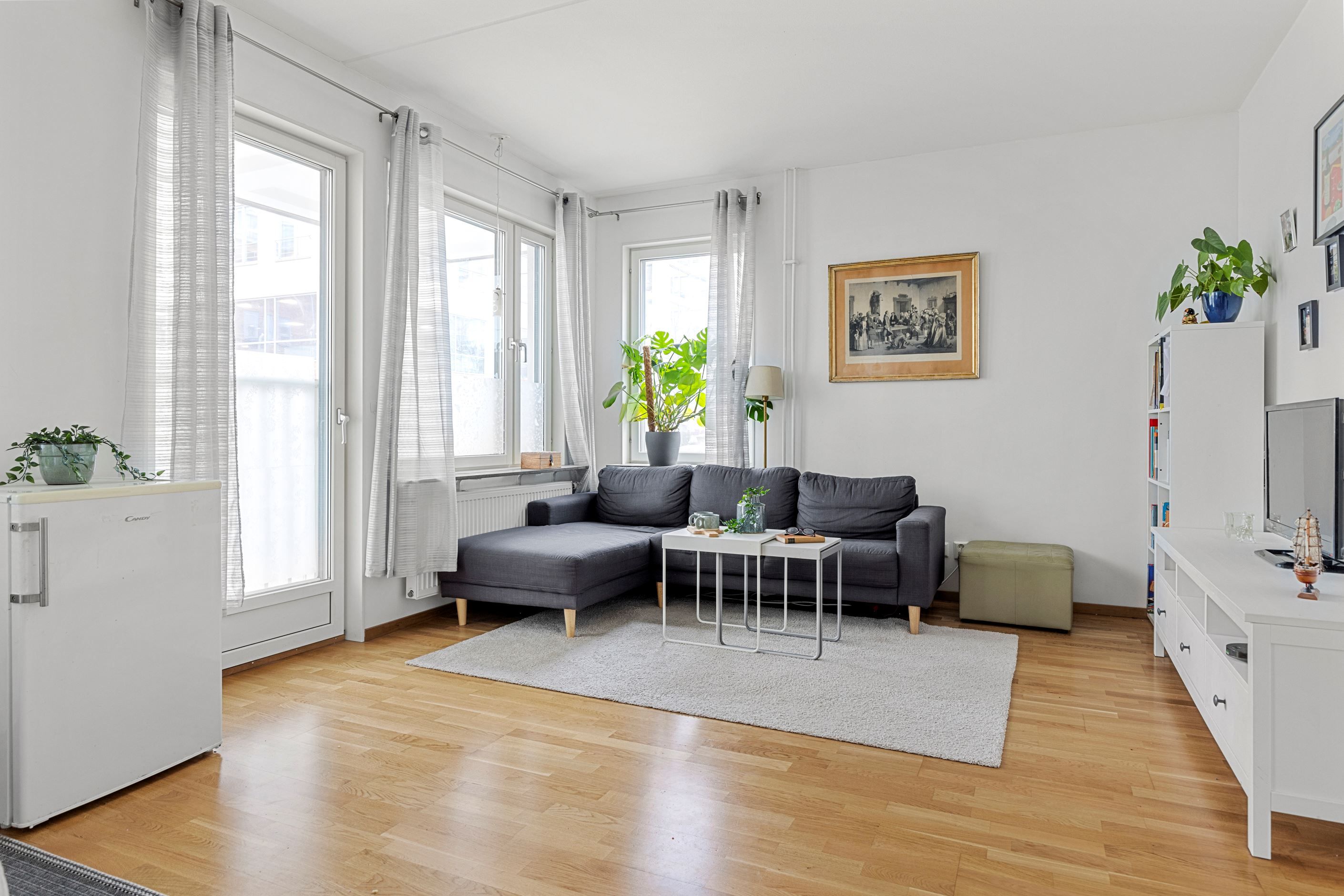 Trivsam och fin lägenhet med en ljus öppen planlösning mellan vardagsrum och kök som bidrar till en social atmosfär. Vidare finns ett rogivande sovrum, en hall med mycket förvaring och rymligt badrum med tvättmaskin och torktumlare. En fransk balkong som är ett vackert tillägg till hemmet och stora fönsterpartier som ger ett trevligt ljusflöde och skapar extra rymd. Genomgående gott skick med ljusa och moderna färg- och materialval.