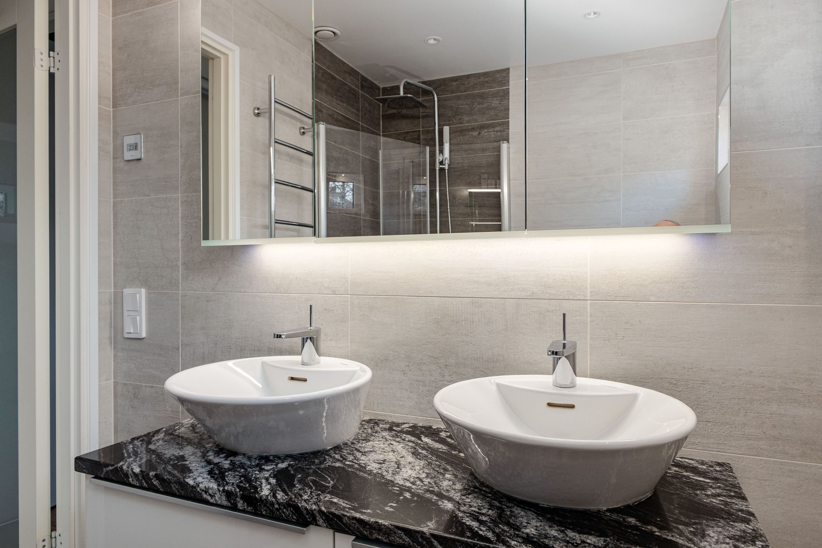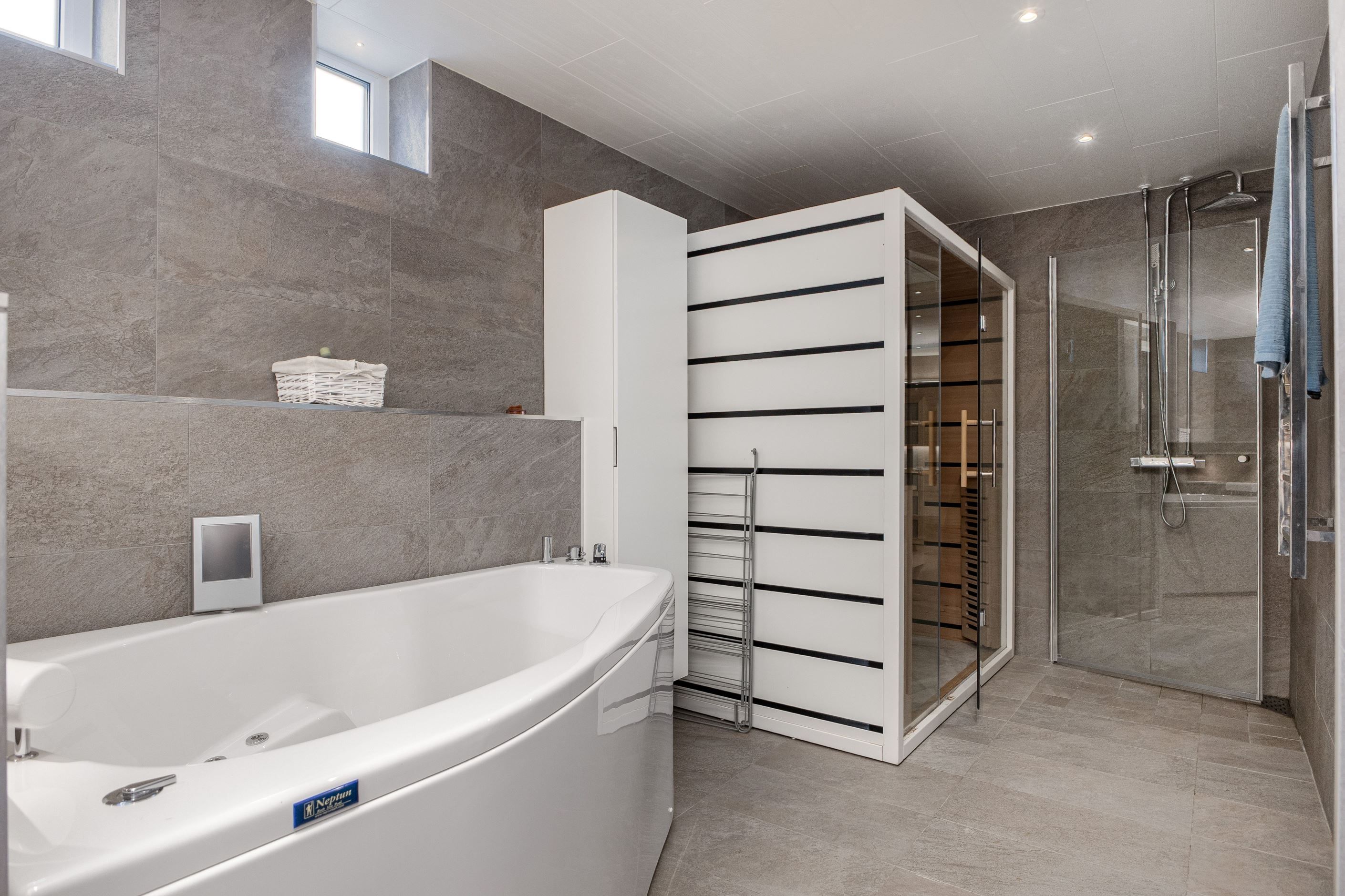 Sutterängplanet blir genast familjens privata sfär. En trappa ner väntar ett generöst allrum, perfekt för filmkvällar, lek eller gäster. Härifrån når du även uteplatsen som leder vidare ut i den omsorgsfullt planerade trädgården. Tre rymliga sovrum ger plats åt hela familjen och det påkostade badrummet i sutterängplanet bjuder på extra lyx i vardagen. Planlösningen kompletteras av en praktisk tvättstuga.
