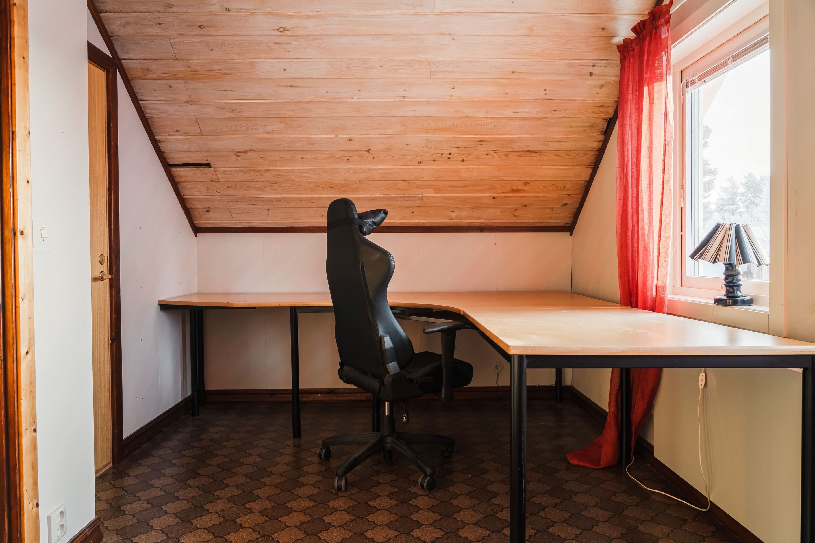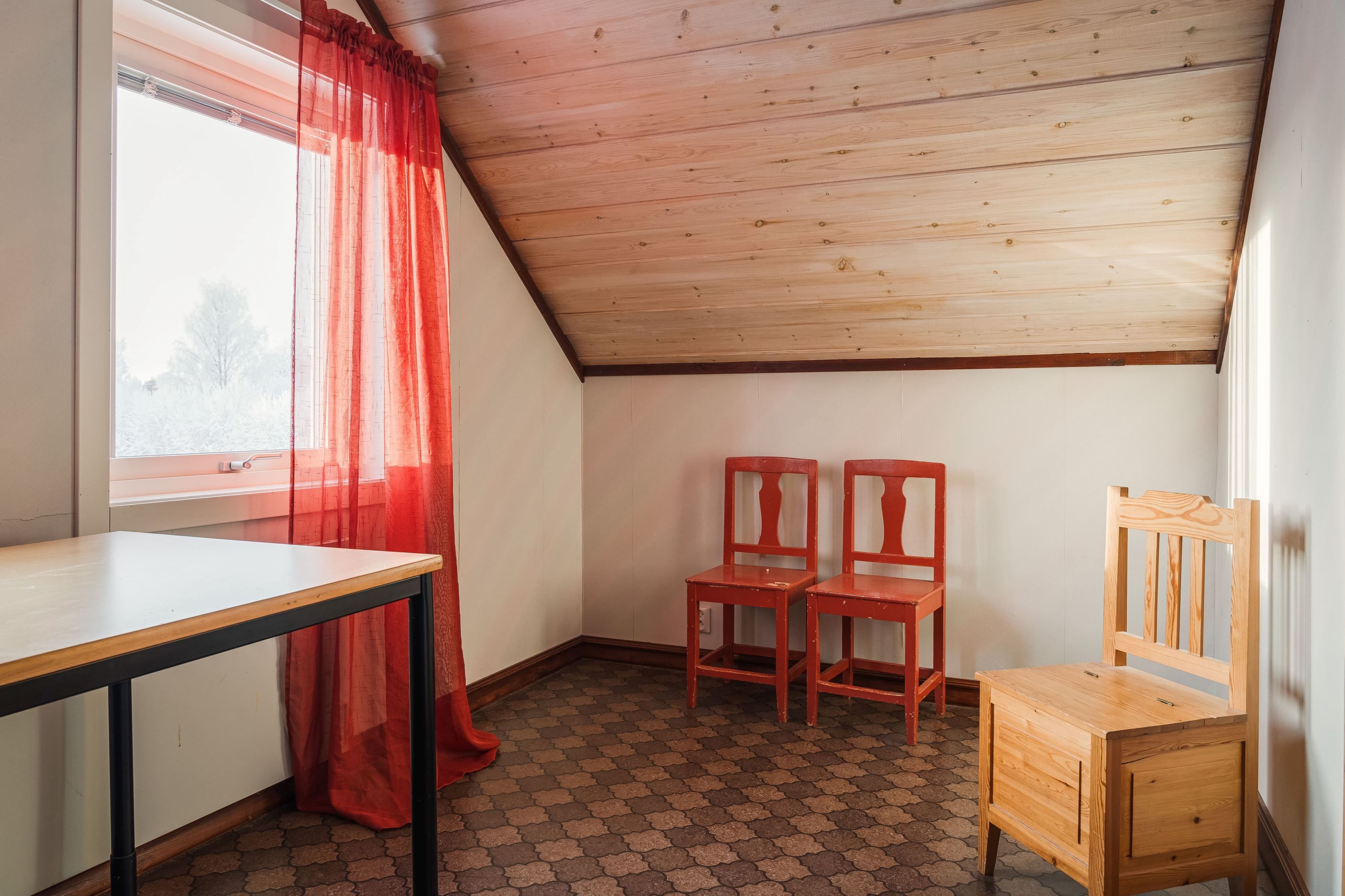 Villan erbjuder idag två sovrum på entréplan samt ett allrum som vid behov kan byggas om till ytterligare sovrum. På övre plan finns ytterligare ett sovrum med tillhörande klädkammare som med fördel kan inredas till badrum, samt ett stort allrum som enkelt kan delas av till fler sovrum vid behov.