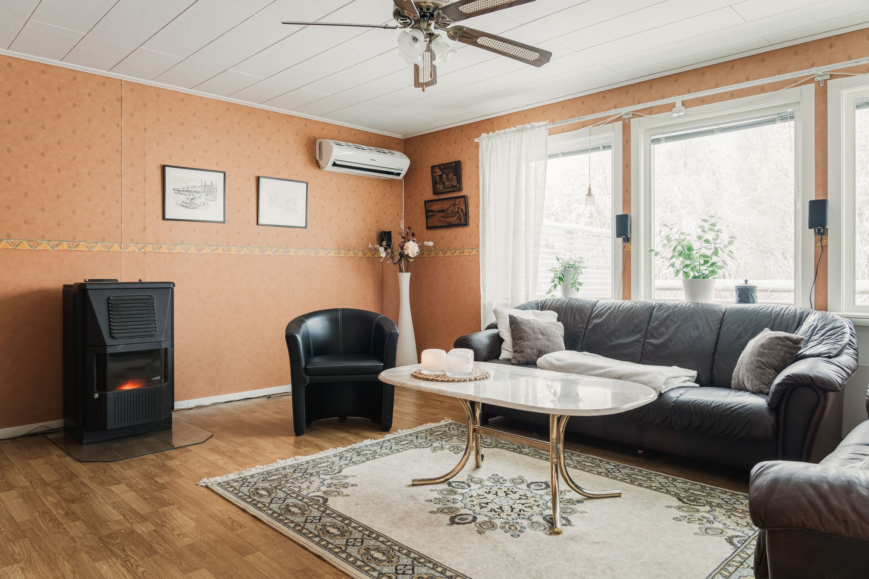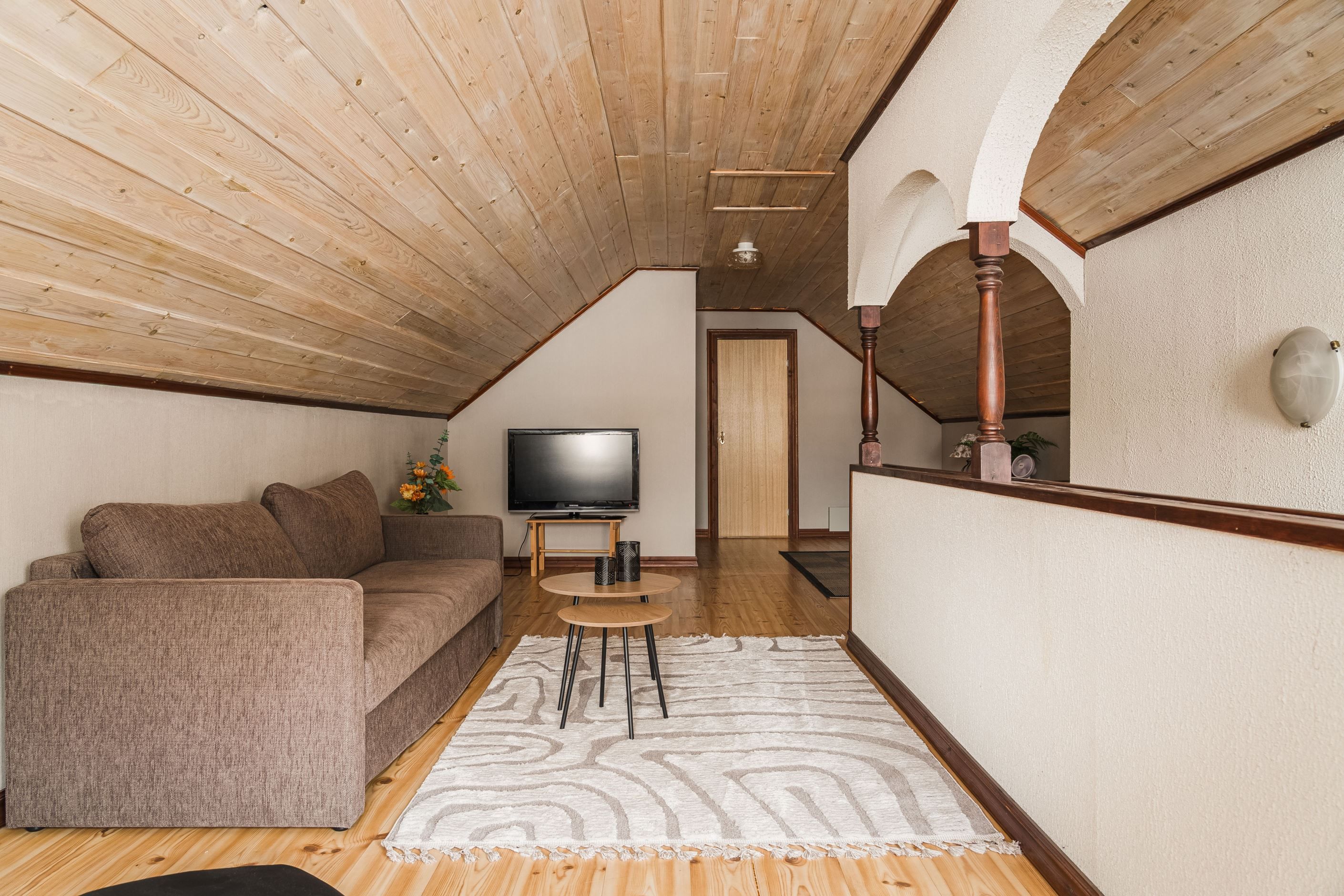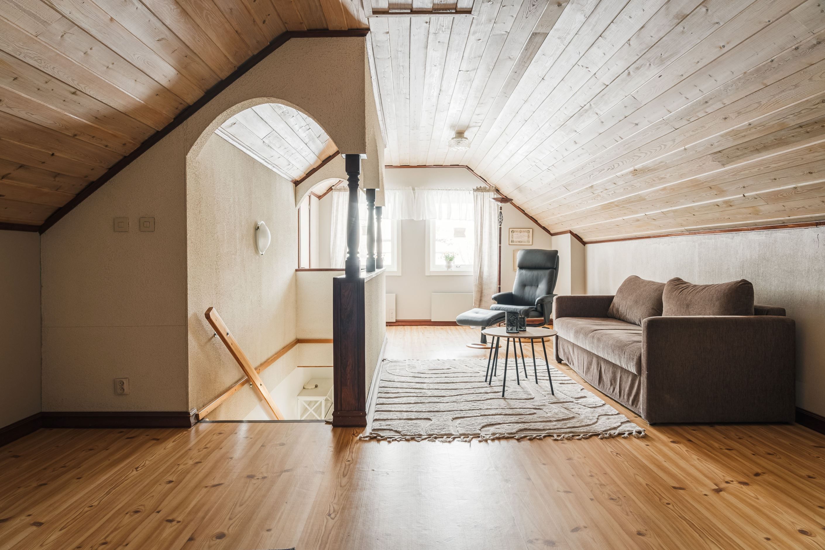 Praktiskt arbetskök med anslutande matplats och utgång till altanen. Vardagsrummet har en pelletskamin som ger både behaglig värme och extra mysfaktor. Badrum med bubbelbad och i ekonomidelen finns bastu, dusch och tillhörande relax med direkt utgång till altanen.