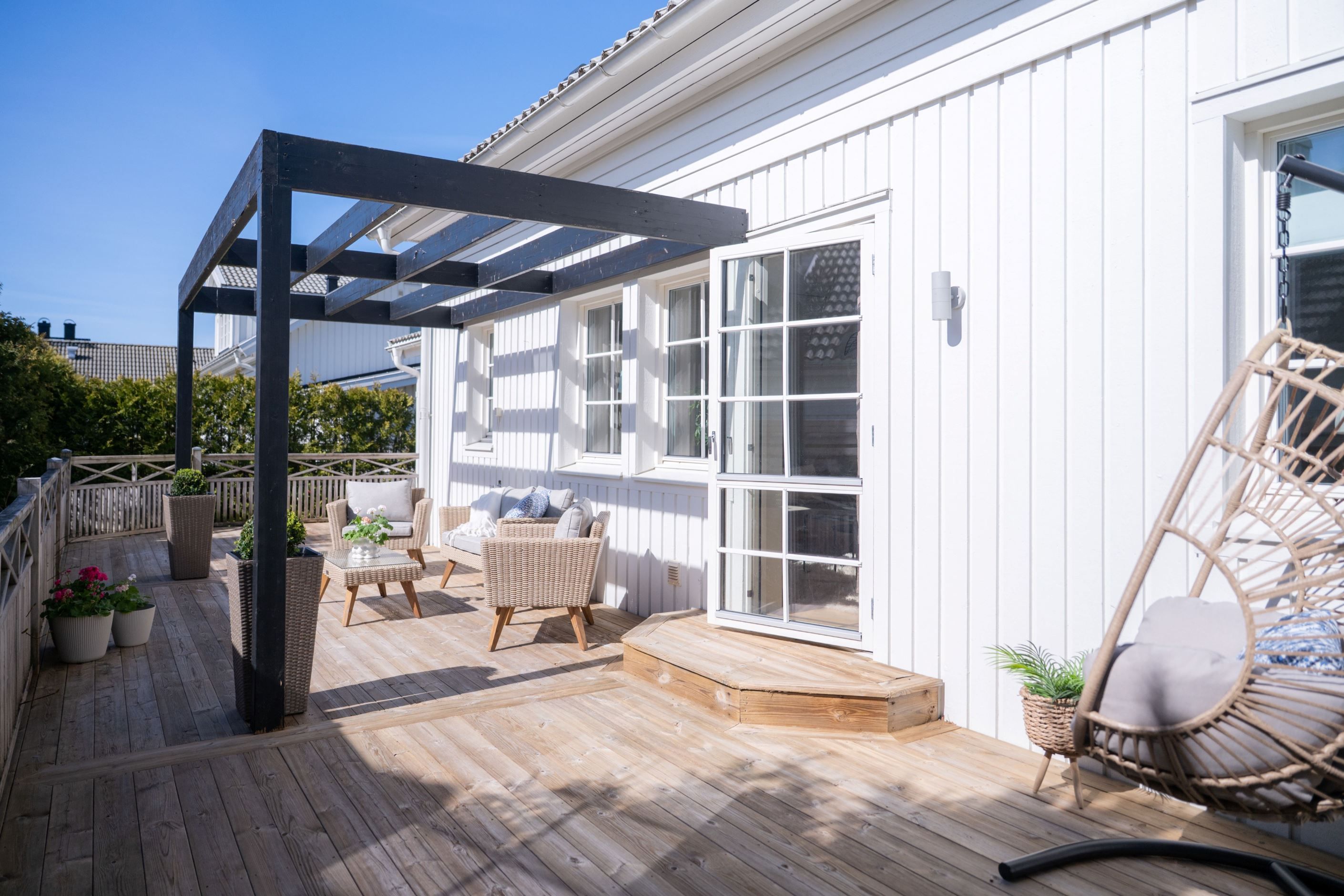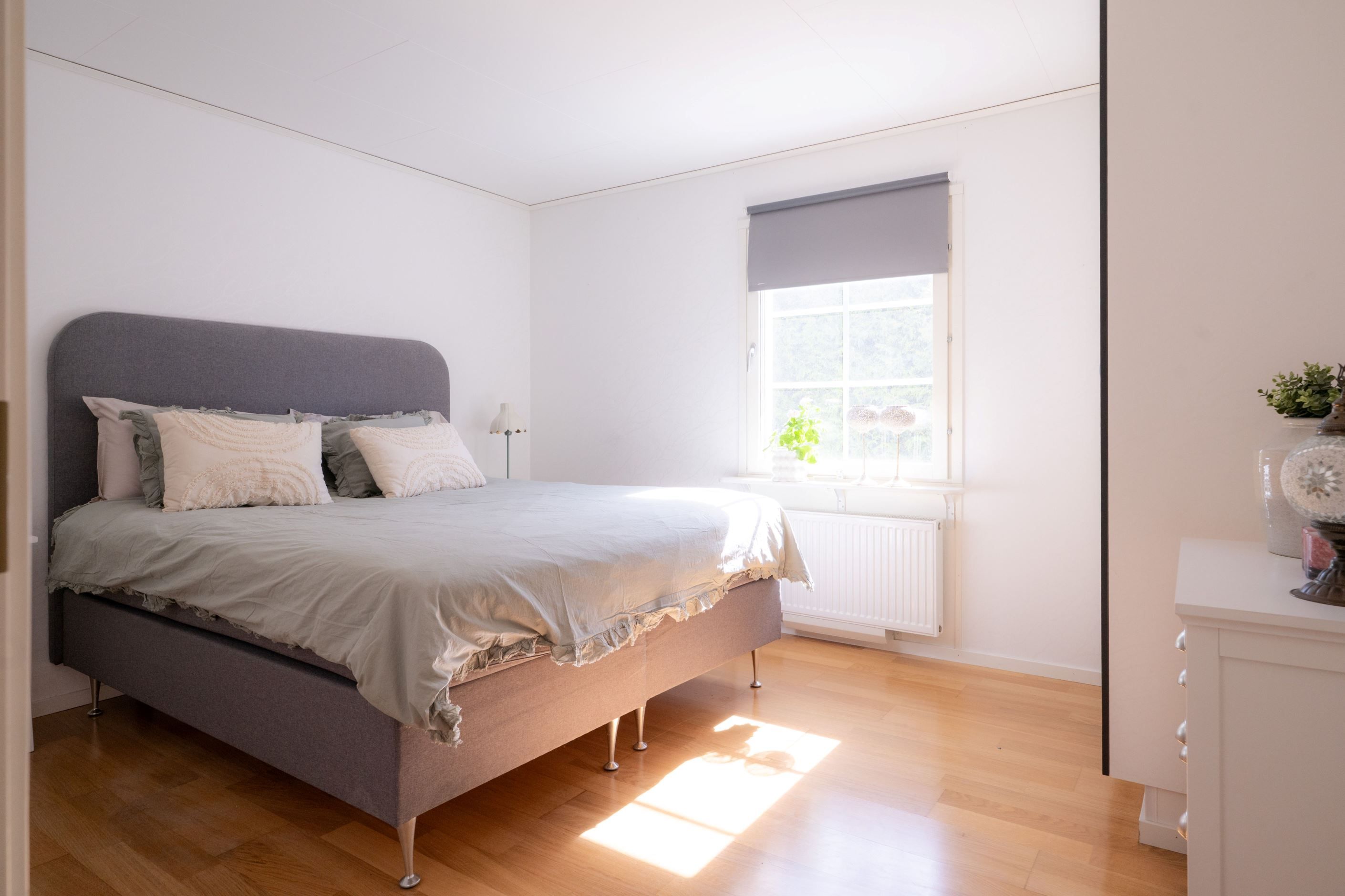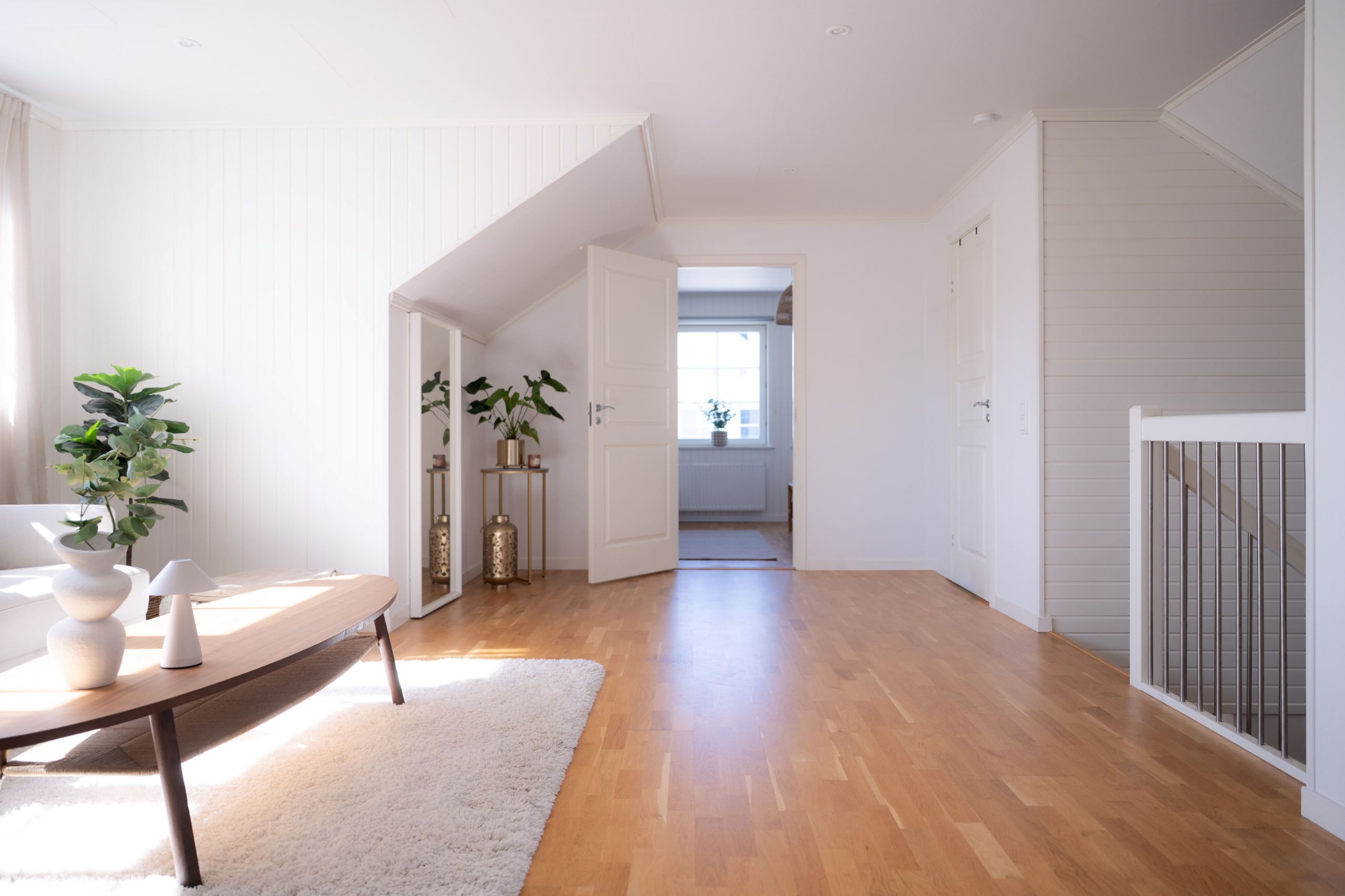 En trappa upp möts du av ett ljust och generöst allrum – perfekt som extra sällskapsyta, lekrum eller tv-rum. Här finns även två större sovrum, klädkammare samt ytterligare ett badrum. Intill huset finns garage och uppfart med plats för flera bilar.