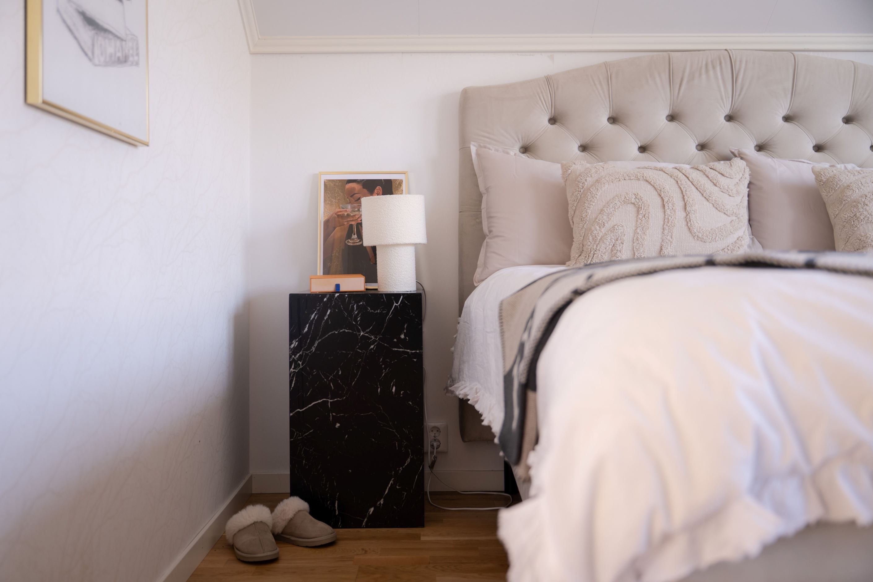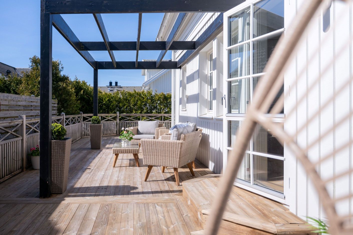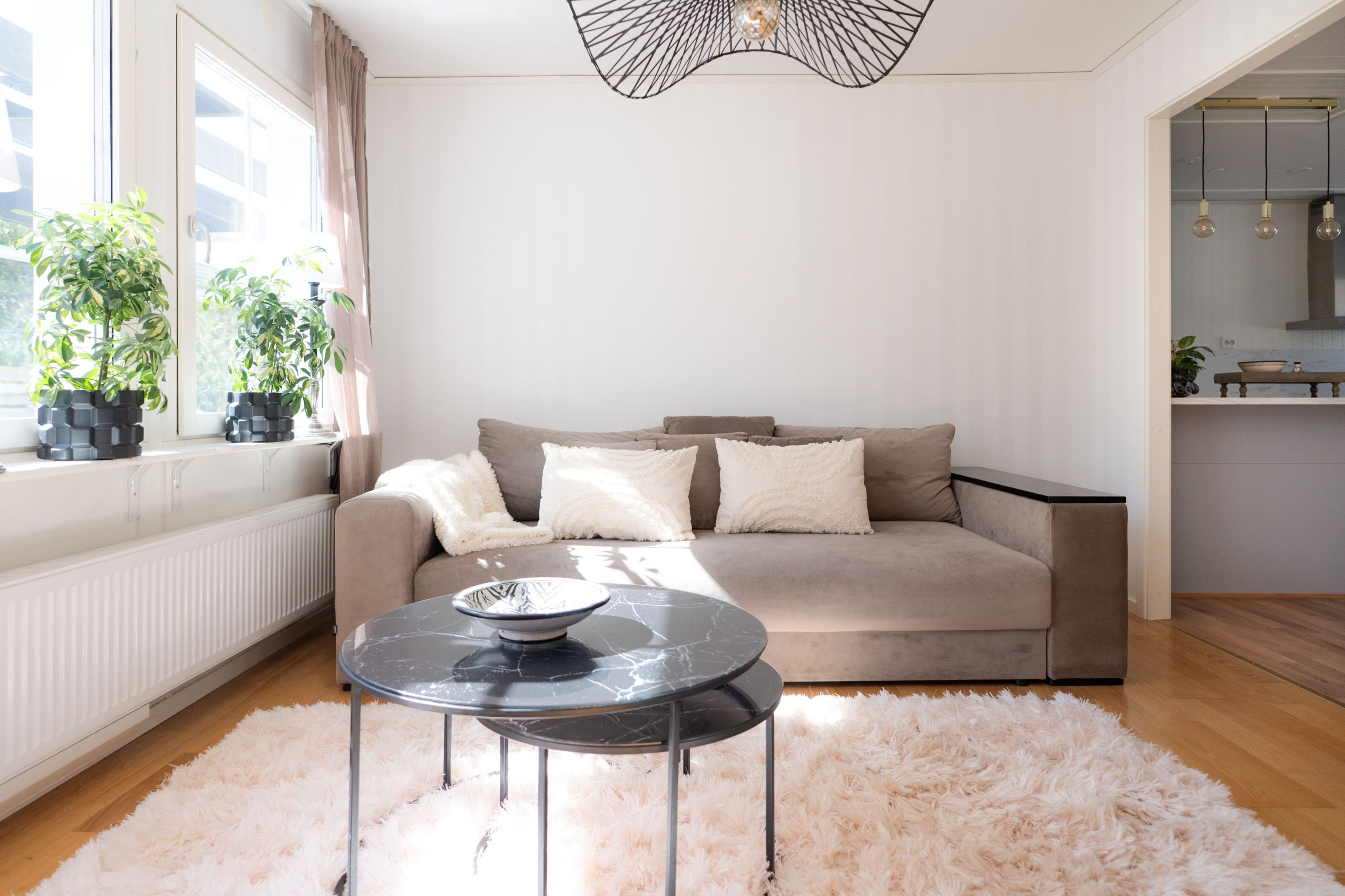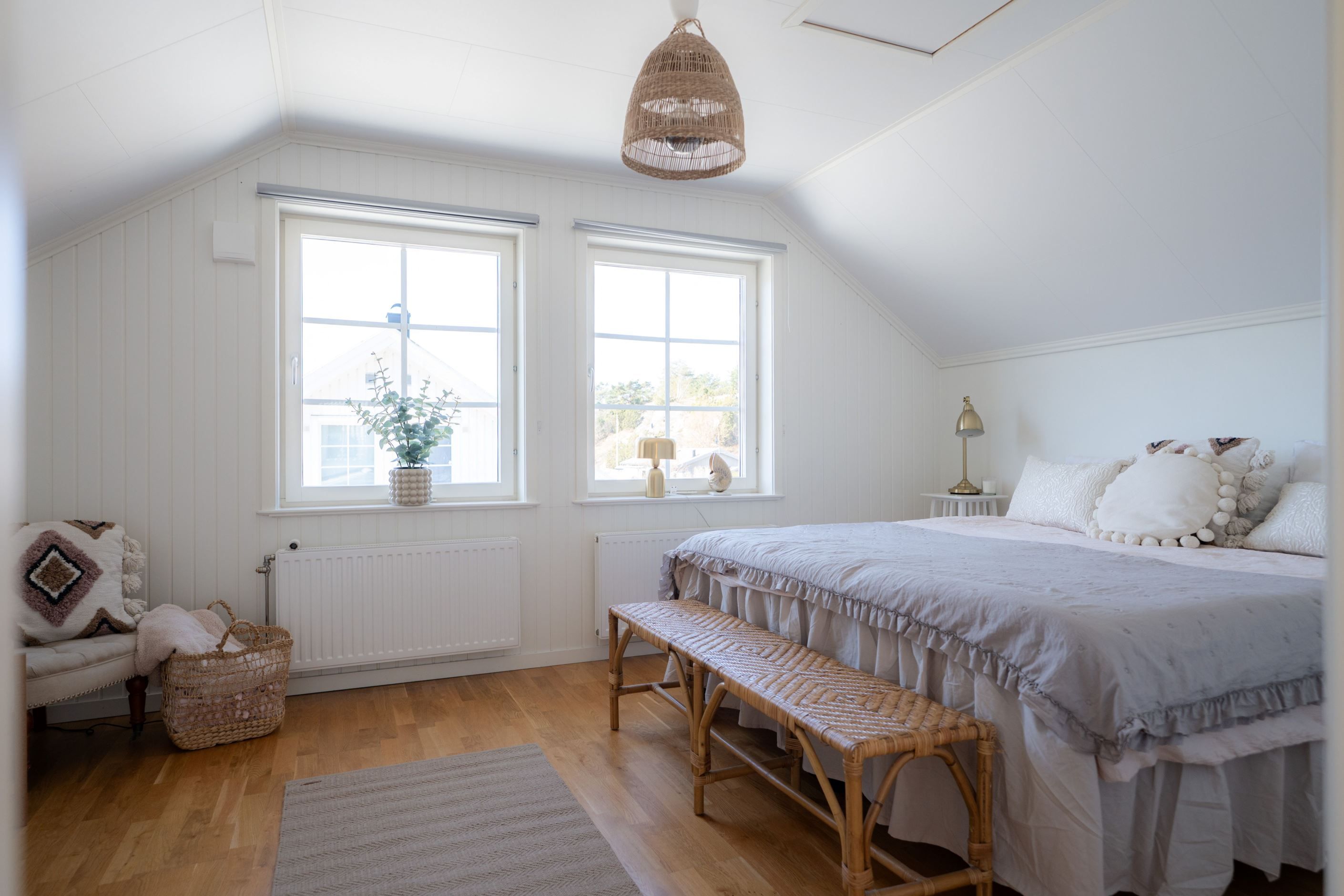 En trappa upp möts du av ett ljust och generöst allrum – perfekt som extra sällskapsyta, lekrum eller tv-rum. Här finns även två större sovrum, klädkammare samt ytterligare ett badrum. Intill huset finns garage och uppfart med plats för flera bilar.
