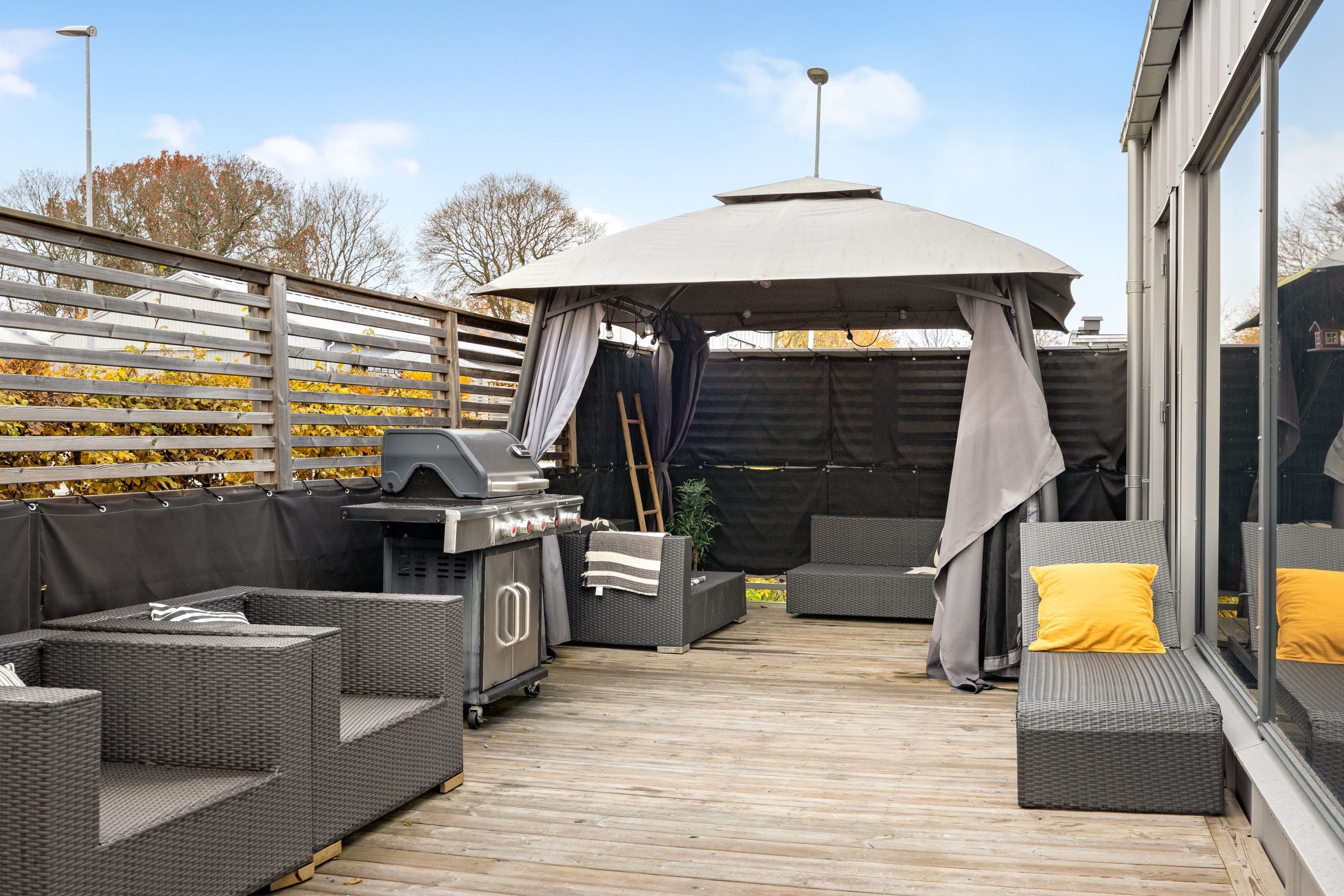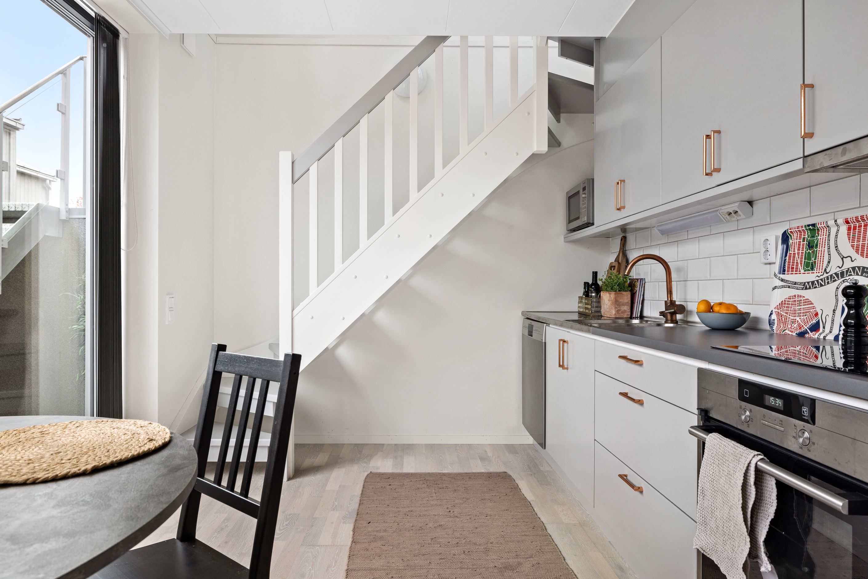 Nu finns möjligheten att förvärva denna fina bostad! Fördelat på två plan med generös träaltan erbjuder denna bostad entréplan med kök, fullutrustat från Vedum med vitvaror från Siemens och detaljer i koppar, helkaklat med badrum med dusch och tvättmaskin. En trapp upp finns vardagsrum med stora fönsterpartier och dörr ut till uteplatsen. Här finns gott om plats för loungesoffa och matbord. Perfekt solläge och här finns även ett förråd. Vidare in i bostaden finns ett sovrum med fransk balkong. Parkering finner ni precis utanför och i närområdet finns Mälaren med både badmöjlighet och båtplats för den som önskar. Hästhage, förskola, lekpark med fotbollsplan och utegym. Ca 5 minuters bilfärd till Bålsta Centrum med butiker, service och tåg.