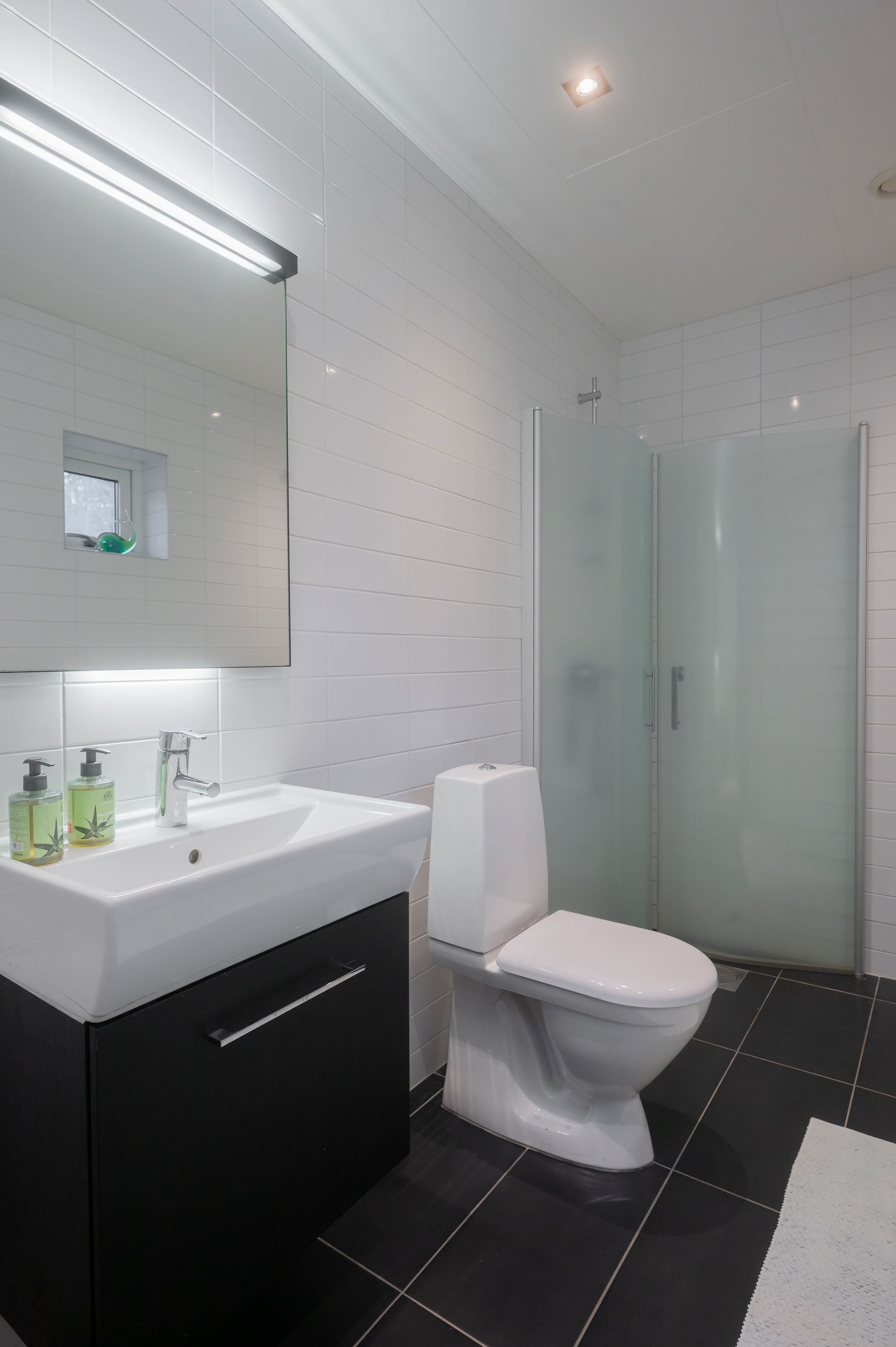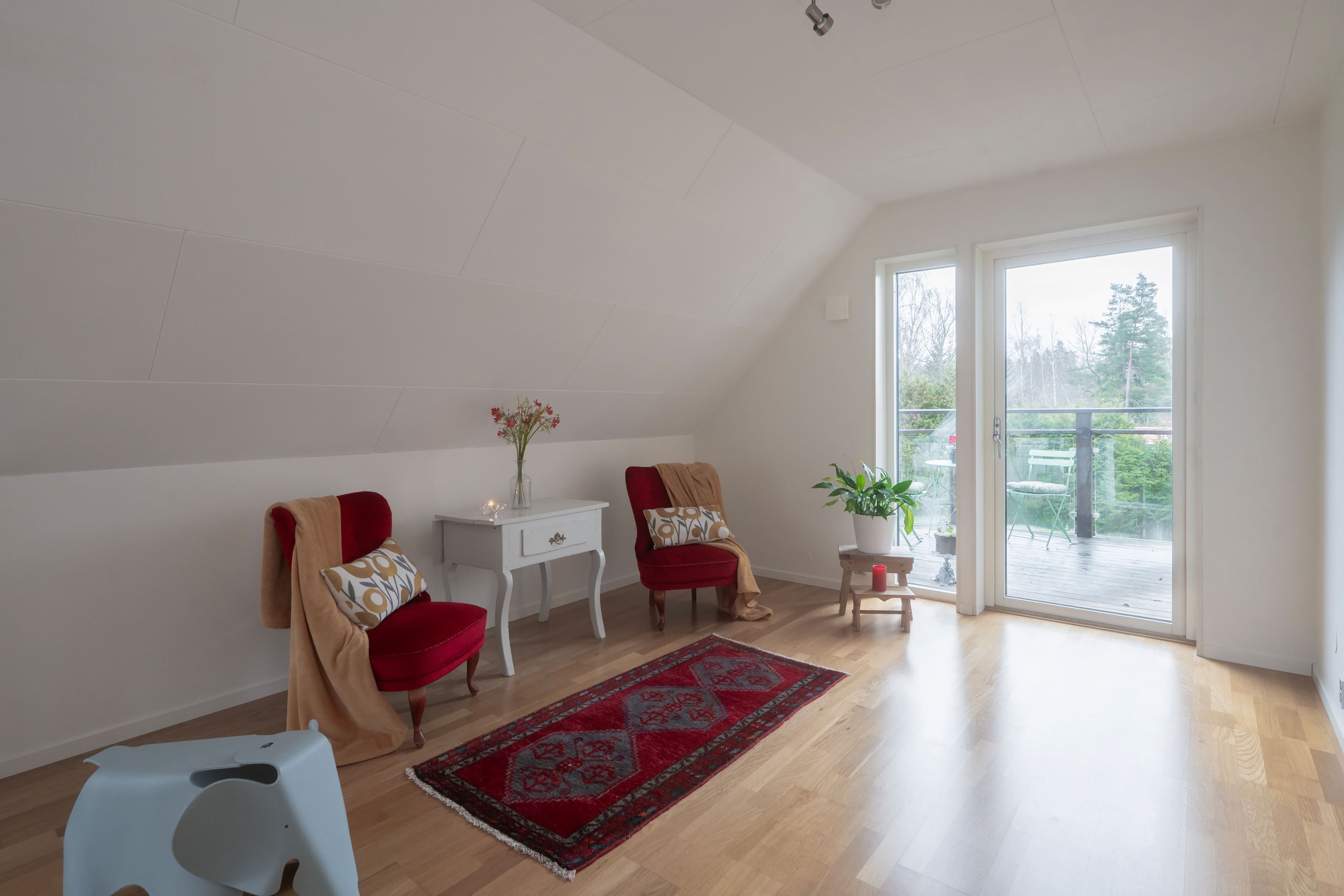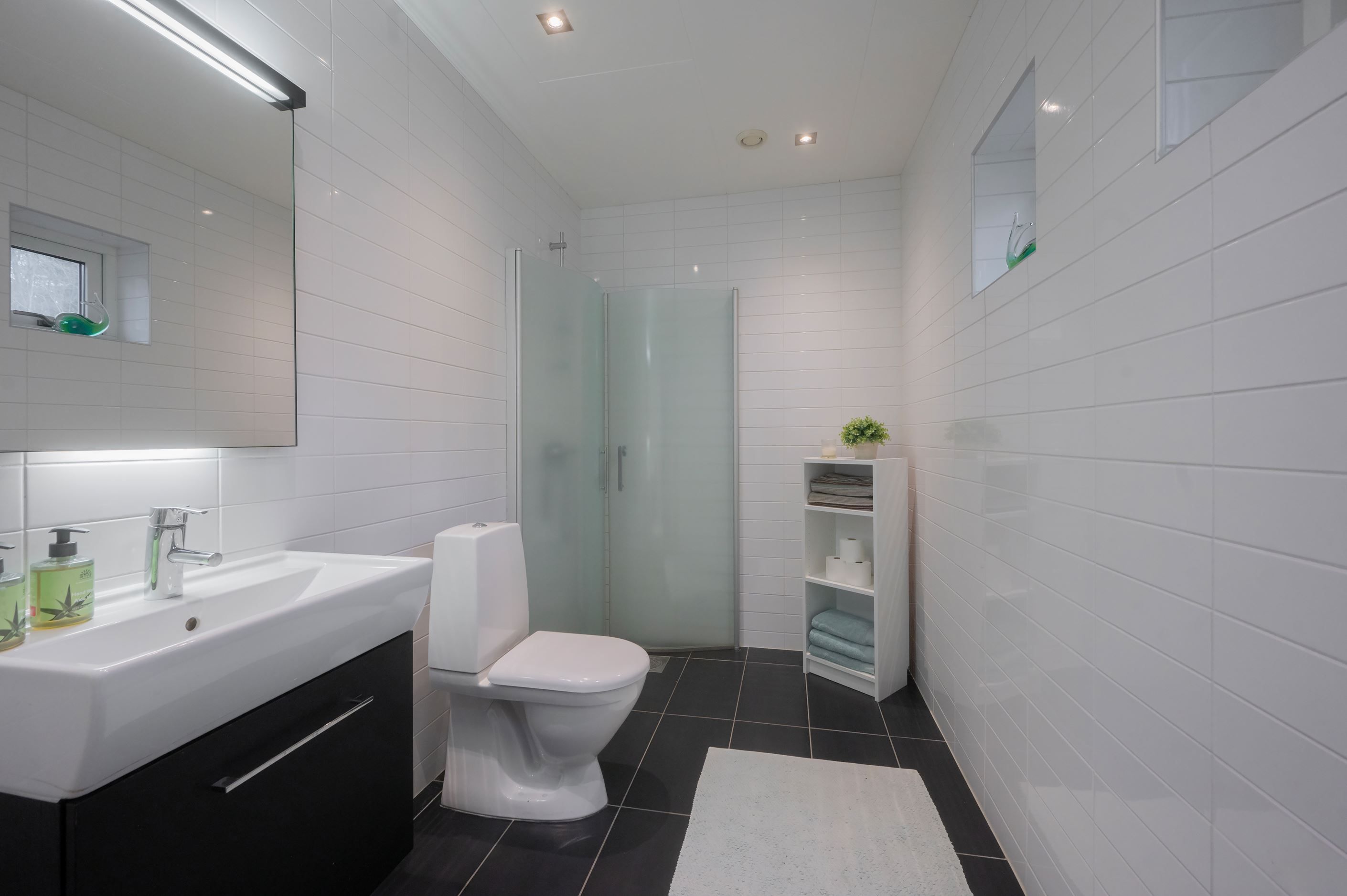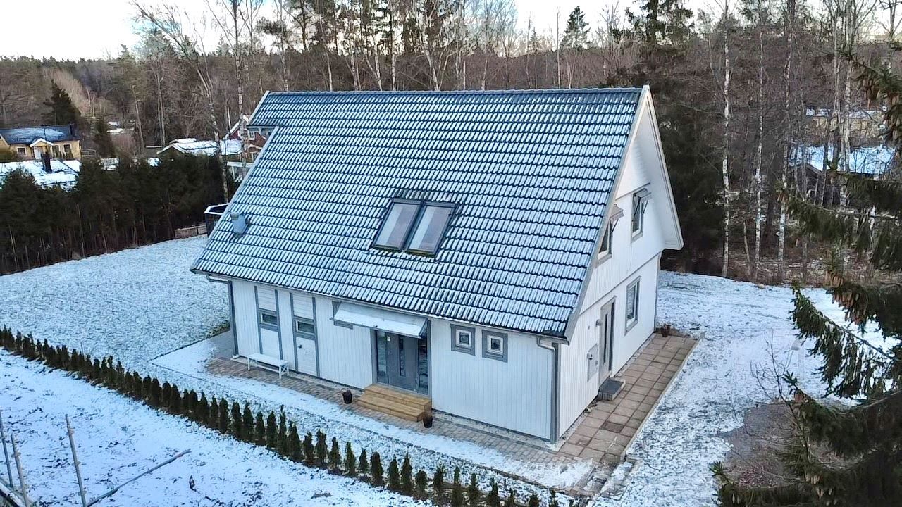 Huset står på en gjuten platta med inbyggd golvvärme på nedre plan, vilket tillsammans med dagens byggstandard ger ett behagligt och energieffektivt inomhusklimat året runt. De väl tilltagna rummen och de rymliga badrummen bidrar till en praktisk och bekväm vardag, där allt känns fräscht, modernt och redo att flyttas in i.