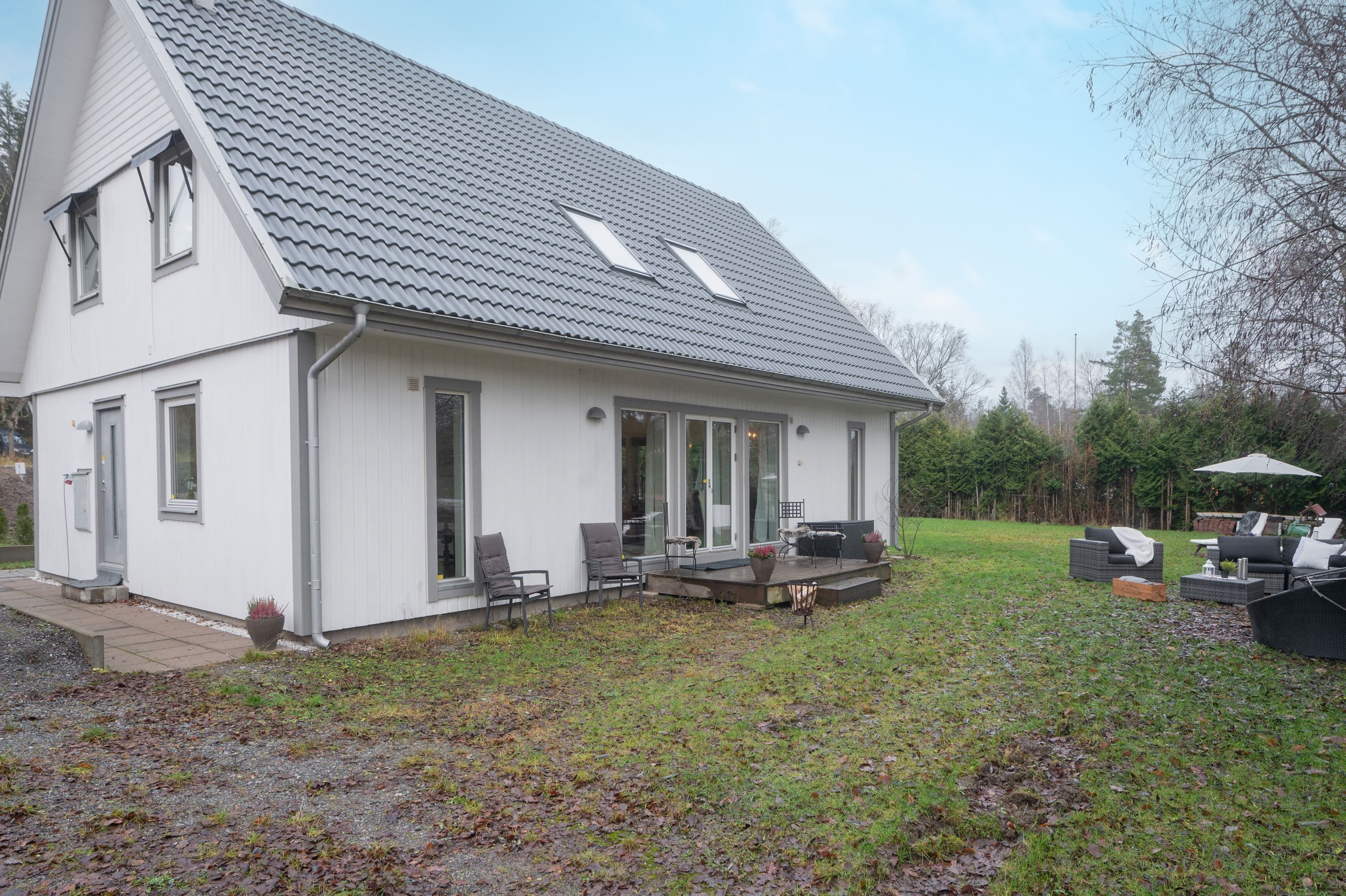 Välkommen till ett modernt och stilrent ett- och ett halvplanshus med naturen som granne!