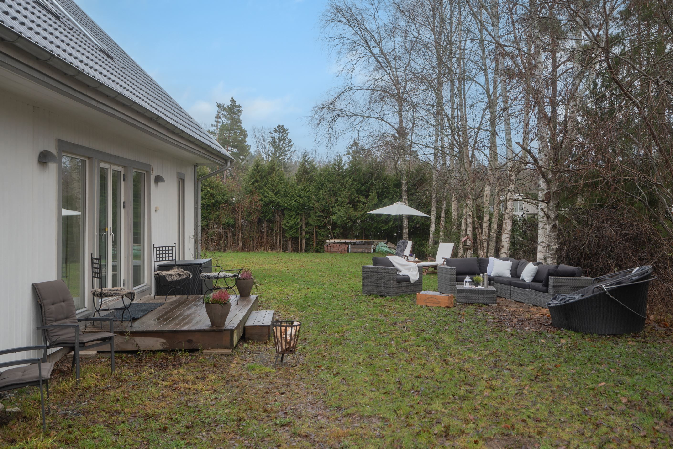 På en lugn och omtyckt gata i Gladö Kvarn, omgiven av natur och med närhet till såväl skog som friluftsmöjligheter, väntar detta moderna och välplanerade 1,5-planshus, redo att flyttas in i. Detta är ett hem som erbjuder både avskildhet och bekvämlighet. Här bor du på en plan och fint avskild tomt, där miljön känns rogivande och inbjudande redan från första stund.
