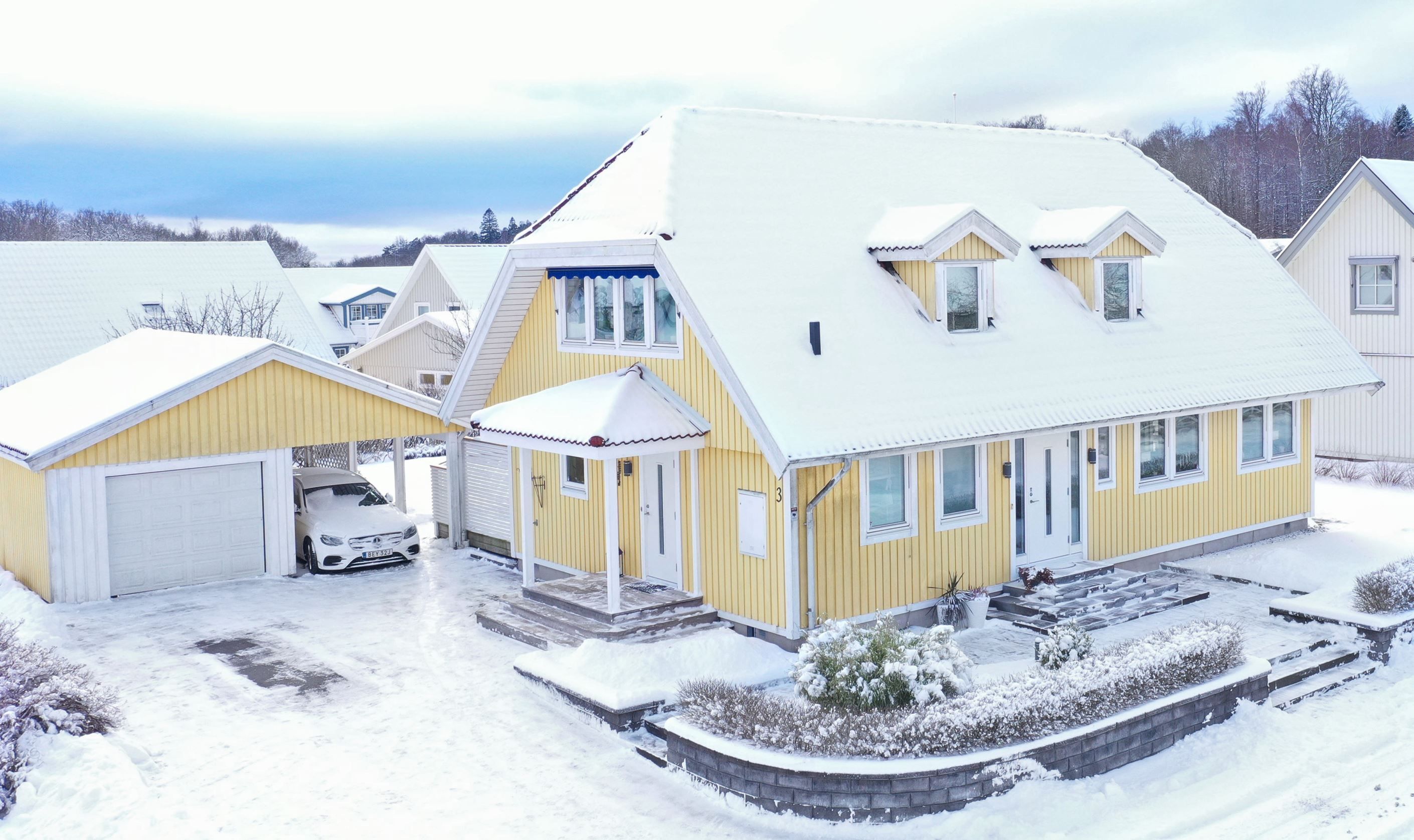 Denna välskötta villa är byggd 1986 och är mycket välplanerad. Den har genomgått omfattande renoveringar under de senaste åren med mycket smakfulla val. På baksidan av huset har du en gräsmatta med två fruktträd och häckar som skapar insynsskydd till uteplatsen och uterummet. Fastigheten har även ett fristående garage med elektrisk port och carport.