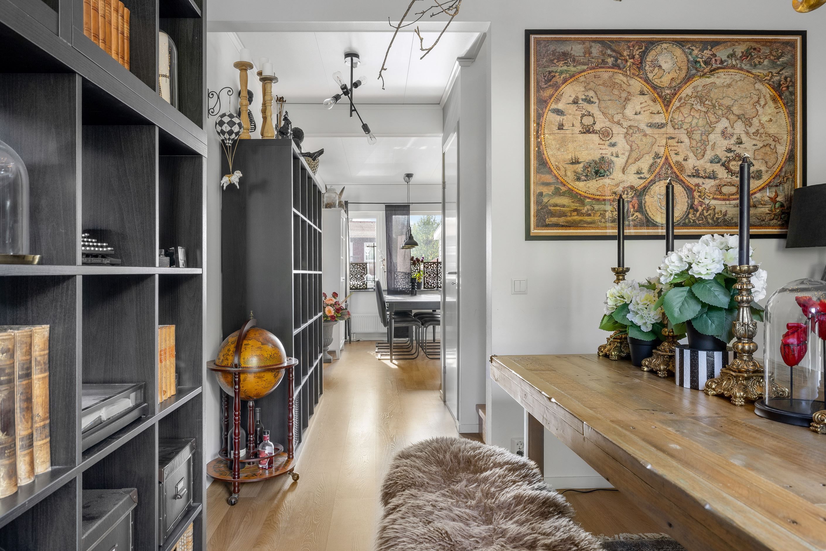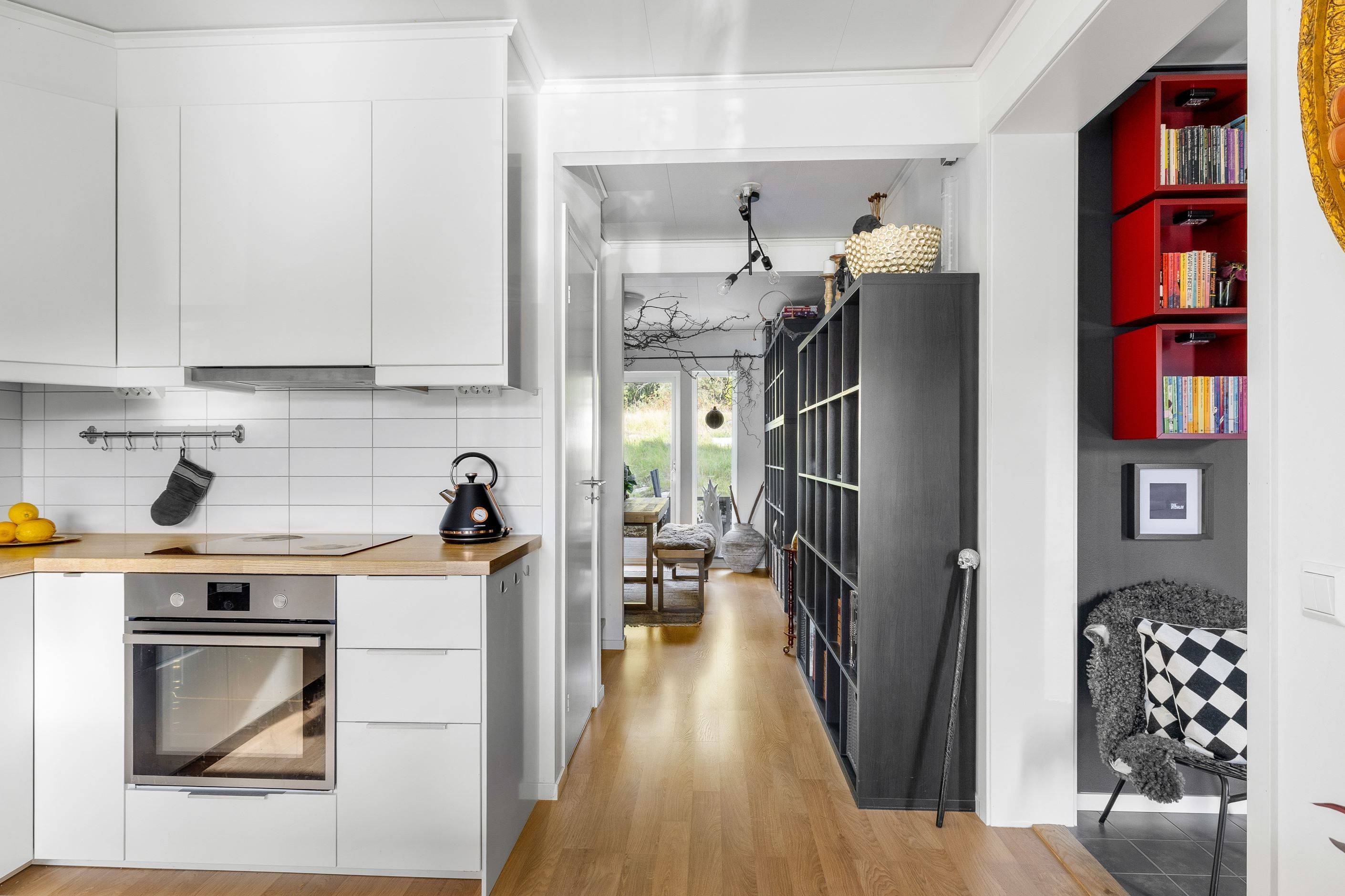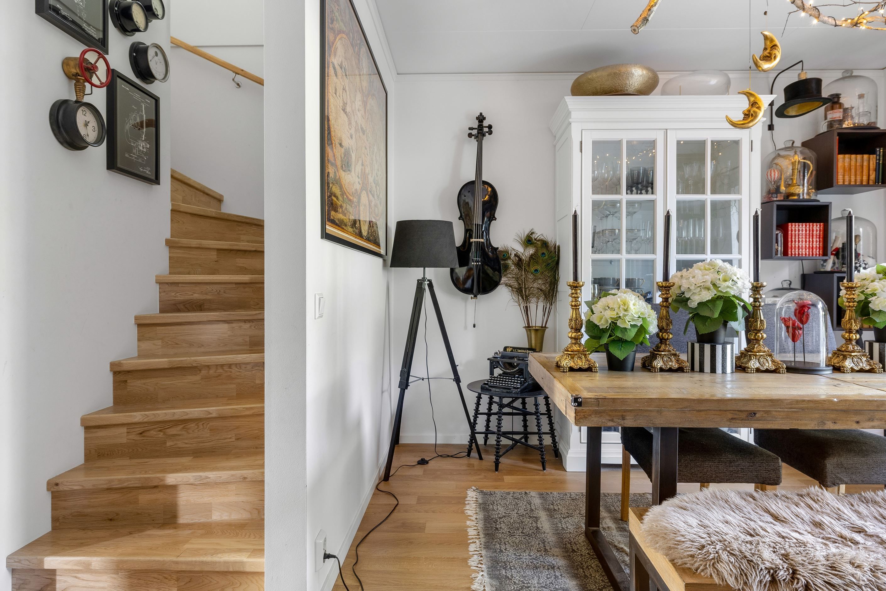 Detta välplanerade hörnradhus i bostadsrättsform är verkligen en pärla att flytta in i. Med 117 kvm fördelade på 2 plan erbjuder det idag tre sovrum samt ett allrum, 2 fräscha badrum, vardagsrum och ett stort kök med generös matplats. På baksidan finns en trälagd uteplats. På framsidan finns ett friliggande förråd samt plats för två bilar samt laddare för elbil. Bostaden har en energiklass B, vilket kan ge förmånligt ränteavdrag som ”grönt bolån” vid lån.