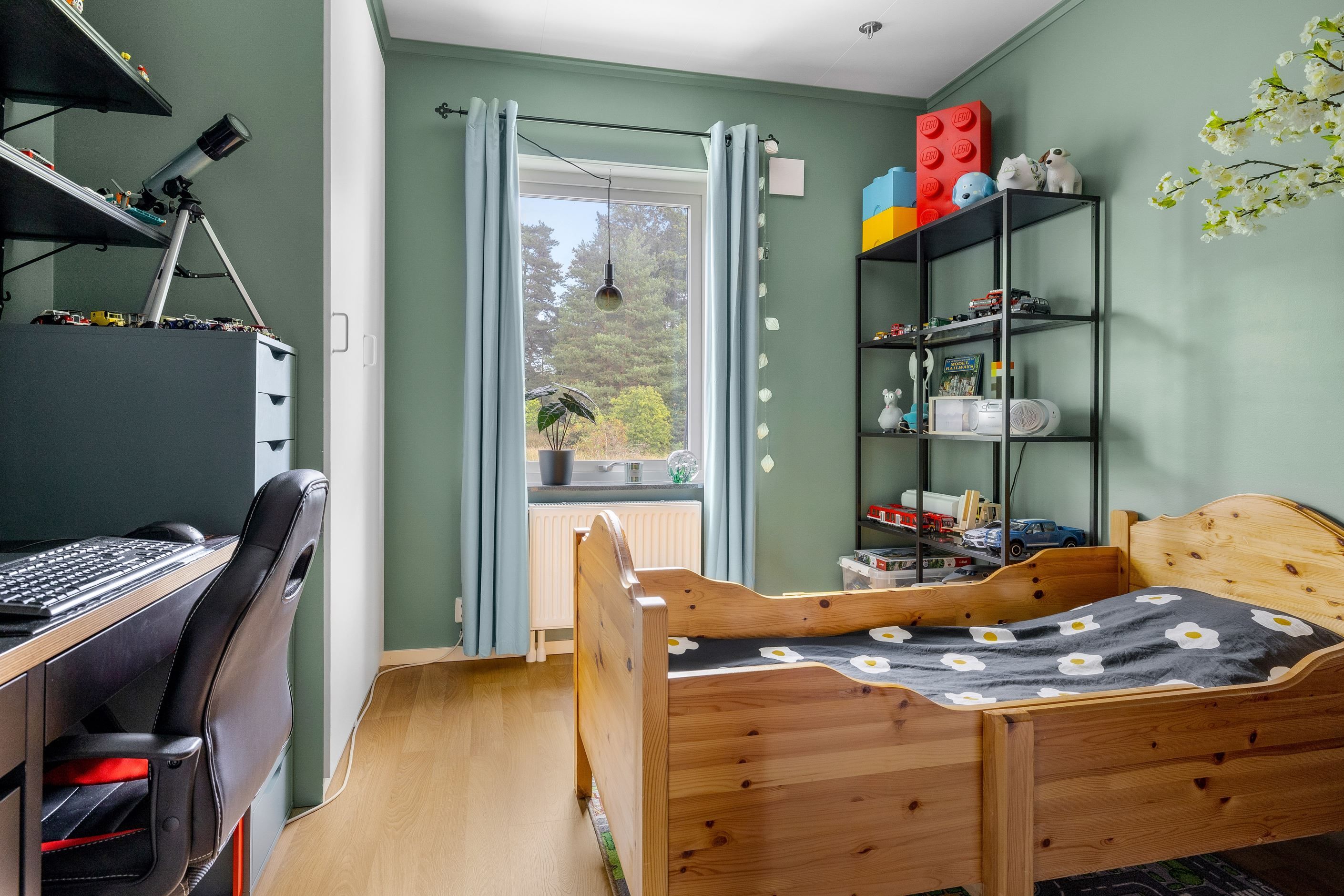 På det övre planet finns idag tre sovrum och allrum. Möjlighet att skapa ett fjärde sovrum. Badrum med dusch. Det större sovrummet har även utgång till en mysig balkong. Fiber är indraget och uttag finns i alla rum.