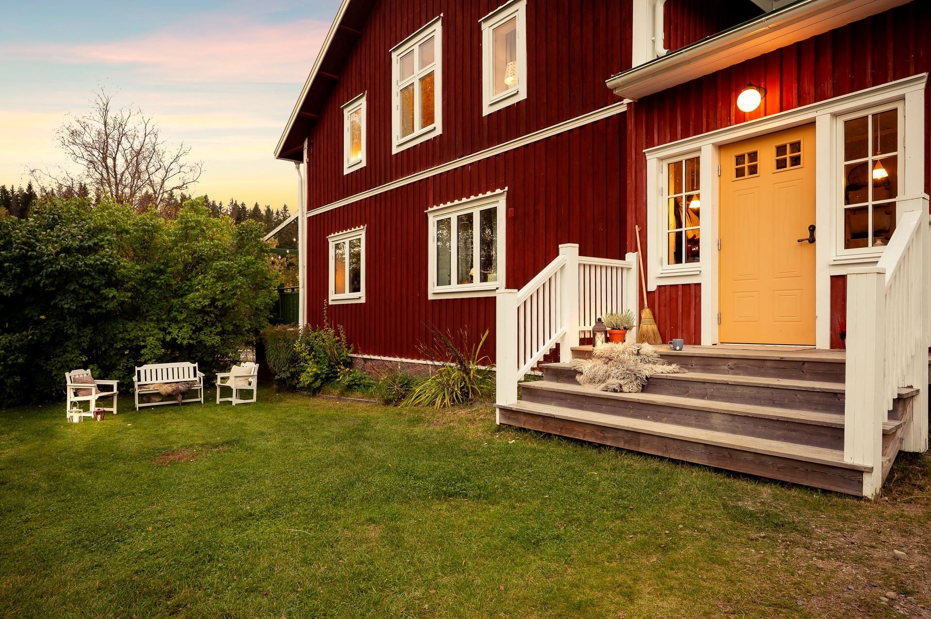 Den stora tomten bjuder in till odling, lek och avkoppling och från den generösa altanen njuter man av soliga dagar, middagar under bar himmel och den rogivande utsikten över den forsande älven.