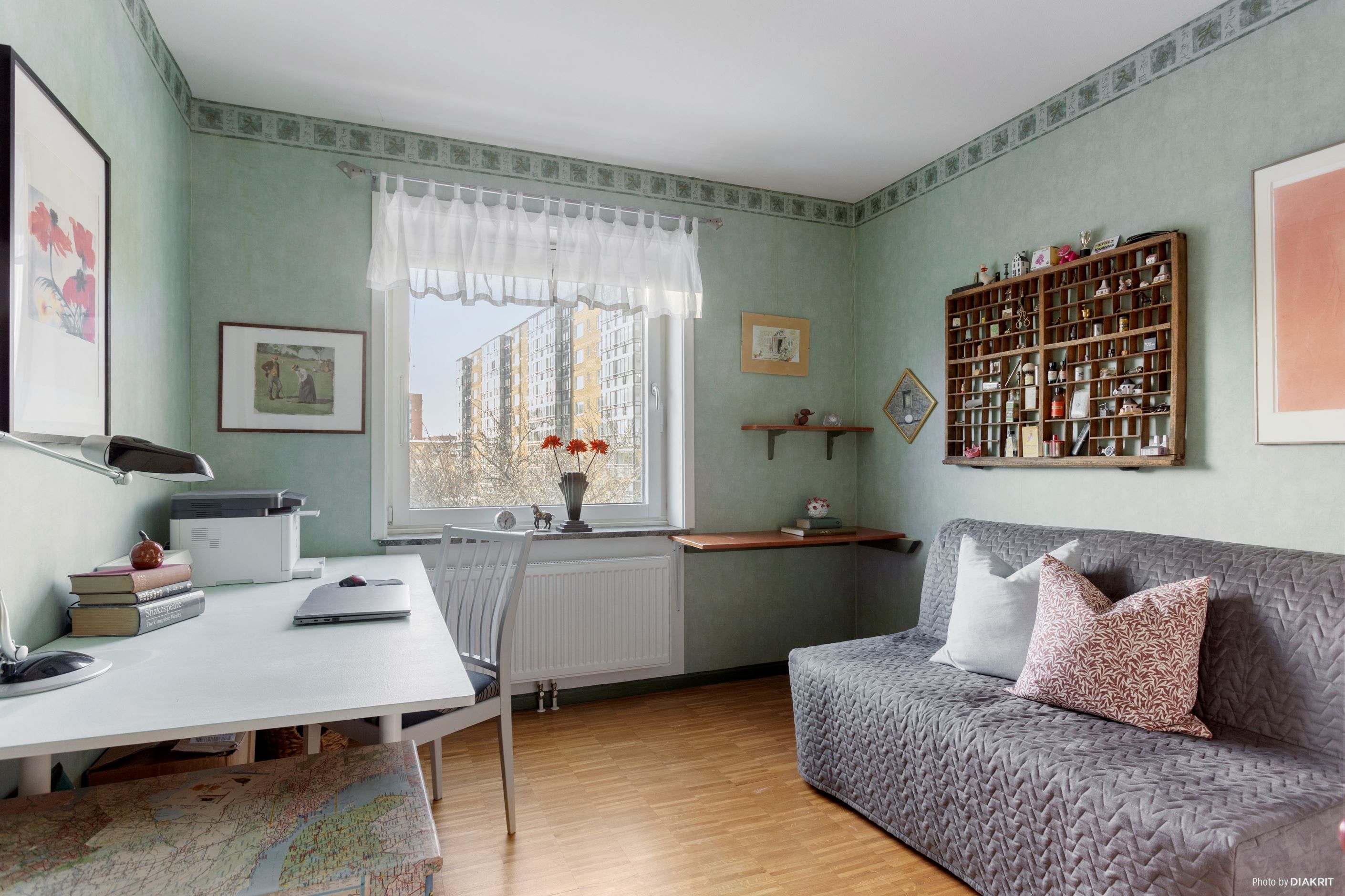 Lägenheten har två sovrum, varav ett rymligt master bedroom med inbyggd förvaring och plats för stor säng. Det andra sovrummet passar utmärkt som barnrum, gästrum eller hemmakontor. Även här återfinns den genomgående stavparketten som skapar en enhetlig och stilren känsla.