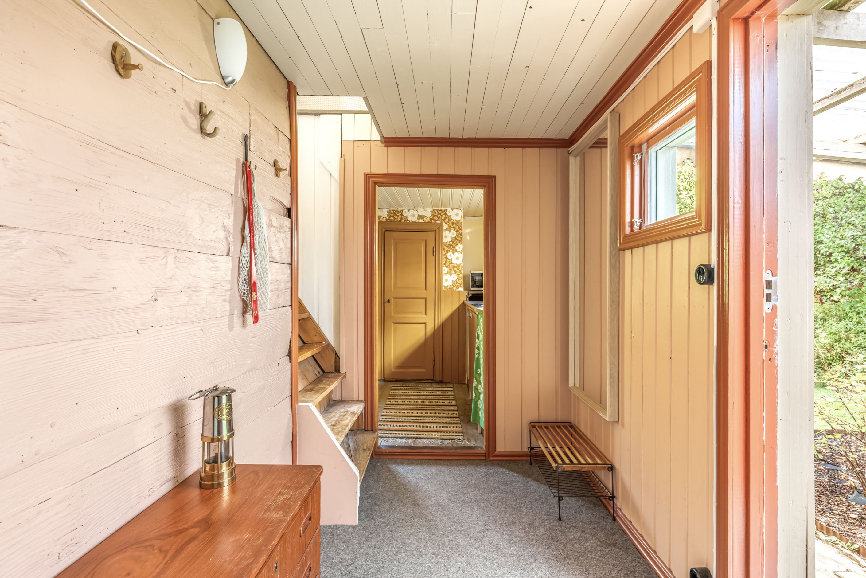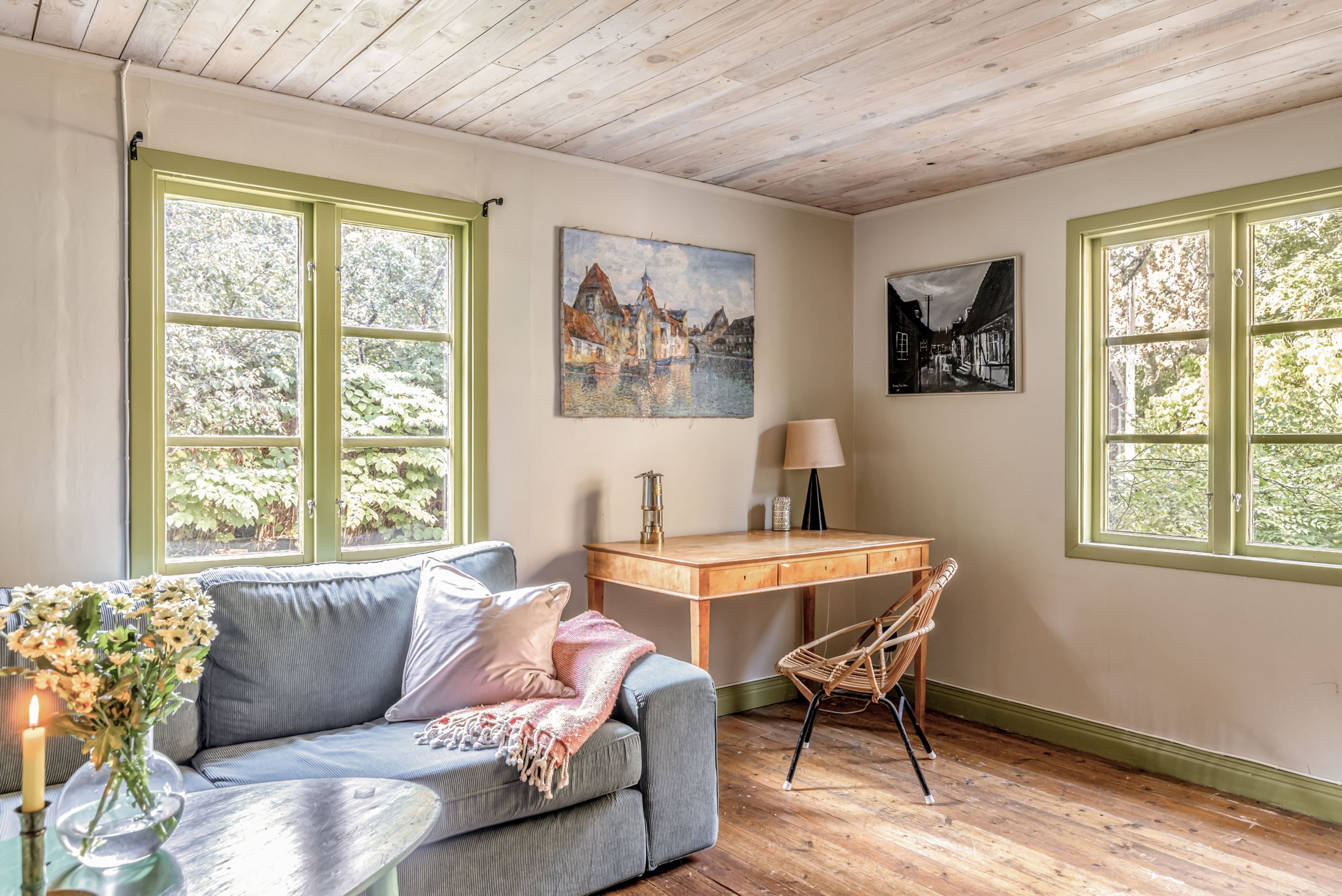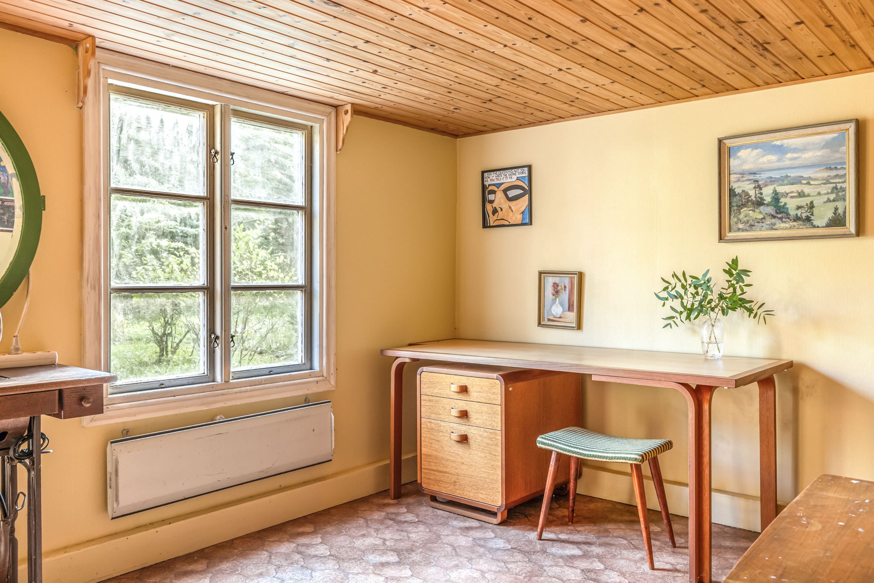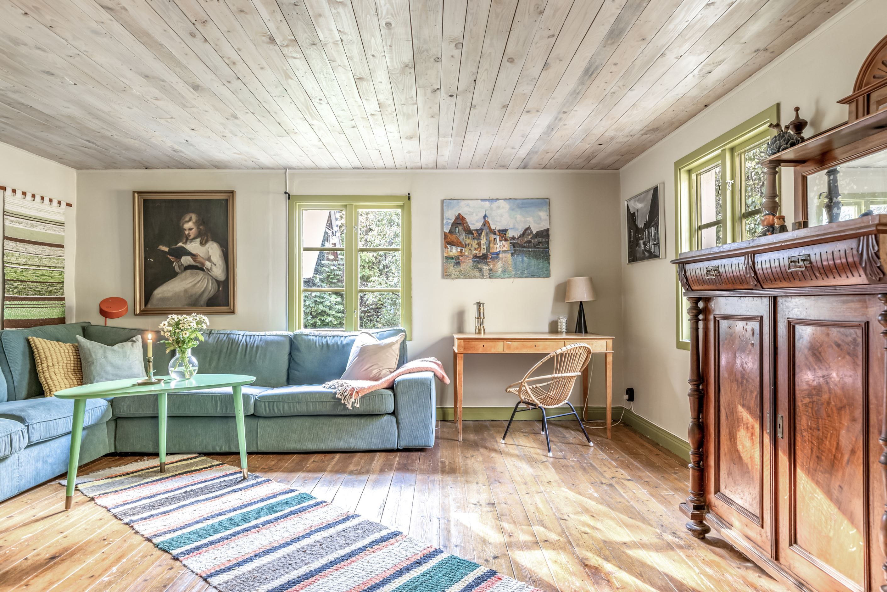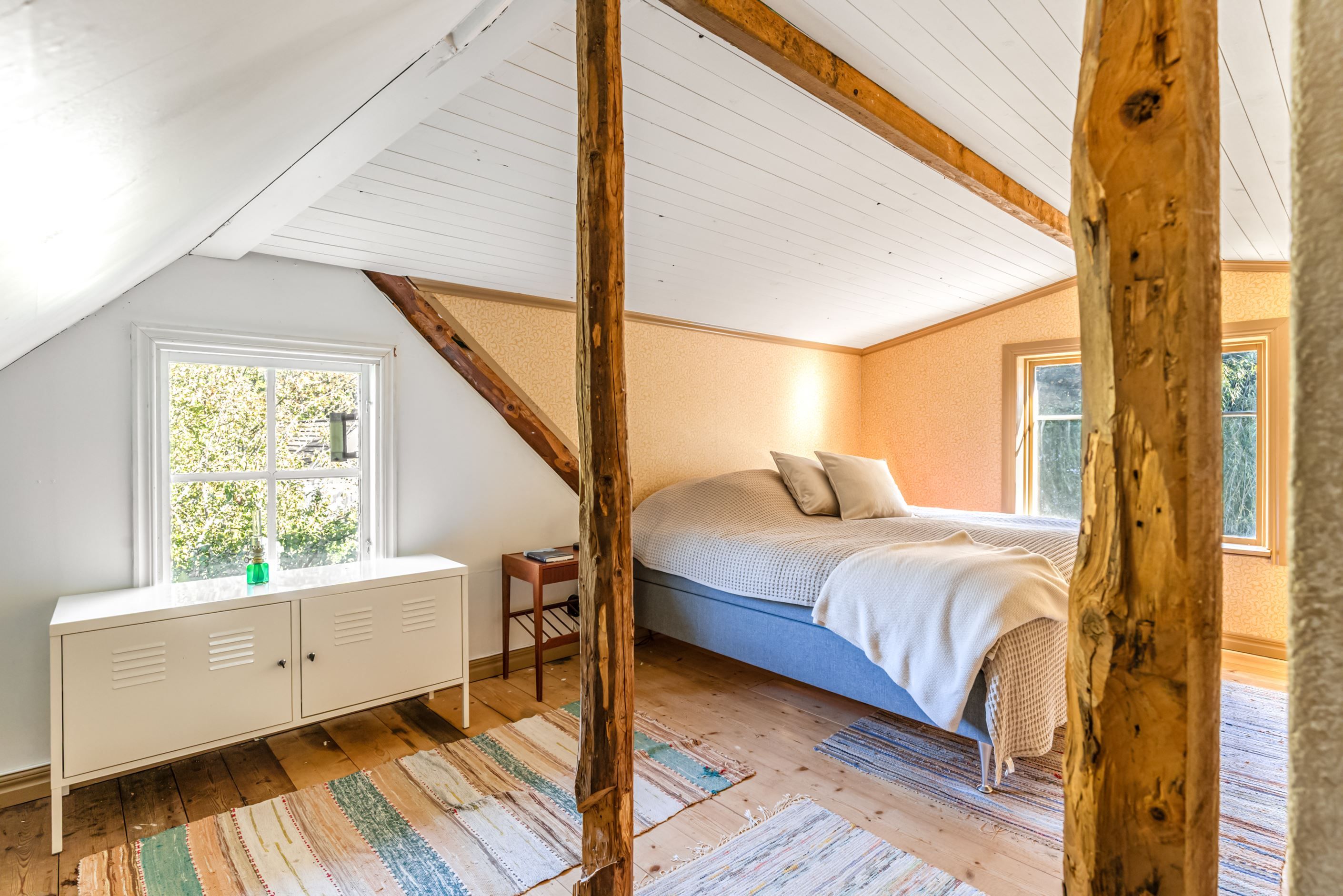 Redan när du kliver in genom dörren möts du av en varm och inbjudande atmosfär. Varje färg, list och trädetalj är vald med omsorg för att bevara torpets själ och skapa harmoni. Här finns vindfång, ett charmigt allrum med kakelugn, matplats och kök som lockar till långa frukostar i morgonsolen. På entréplan finns även WC/dusch, och på ovanvåningen ryms två sovdelar – eller kanske ett allrum och ett sovrum, beroende på hur du vill forma din vistelse här.